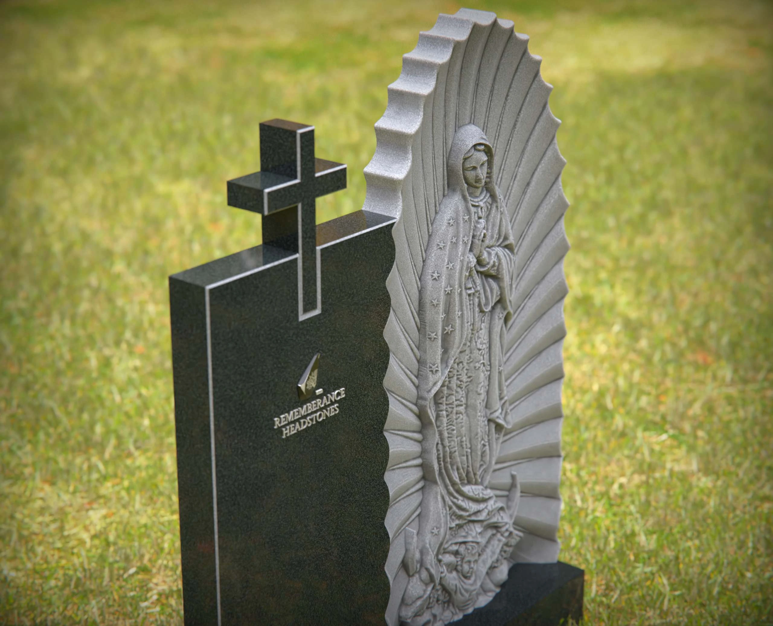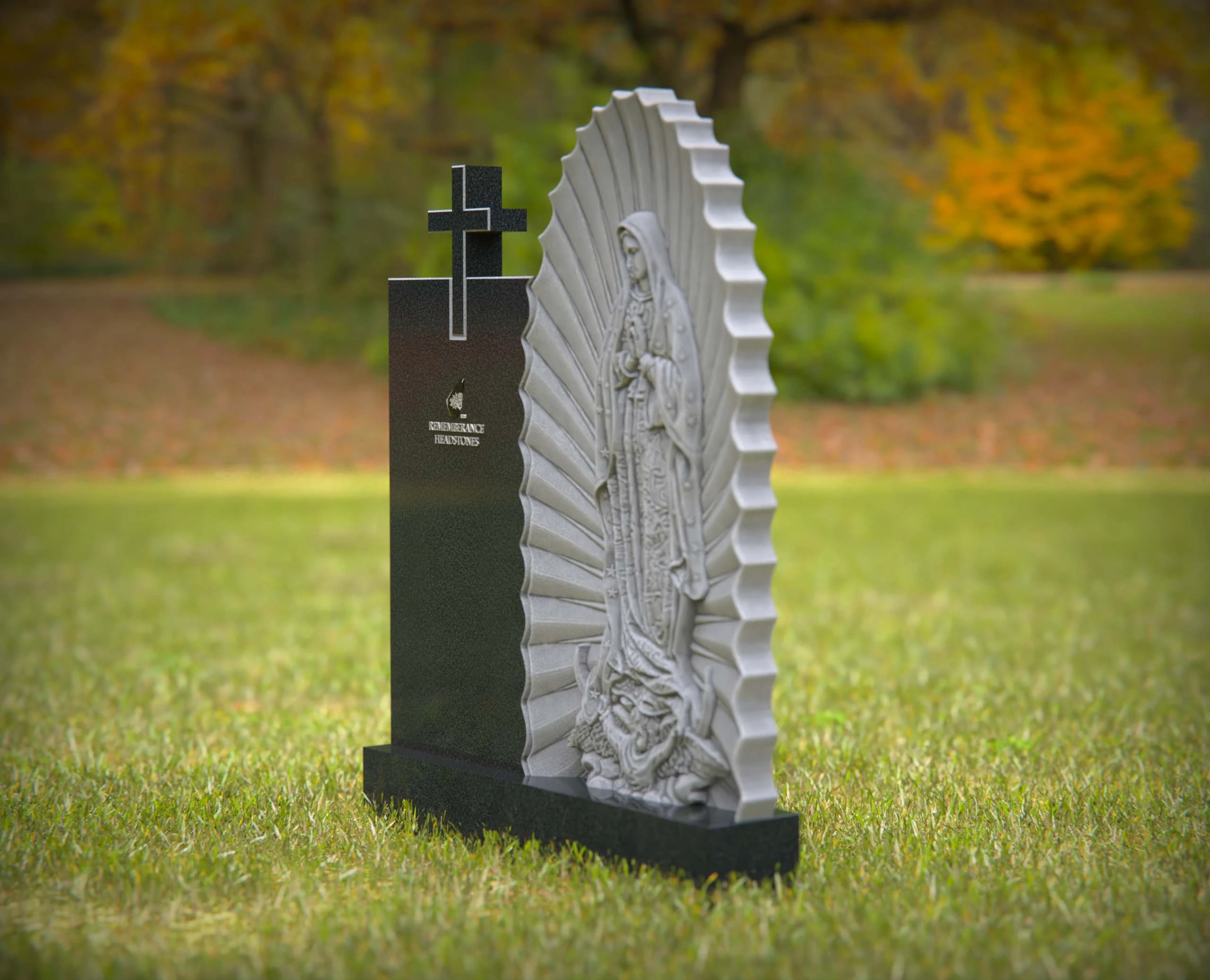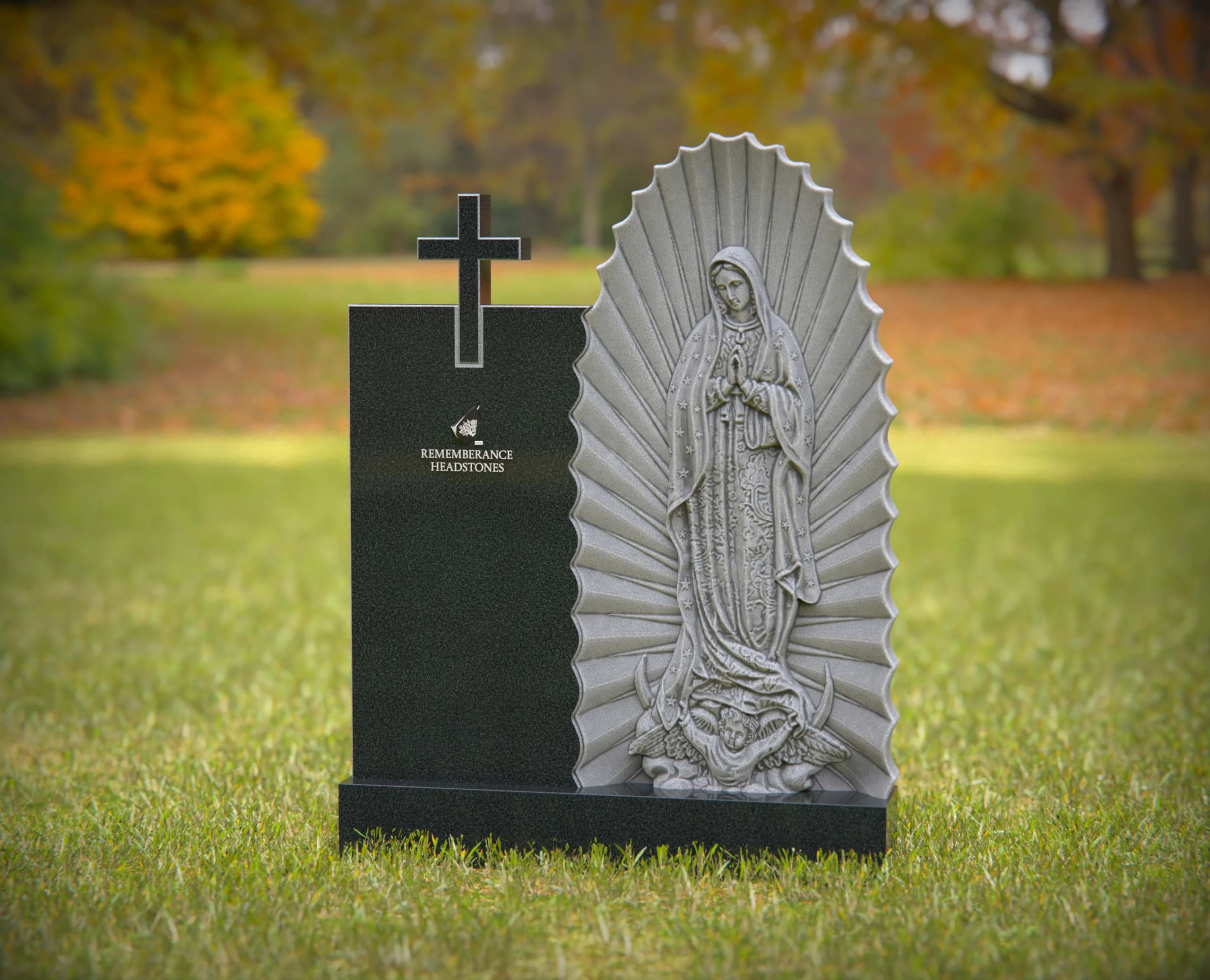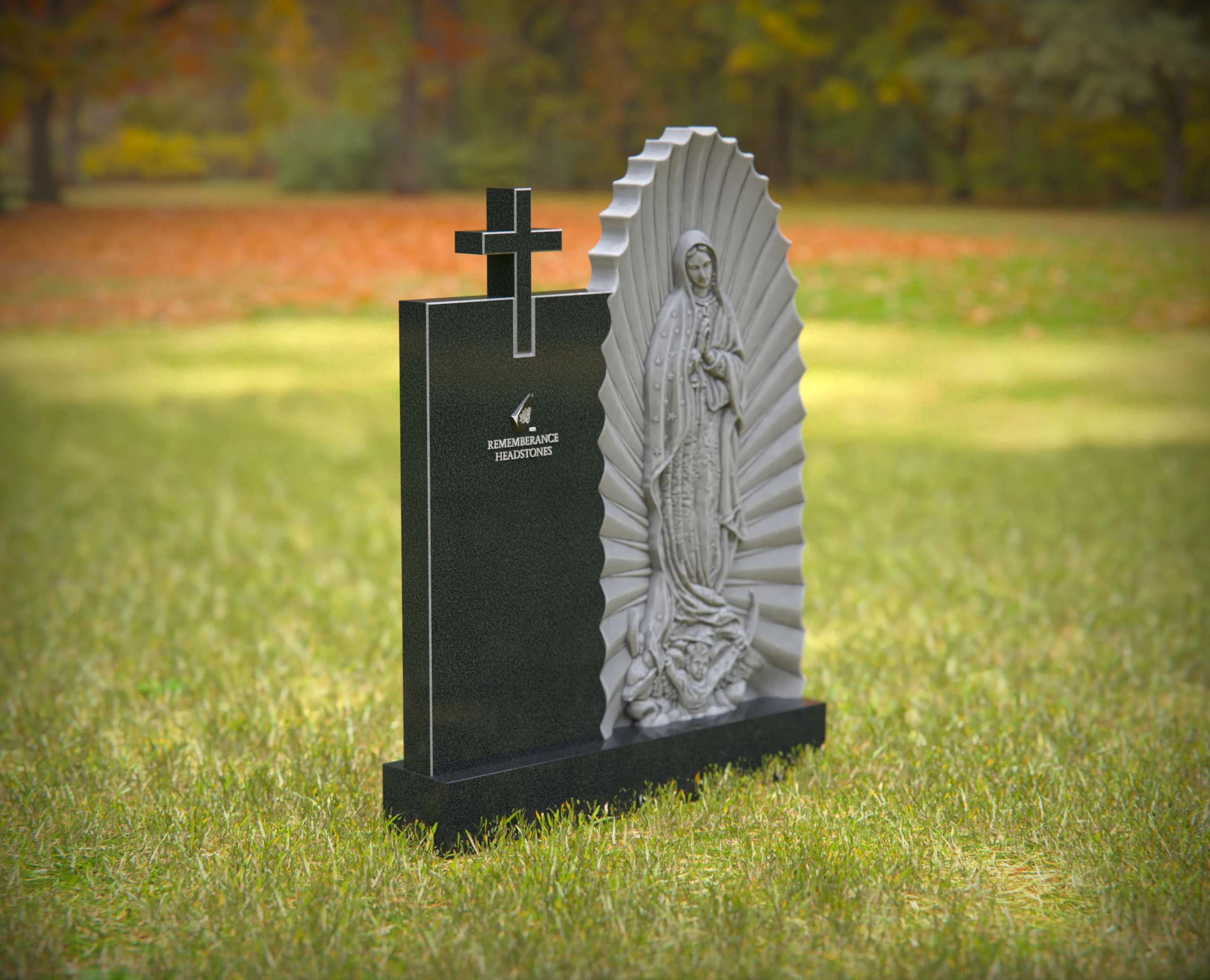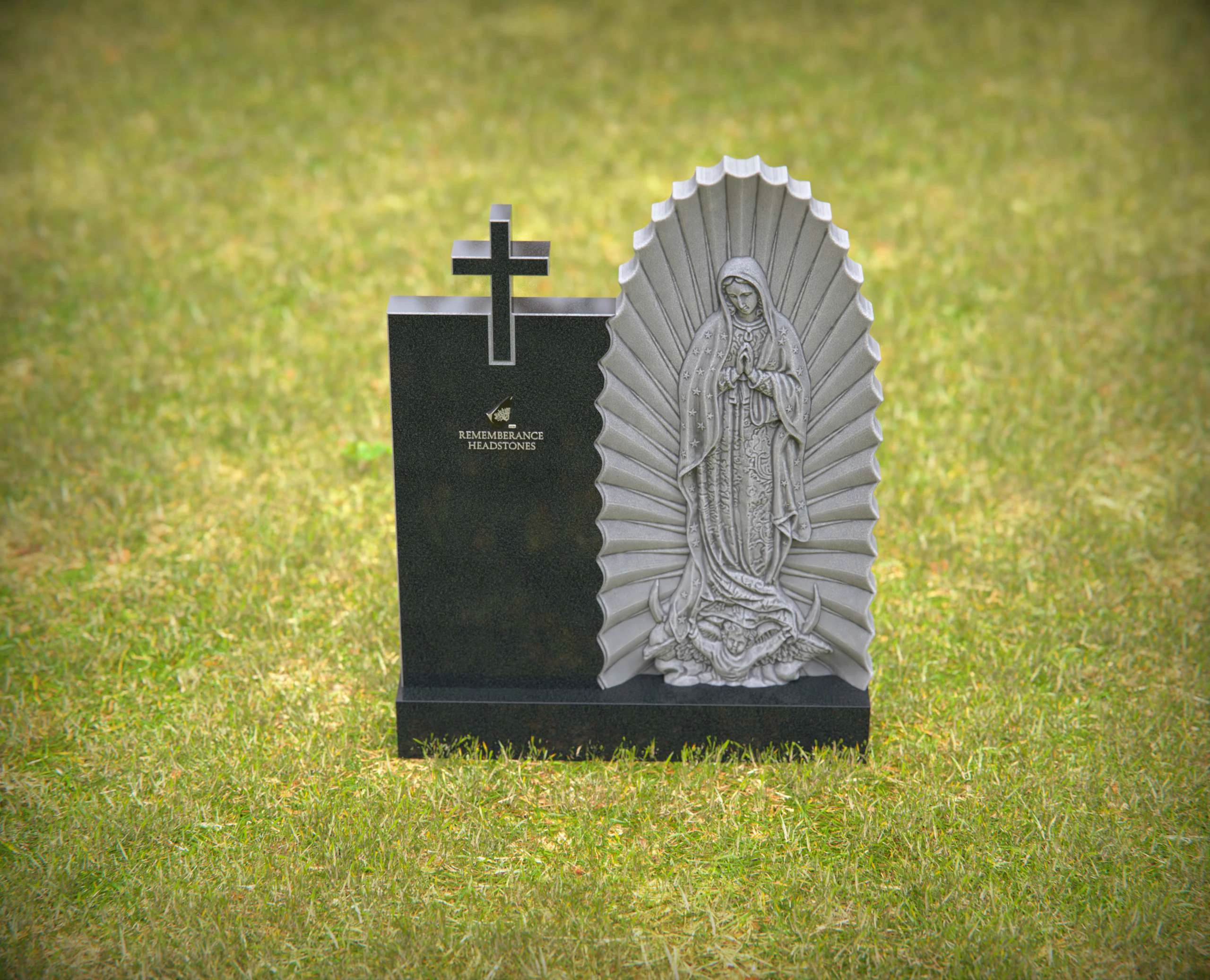 1249 - Grabstein aus Granit mit religiösem Design - Jungfrau Maria und Kreuz