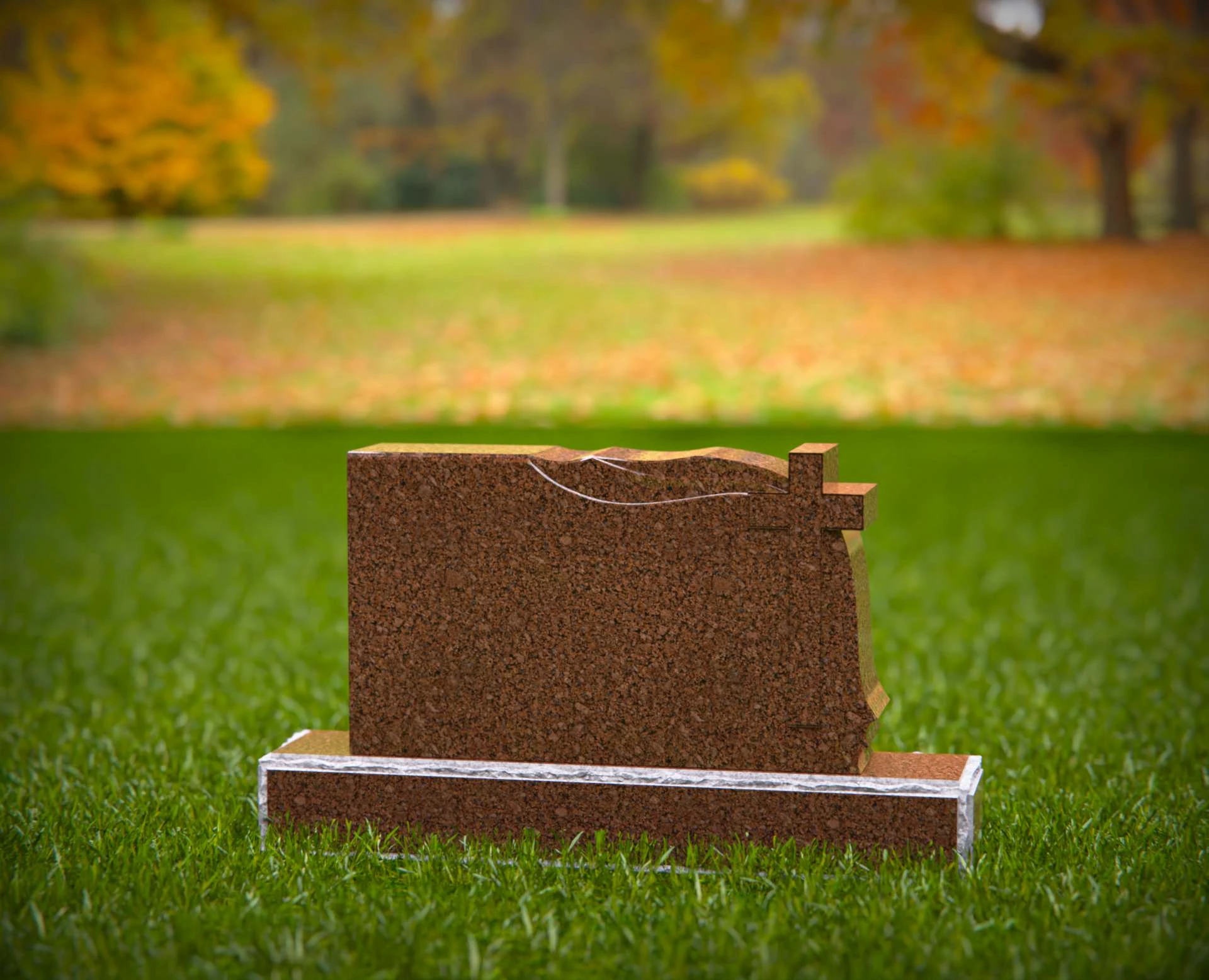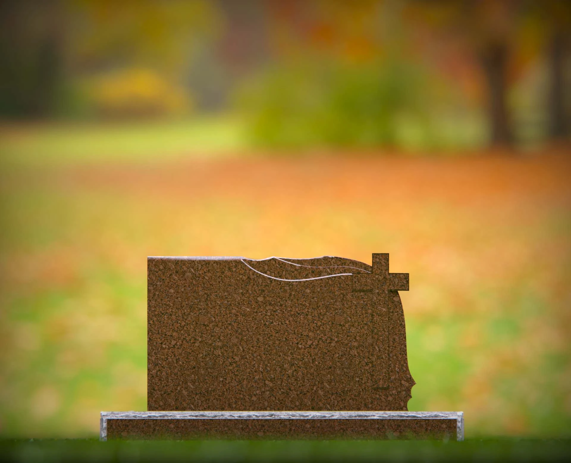 Dieser wunderschön gefertigte Grabstein aus Granit zeichnet sich durch ein einzigartiges asymmetrisches Design mit einem polierten Kreuz in der oberen rechten Ecke aus. Die glatten, geschwungenen Details entlang der Oberseite verleihen ihm ein elegantes Aussehen, das Glauben und ewigen Frieden symbolisiert. Der hochwertige Granit garantiert Langlebigkeit und bietet eine würdige Würdigung eines geliebten Lebens.