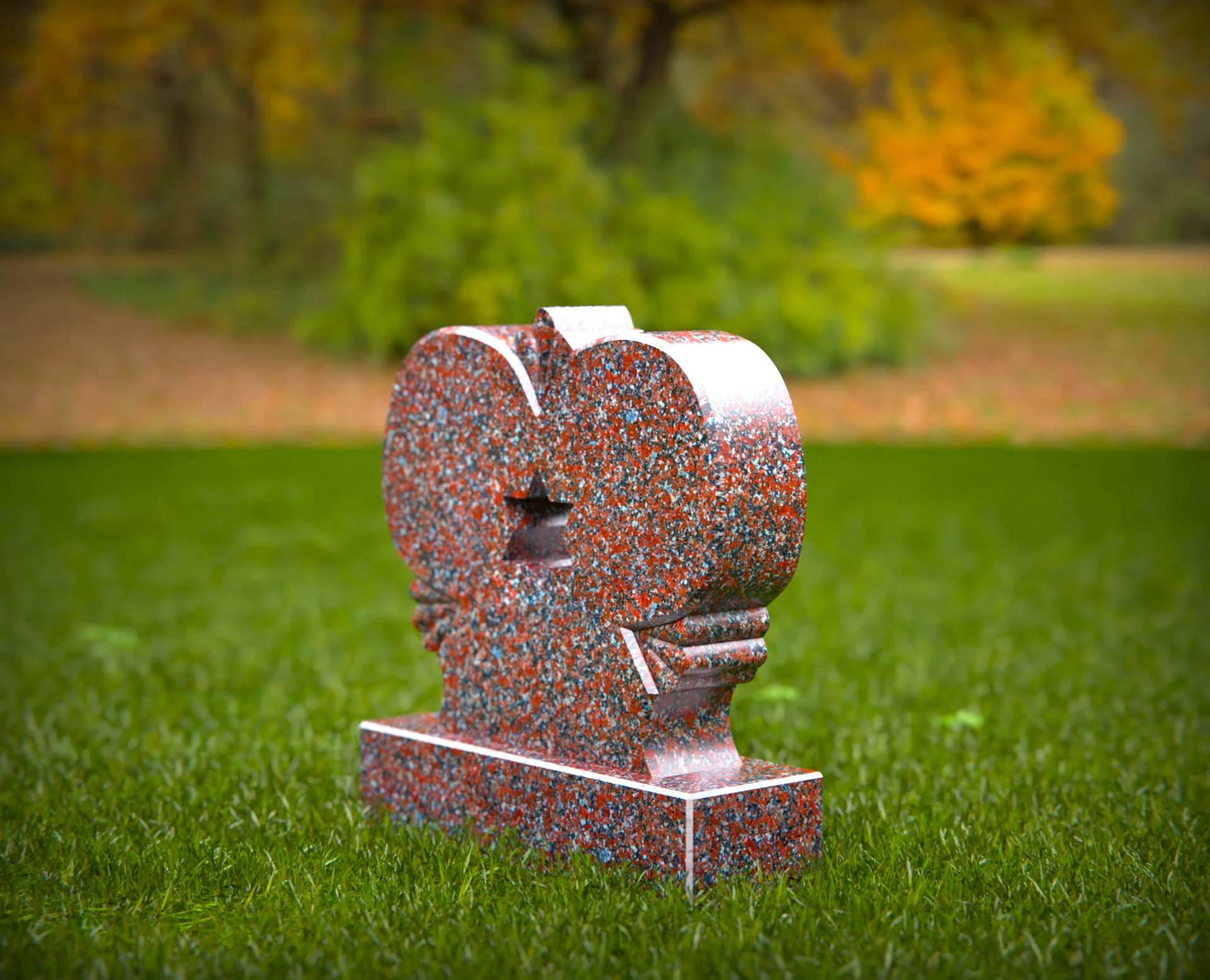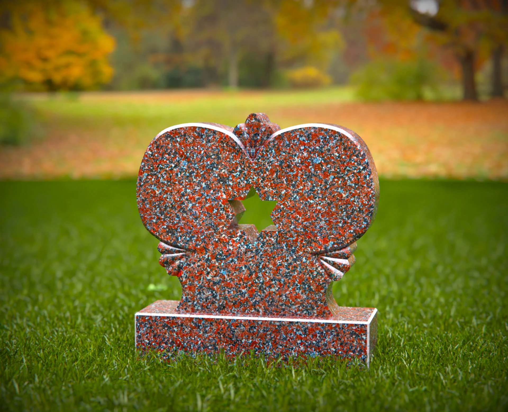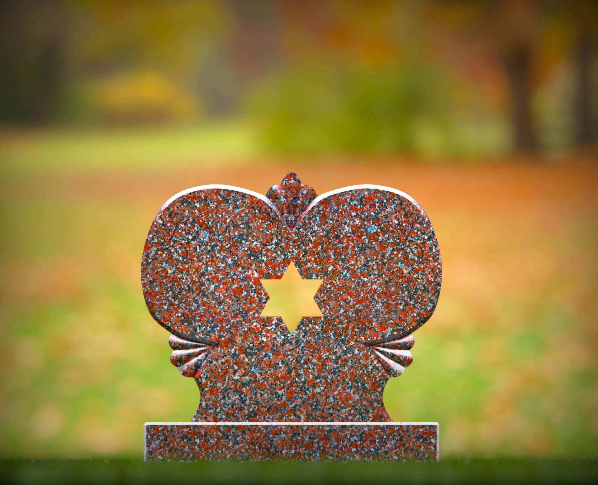Dieser wunderschön gearbeitete Grabstein aus Granit zeichnet sich durch ein herzliches Design aus, das Liebe, Hingabe und Erinnerung symbolisiert. Die symmetrische Herzform, geschmückt mit einem zentralen Davidstern, repräsentiert ewigen Glauben und Erbe. Elegante Details am Sockel fügen eine künstlerische Note hinzu und machen dieses Denkmal zu einer bedeutungsvollen Hommage an ein geliebtes Leben.