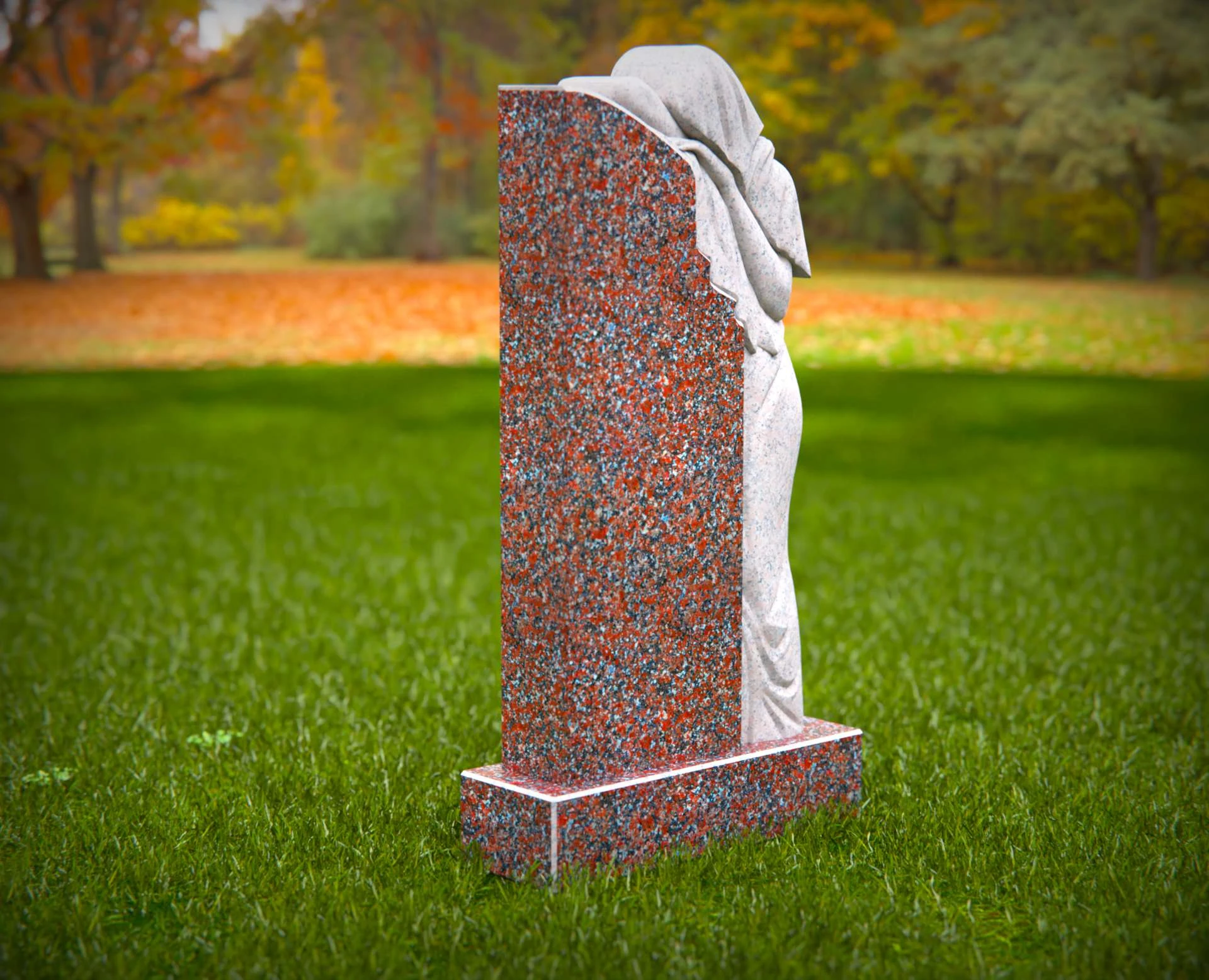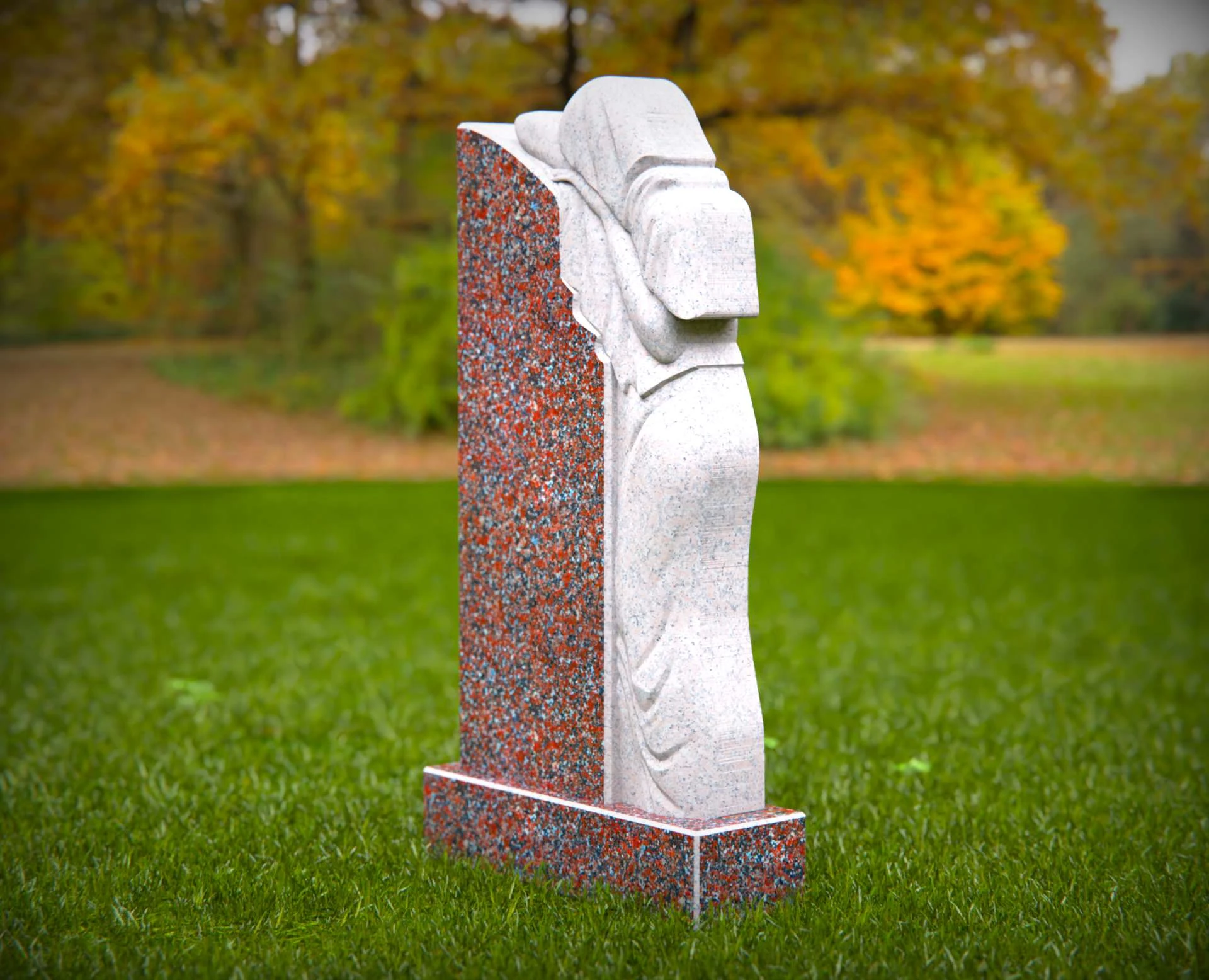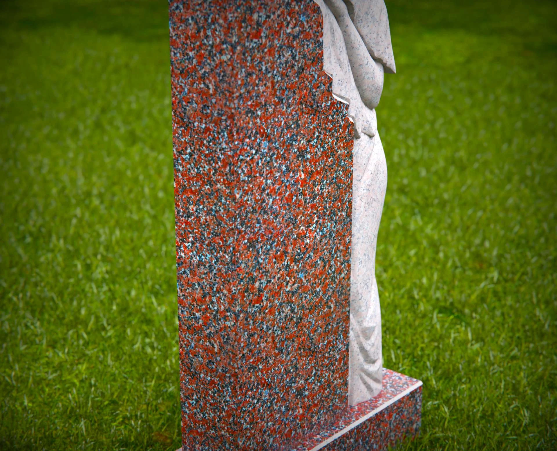 Dieser elegante Grabstein aus Granit zeichnet sich durch einen wunderschön geschnitzten trauernden Engel aus, der ewige Liebe und Erinnerung symbolisiert. Die detaillierte Schnitzerei des Engels, der sich über die polierte Granitoberfläche lehnt, fügt einem geliebten Leben eine rührende Hommage hinzu. Gefertigt aus widerstandsfähigem Granit, ist dieses Denkmal darauf ausgelegt, den Elementen standzuhalten und gleichzeitig ein zeitloses und herzliches Denkmal zu bieten. Ideal zur Ehrung eines geliebten Menschen mit Anmut und Würde.