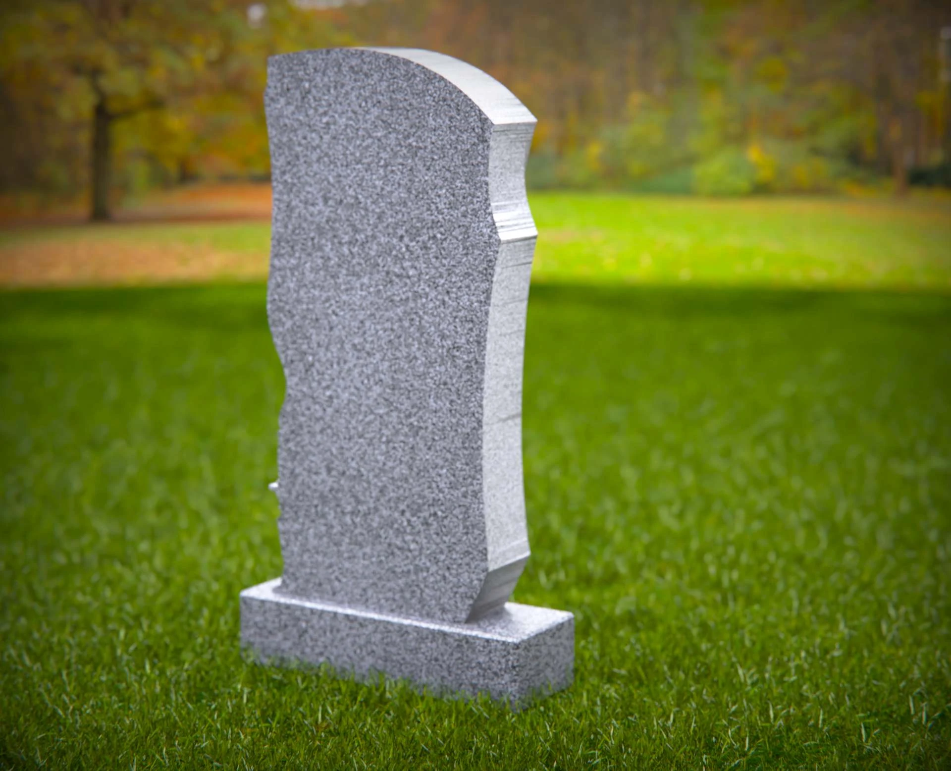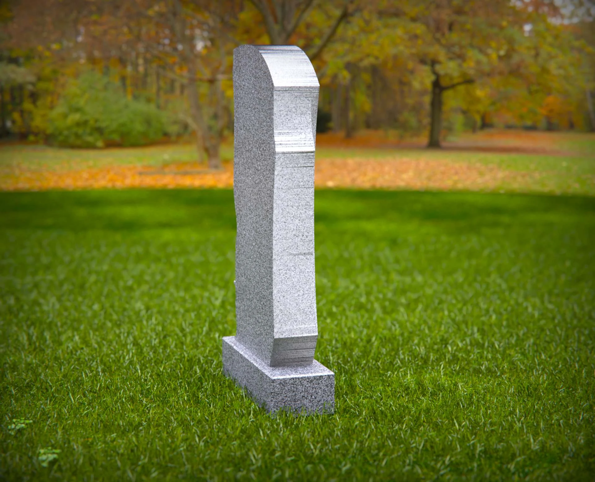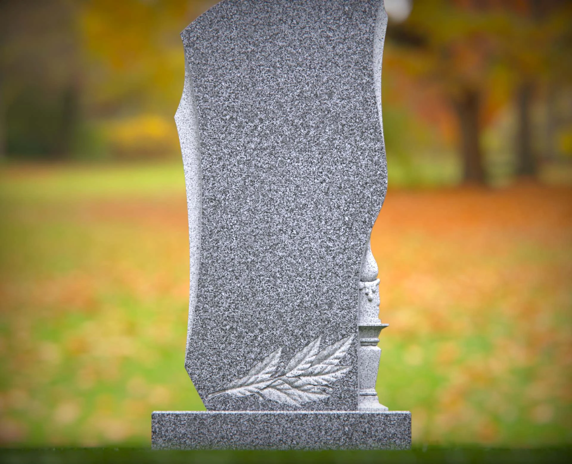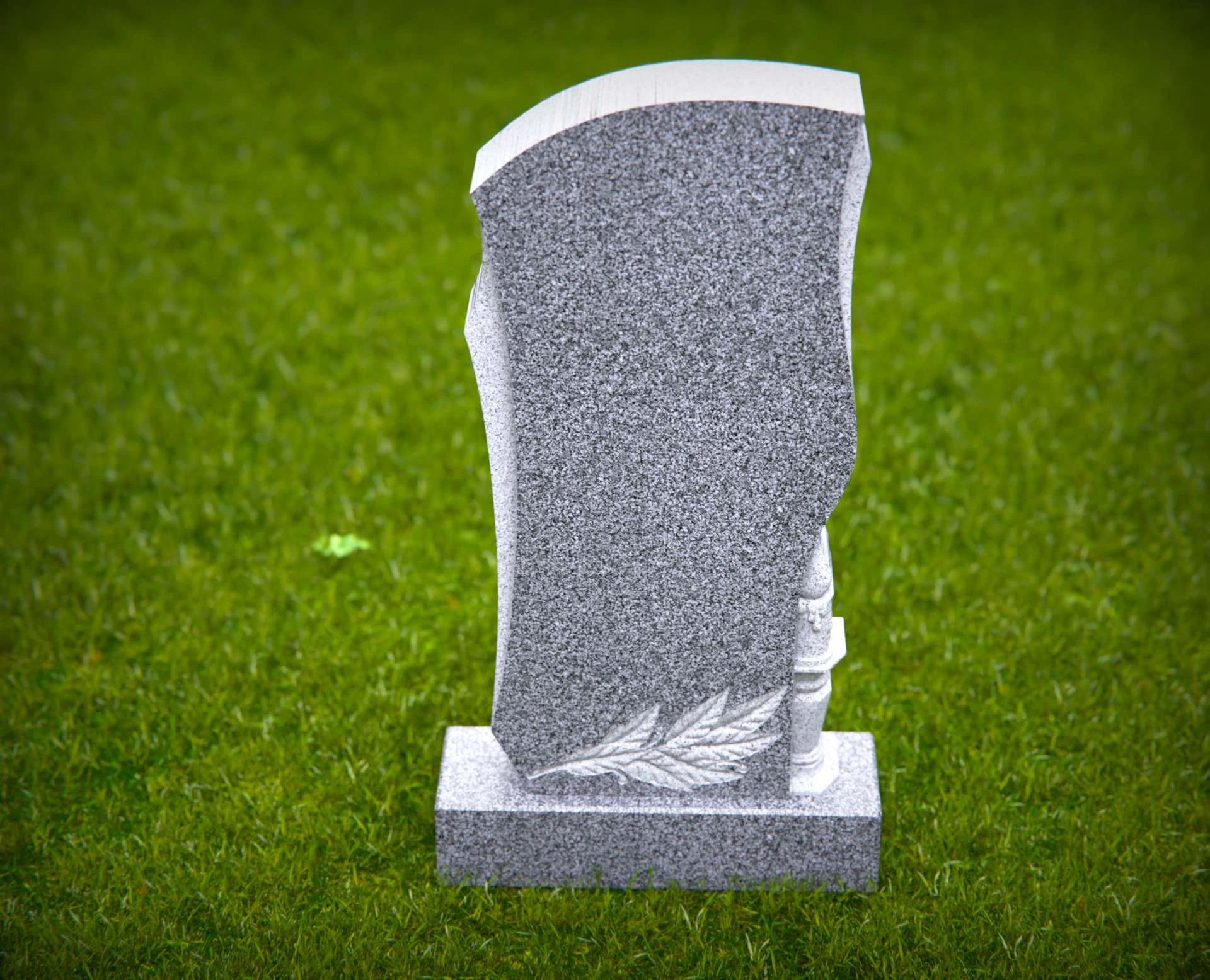 Dieser einzigartig geformte Grabstein aus Granit zeichnet sich durch ein modernes und dennoch zeitloses Design aus und bietet eine würdevolle und respektvolle Würdigung eines geliebten Menschen. Die polierte Steinoberfläche bietet ausreichend Platz für persönliche Gravuren, während die skulpturierten Seitendetails, einschließlich einer Säule und einer feinen Lorbeerblattgravur an der Basis, einen Hauch von Raffinesse hinzufügen. Die asymmetrische Kontur des Denkmals erhöht seinen visuellen Reiz und symbolisiert Stärke, Erinnerung und ein bleibendes Erbe.