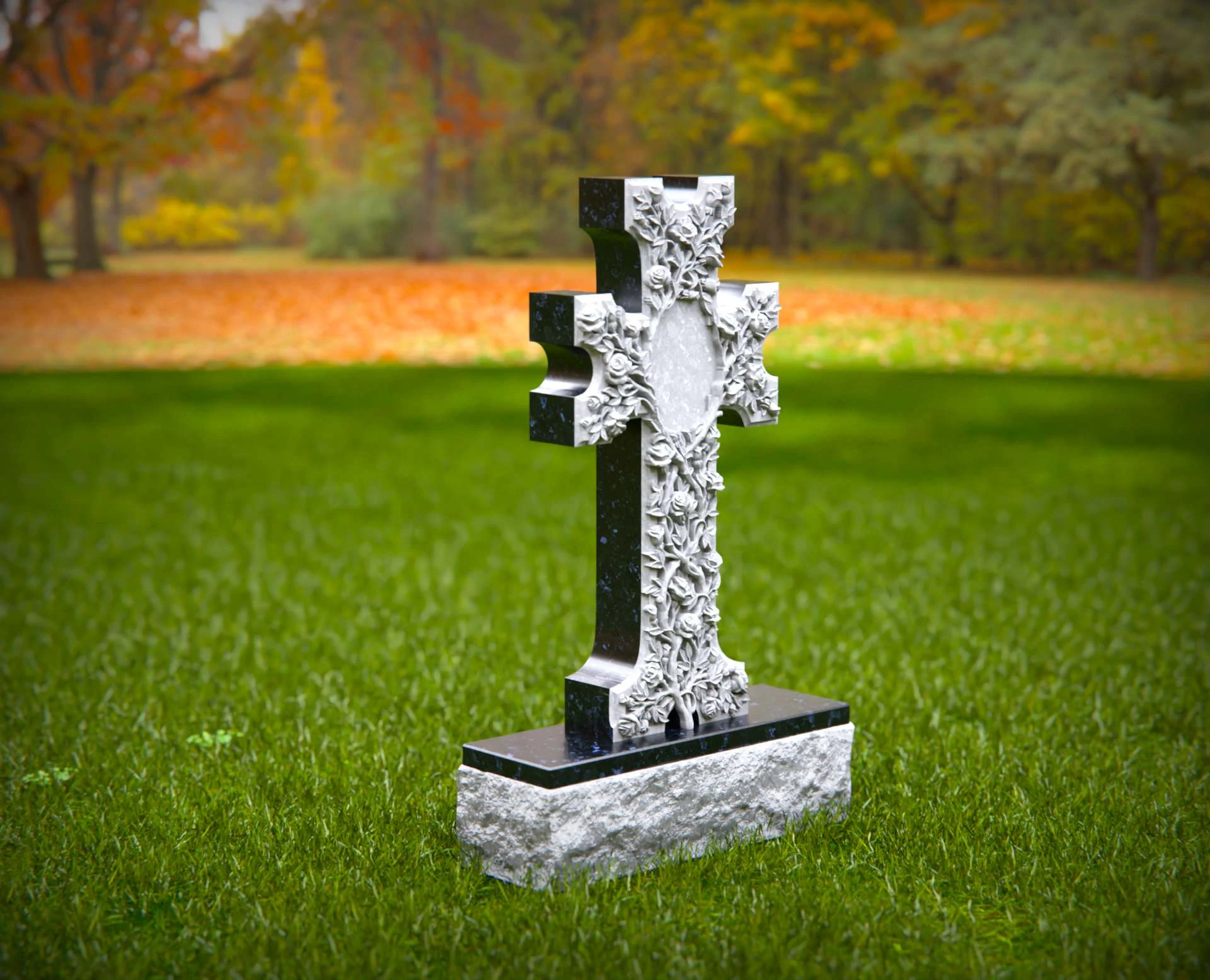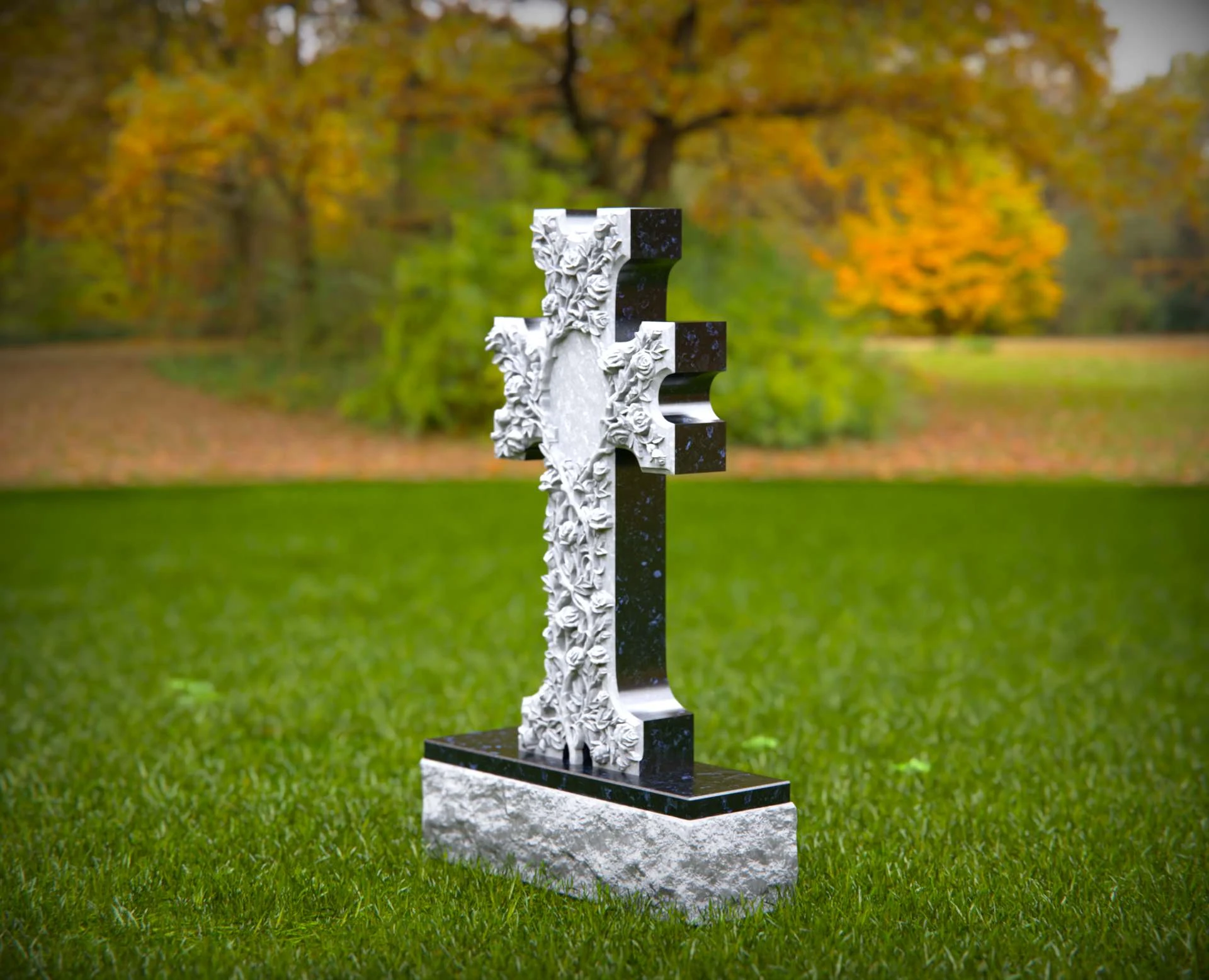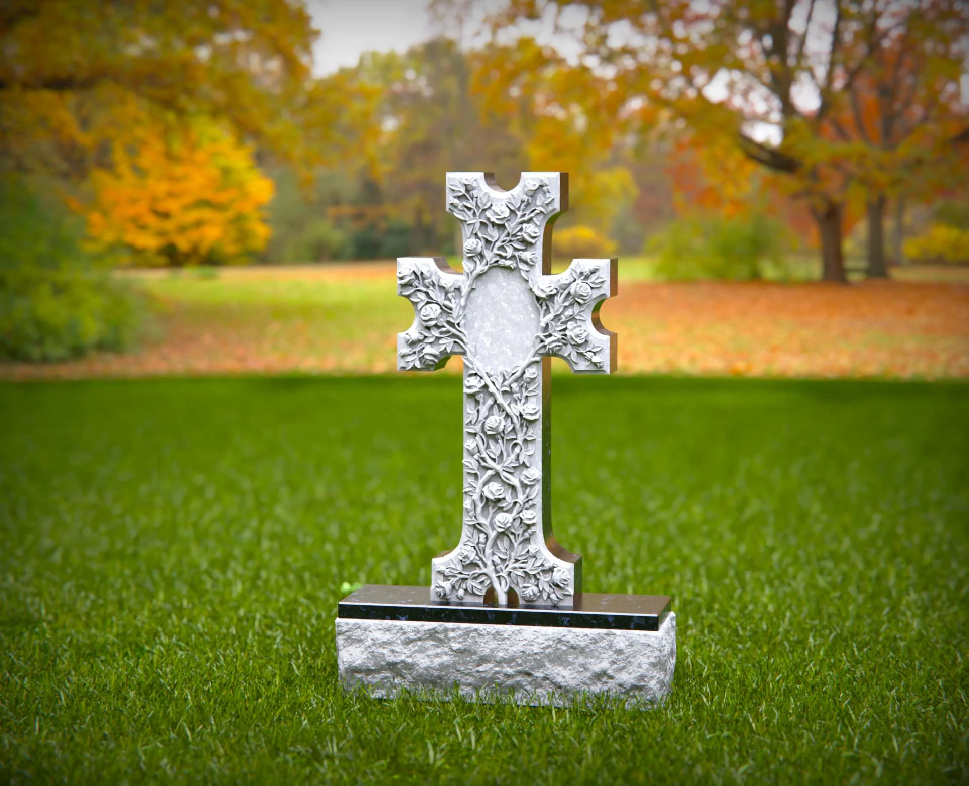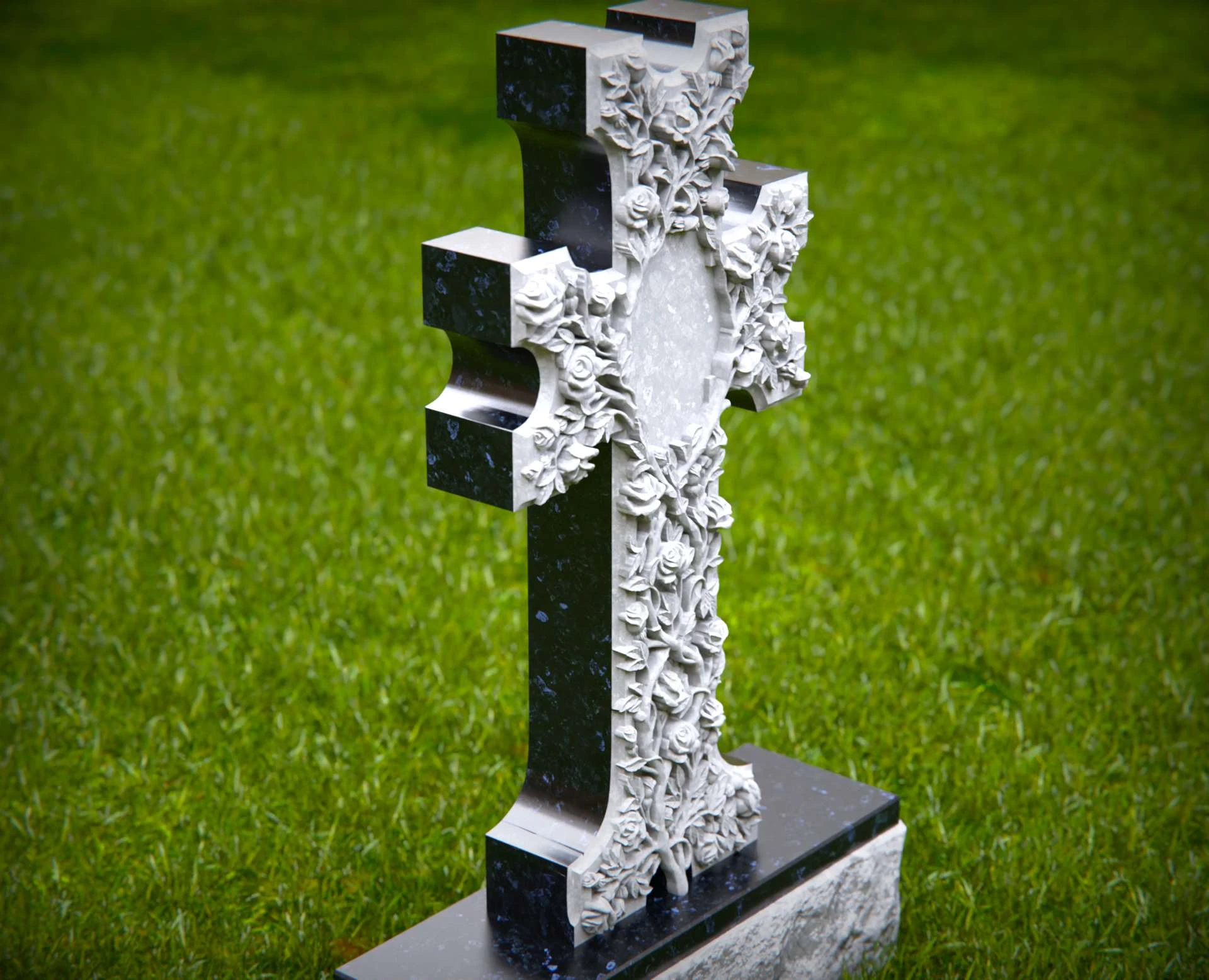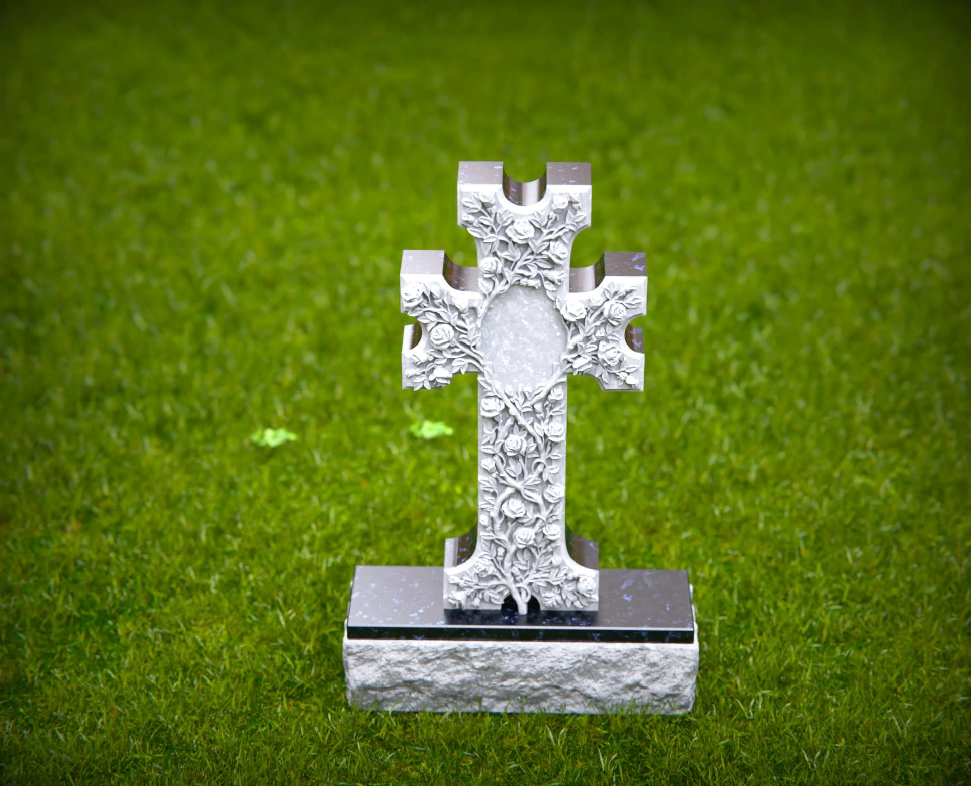 Dieser kunstvoll geschnitzte Steinkreuz Grabstein zeichnet sich durch ein atemberaubendes Blumendesign aus, das Glauben, ewige Liebe und spirituelle Hingabe symbolisiert. Die fein detaillierten Rosen und Ranken, die sich um das Kreuz schlängeln, schaffen ein zartes und dennoch eindrucksvolles Denkmal. Ein zentraler ovaler Raum ermöglicht individuelle Inschriften oder Porträts und macht dieses Monument zu einer einzigartigen und personalisierten Würdigung. Aus hochwertigem Stein gefertigt, ist dieser kunstvolle Friedhofsmarker eine zeitlose Wahl, um die Erinnerung an einen geliebten Menschen mit Anmut und Ehrfurcht zu ehren.