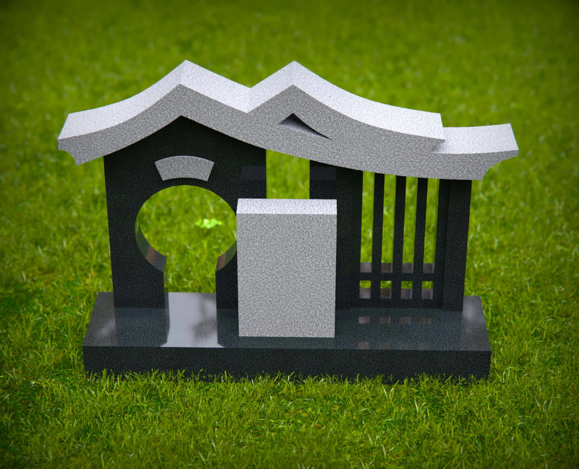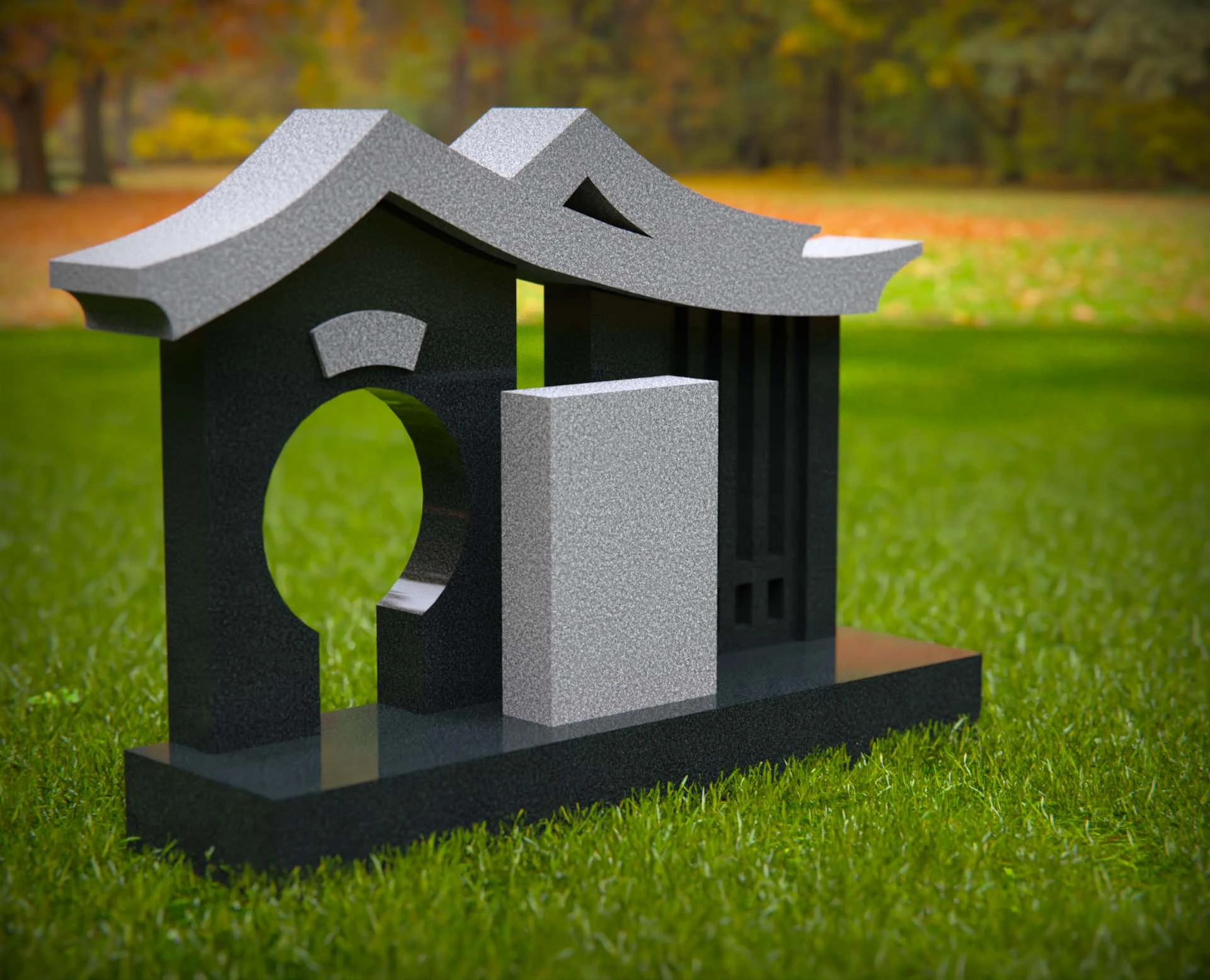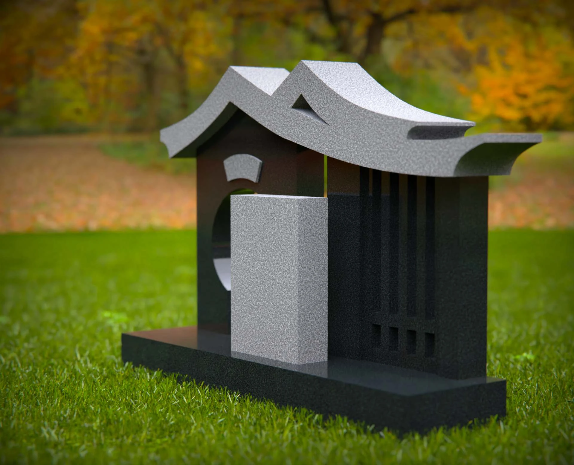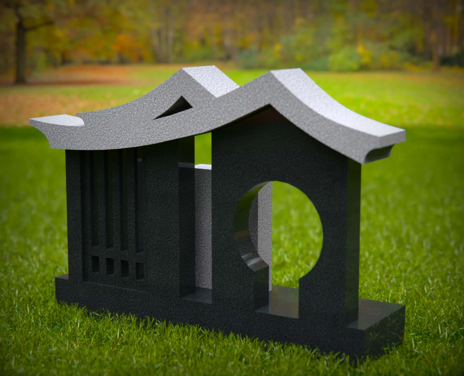 1562 - Japanisch inspirierter Granit Grabstein mit Pagodendach Design