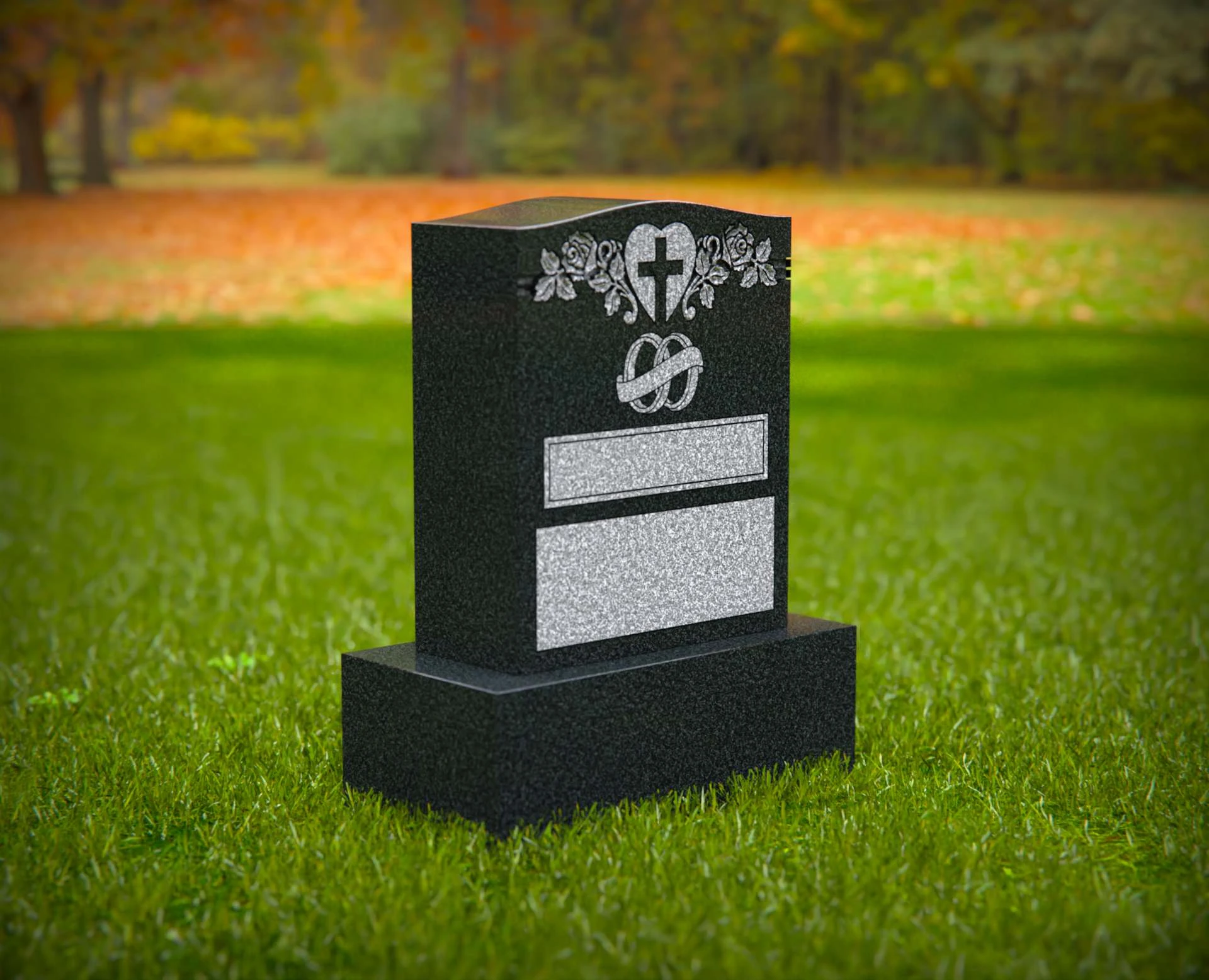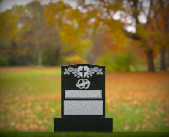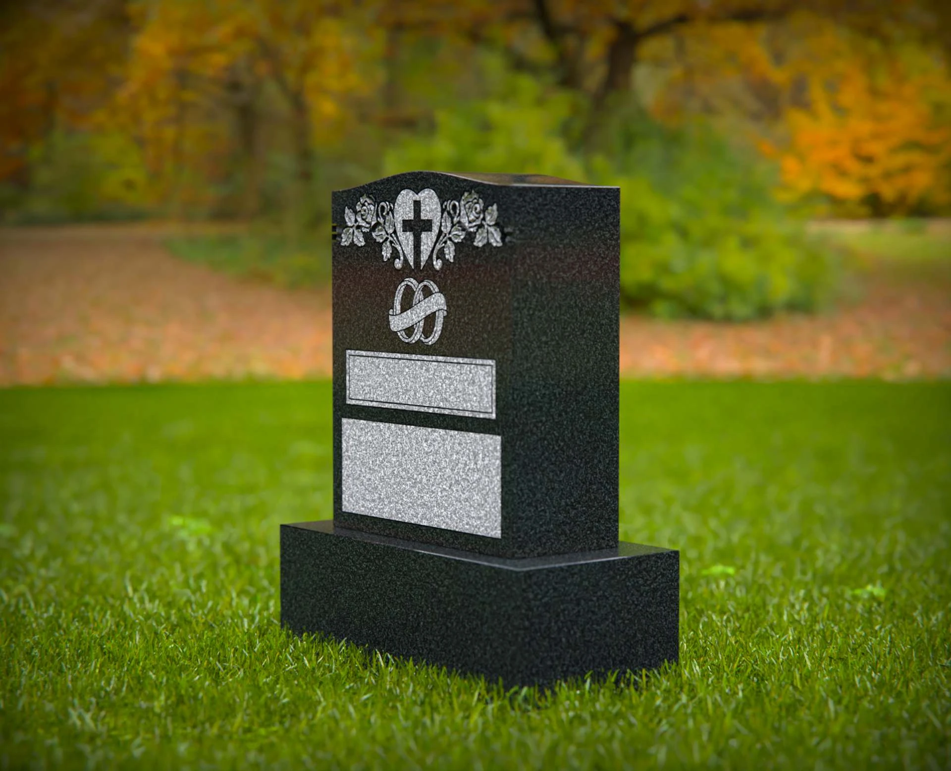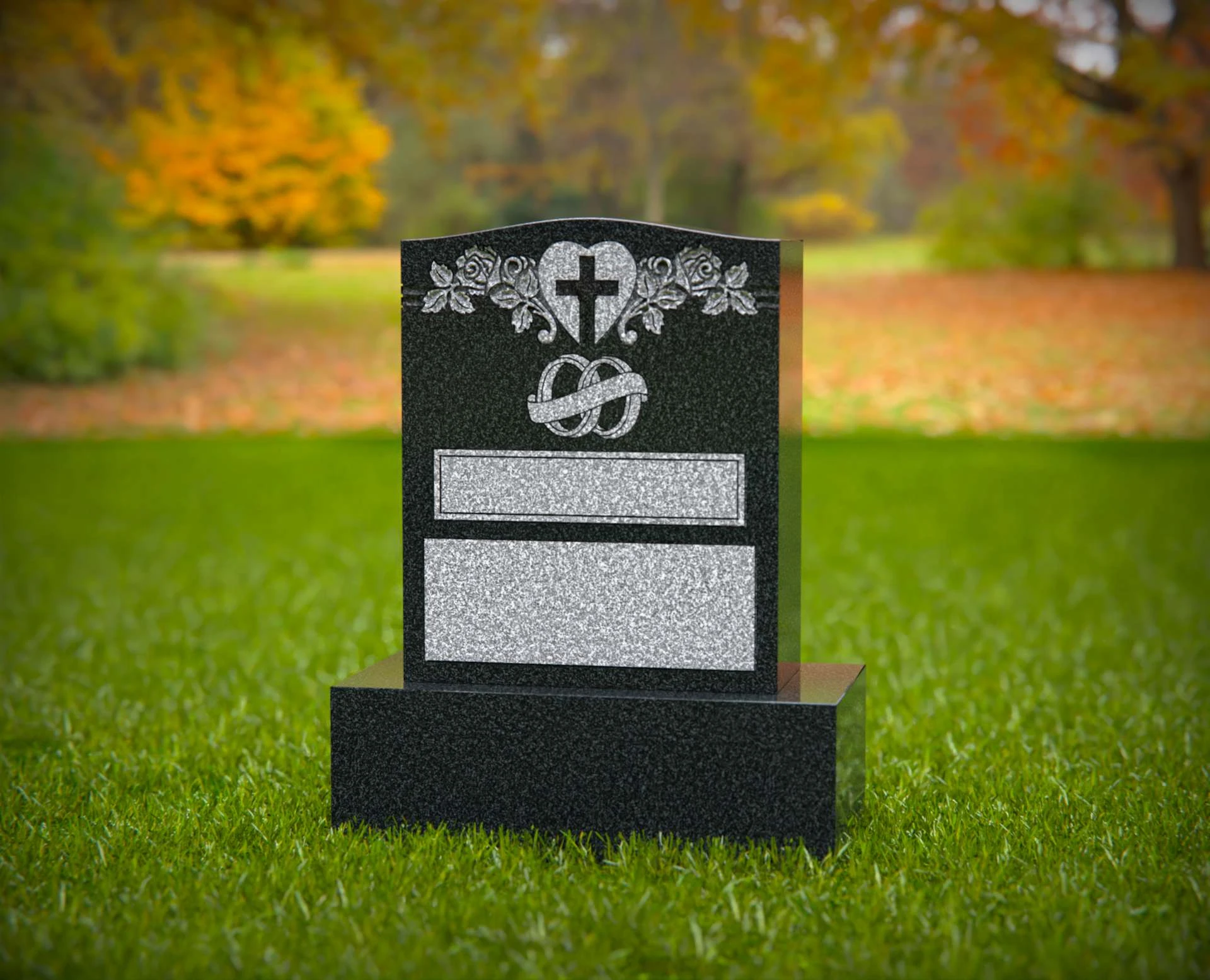 Dieser wunderschön gestaltete Grabstein aus schwarzem Granit ist eine perfekte Ehrung für ein geliebtes Paar. Mit einem eingravierten Herzen mit Kreuz, verschlungenen Eheringen und floralen Details symbolisiert dieses Denkmal die ewige Liebe, den Glauben und die Hingabe. Die polierte Oberfläche verbessert die elegante Ästhetik, während die individuell gestaltbaren Namens- und Inschriftsfelder eine persönliche Note ermöglichen. Die robuste Granitkonstruktion garantiert Langlebigkeit und Widerstandsfähigkeit gegenüber den Elementen und macht sie so zum idealen Gedenkstein für Friedhöfe oder private Gedenkgärten.