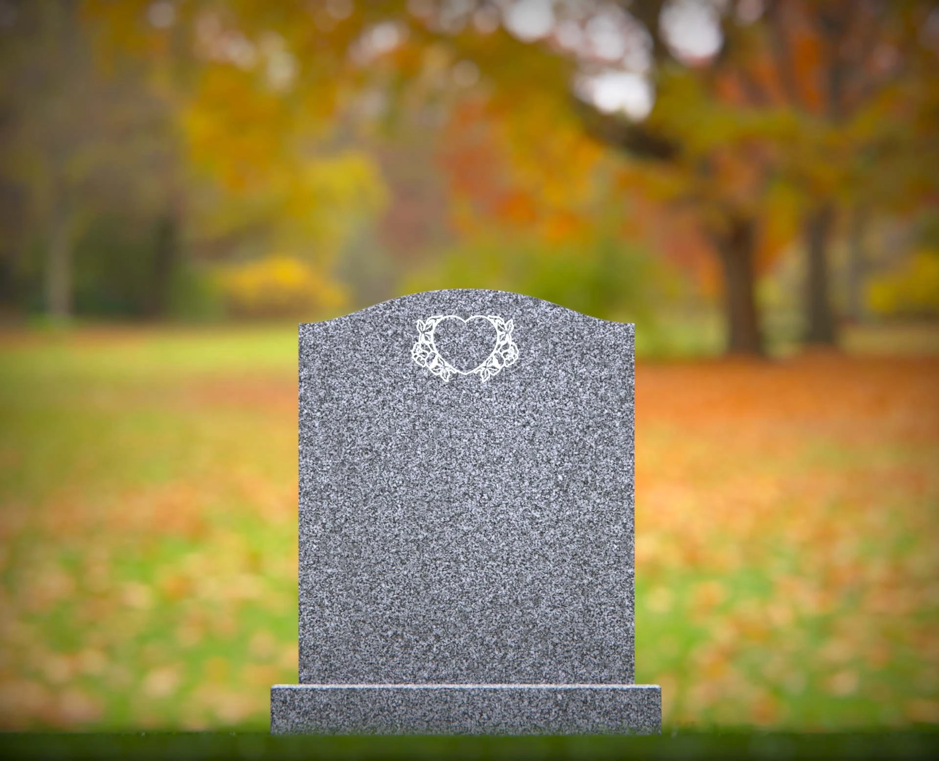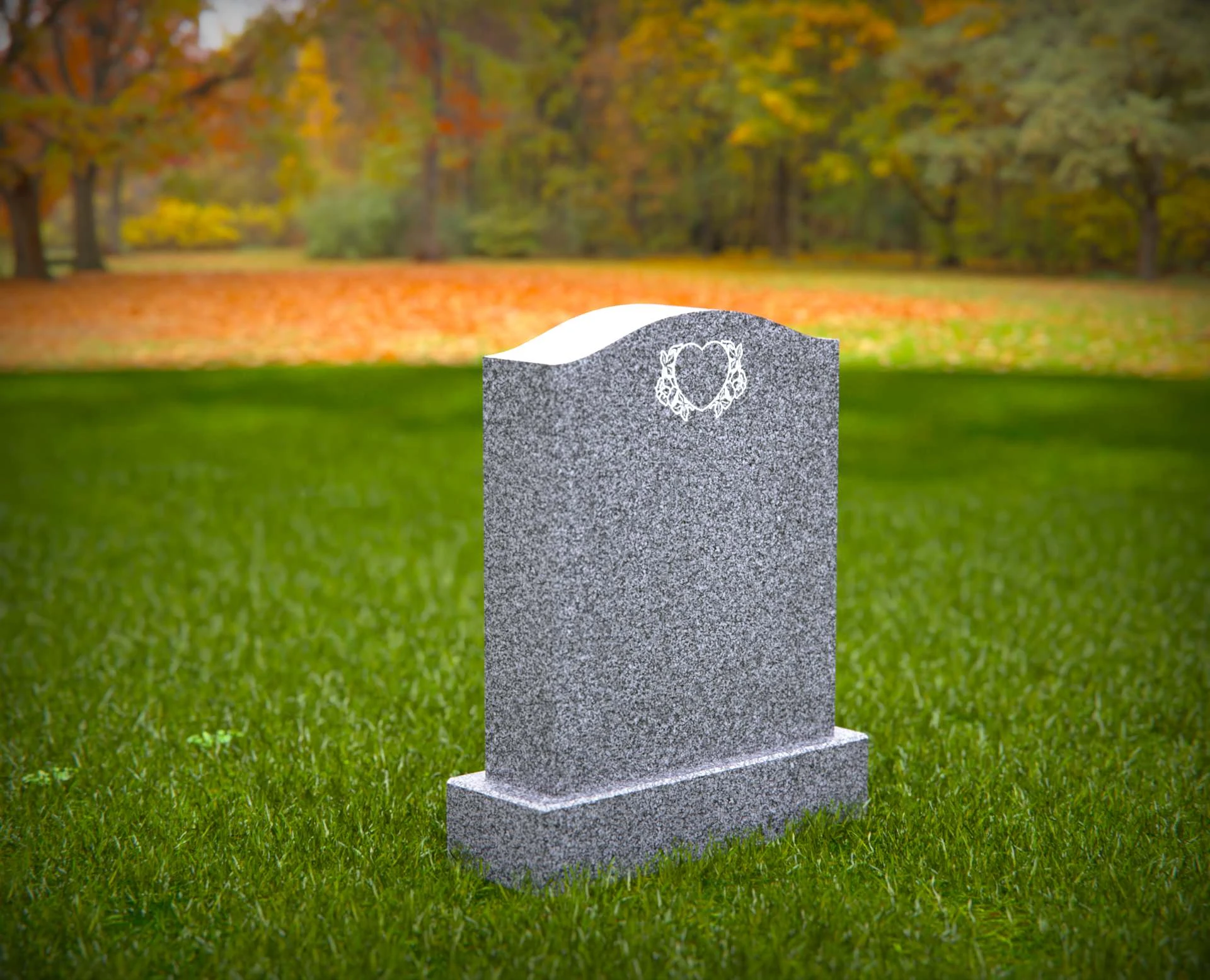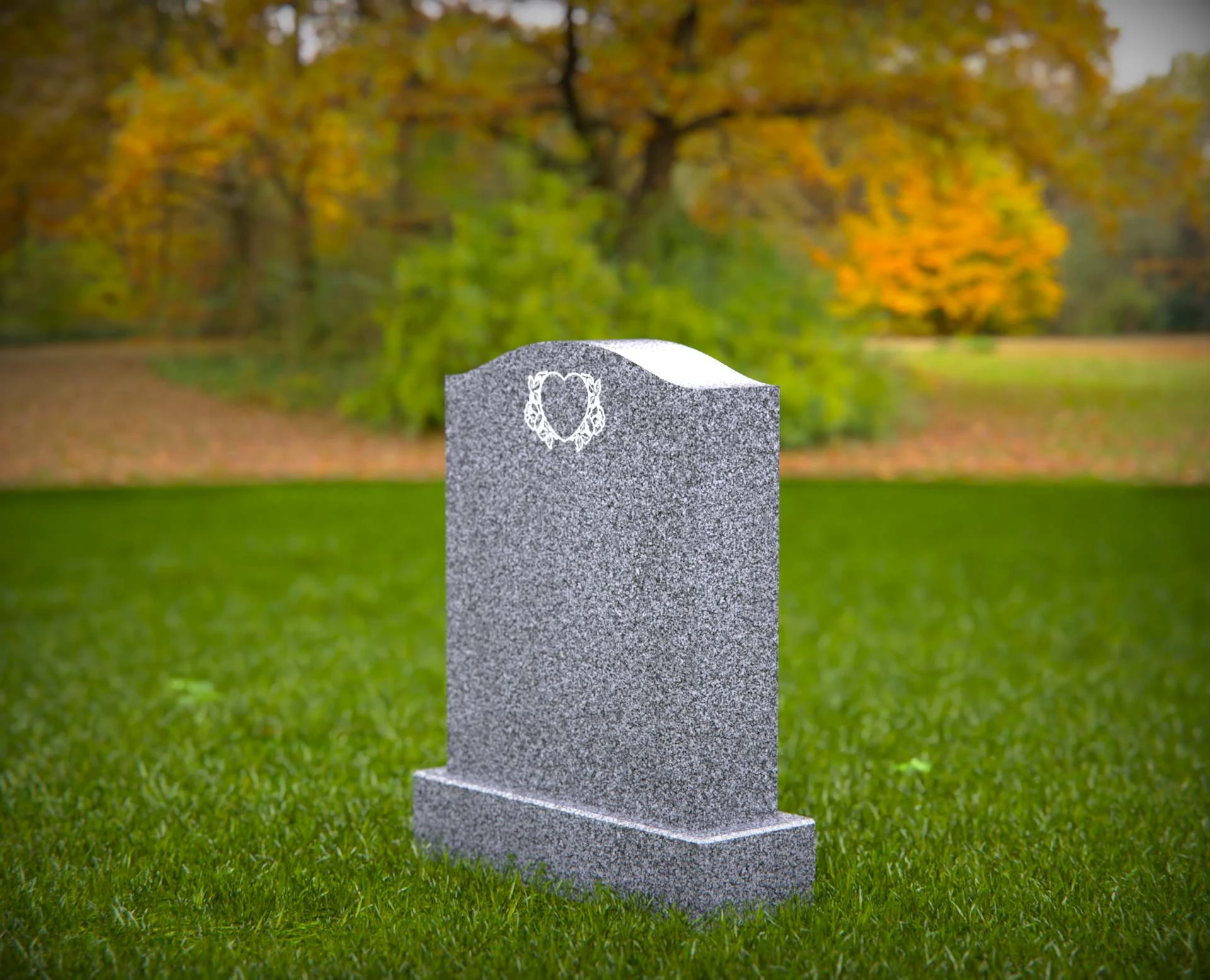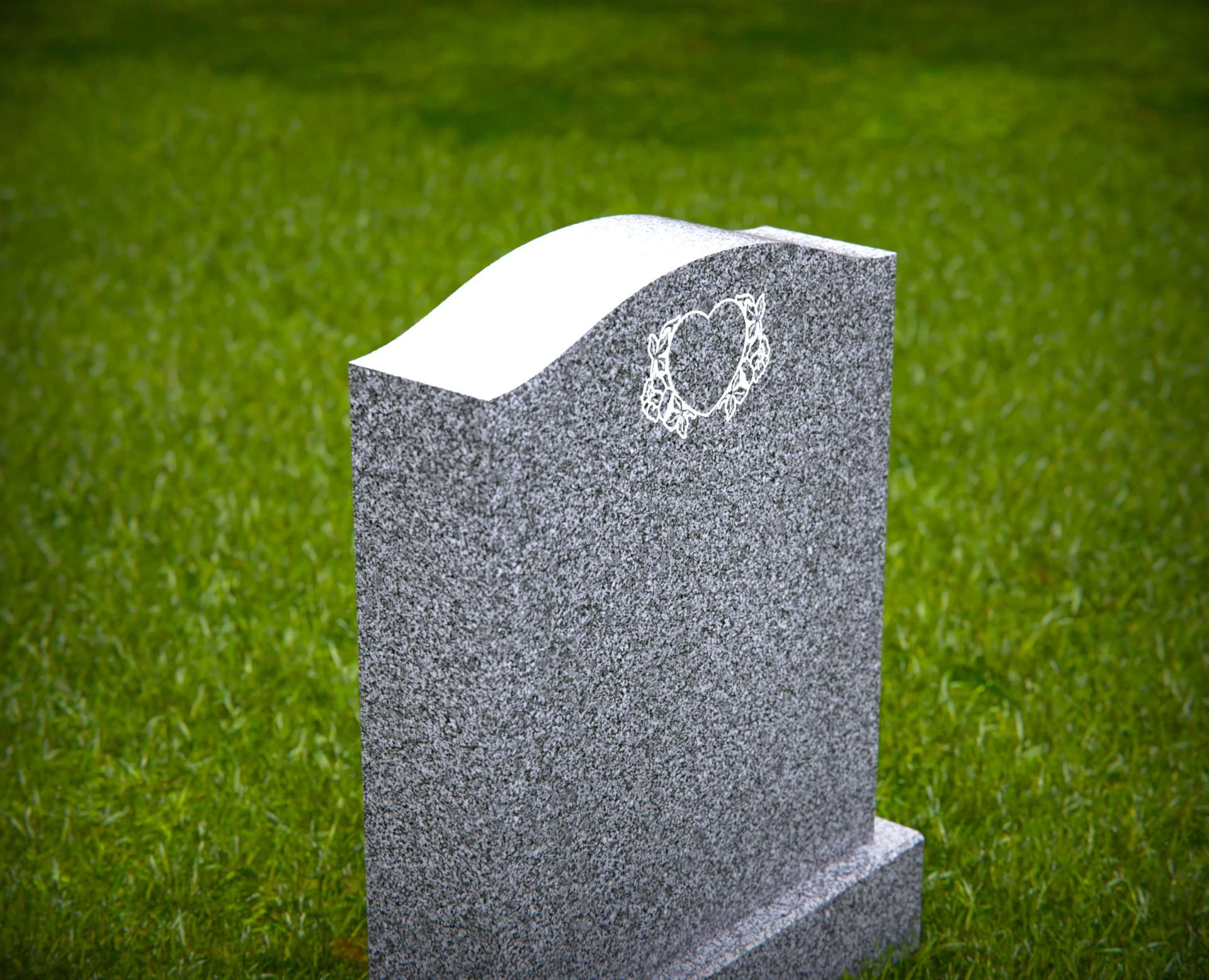 Dieser aufrechte Grabstein aus Granit zeichnet sich durch eine sanft geschwungene Spitze und ein zart eingraviertes Herz aus, das von einem Blumenkranz umgeben ist und Liebe und Erinnerung symbolisiert. Vor einem friedlichen, natürlichen Hintergrund gesetzt, bietet dieses klassische Denkmal eine herzliche Hommage, die ideal ist für Gedenkkataloge, Inspiration für Friedhofsdesigns oder personalisierte Grabsteinoptionen.