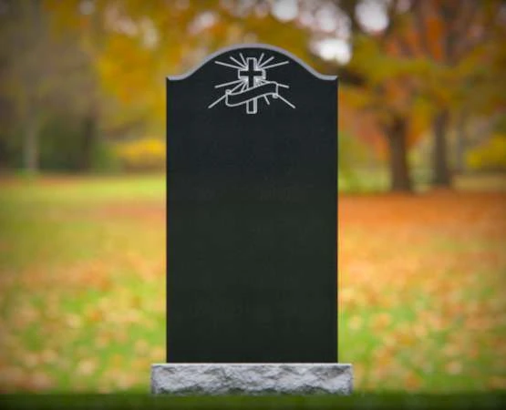 Dieser auffällige aufrechte Grabstein zeichnet sich durch einen eleganten Bogen an der Oberseite und eine strahlende Kreuzgravur mit einem fließenden Banner aus, was Glaube, Licht und ewige Hoffnung symbolisiert. Mit seiner sauberen, polierten Oberfläche und der spirituellen Betonung ist dieser Gedenkstein perfekt für diejenigen, die ein mutiges, aber respektvolles Design suchen, das ein Leben der Hingabe und Erinnerung in einer ruhigen Friedhofsumgebung ehrt.