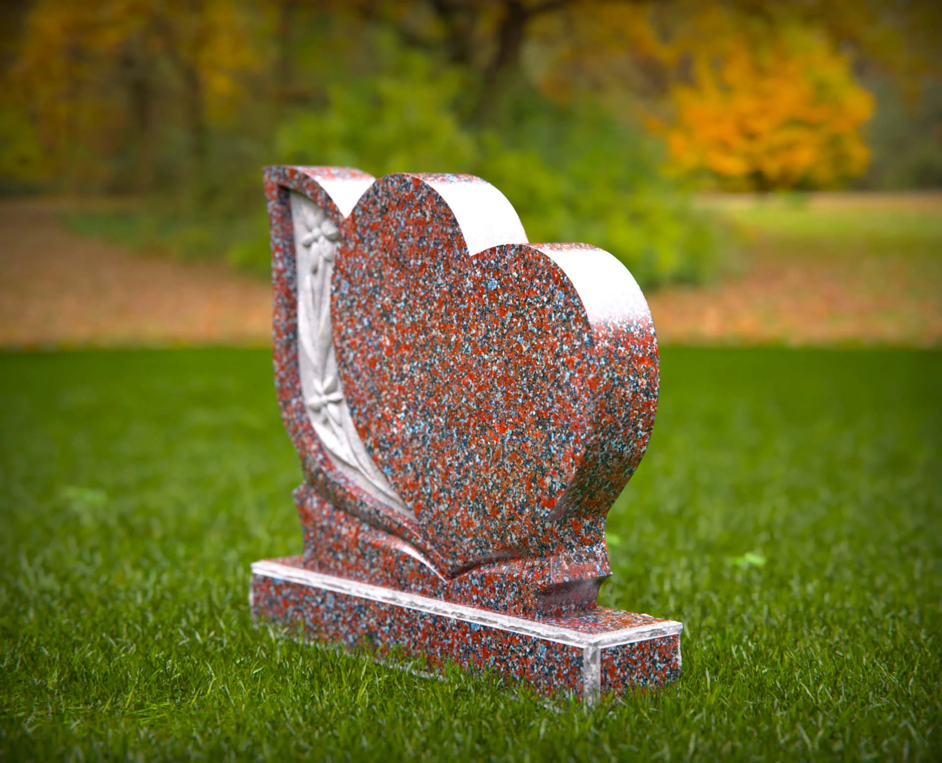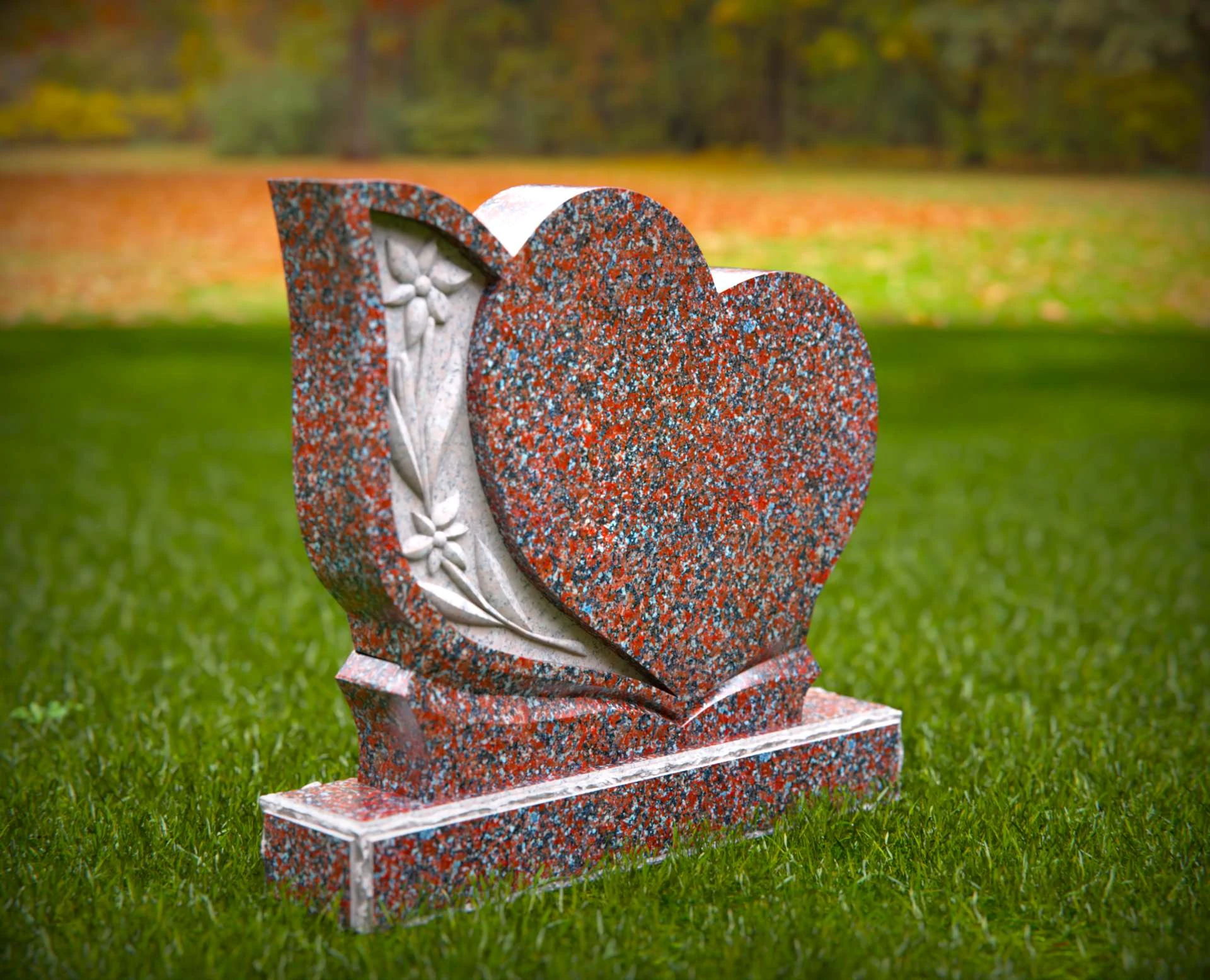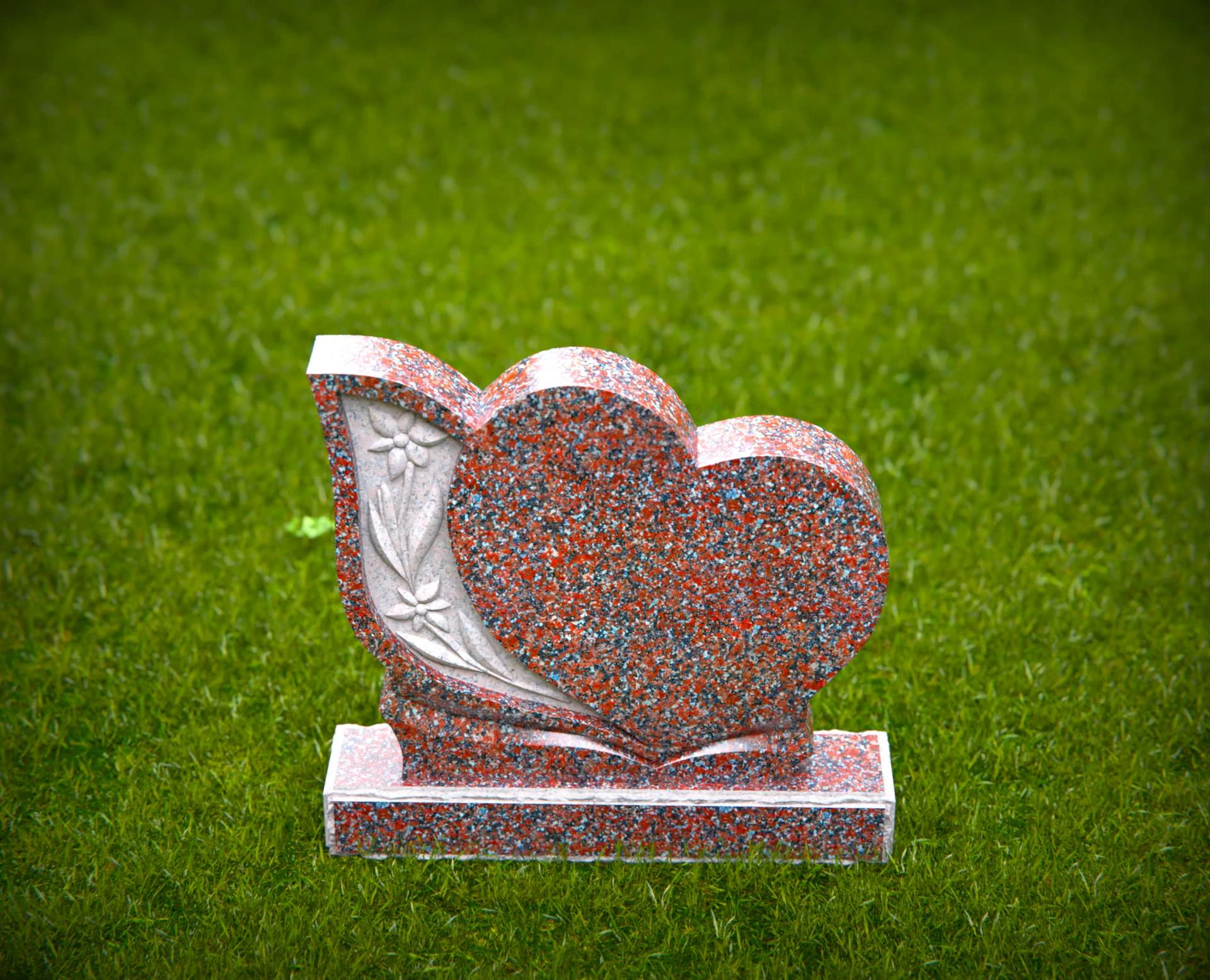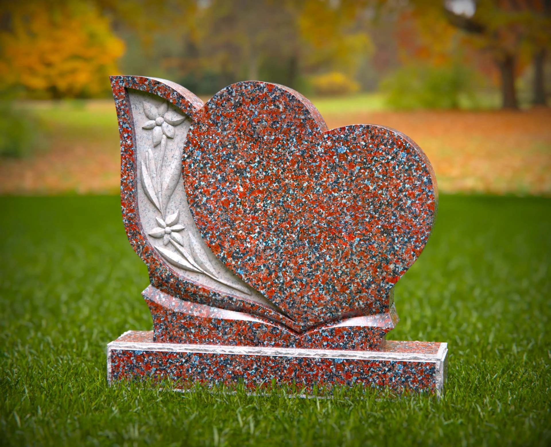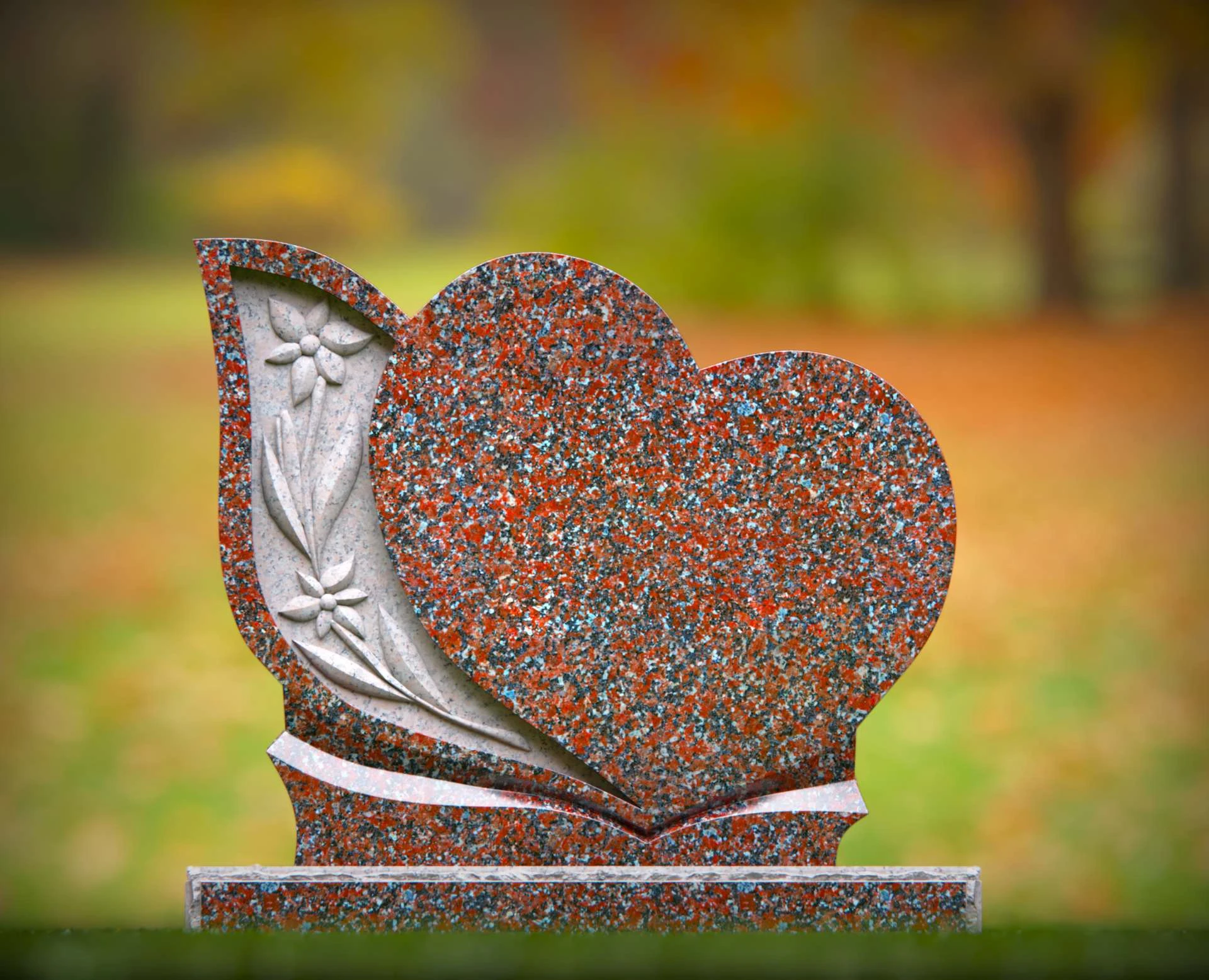 Dieser elegante herzförmige Grabstein verfügt über zart geschnitzte Blumen auf einer polierten Granitoberfläche und bietet ein zeitloses Symbol der Liebe und Erinnerung. Eine perfekte Wahl für diejenigen, die künstlerische Denkmäler, individuelle Grabmarkierungen oder herzliche Grabsteindesigns suchen.