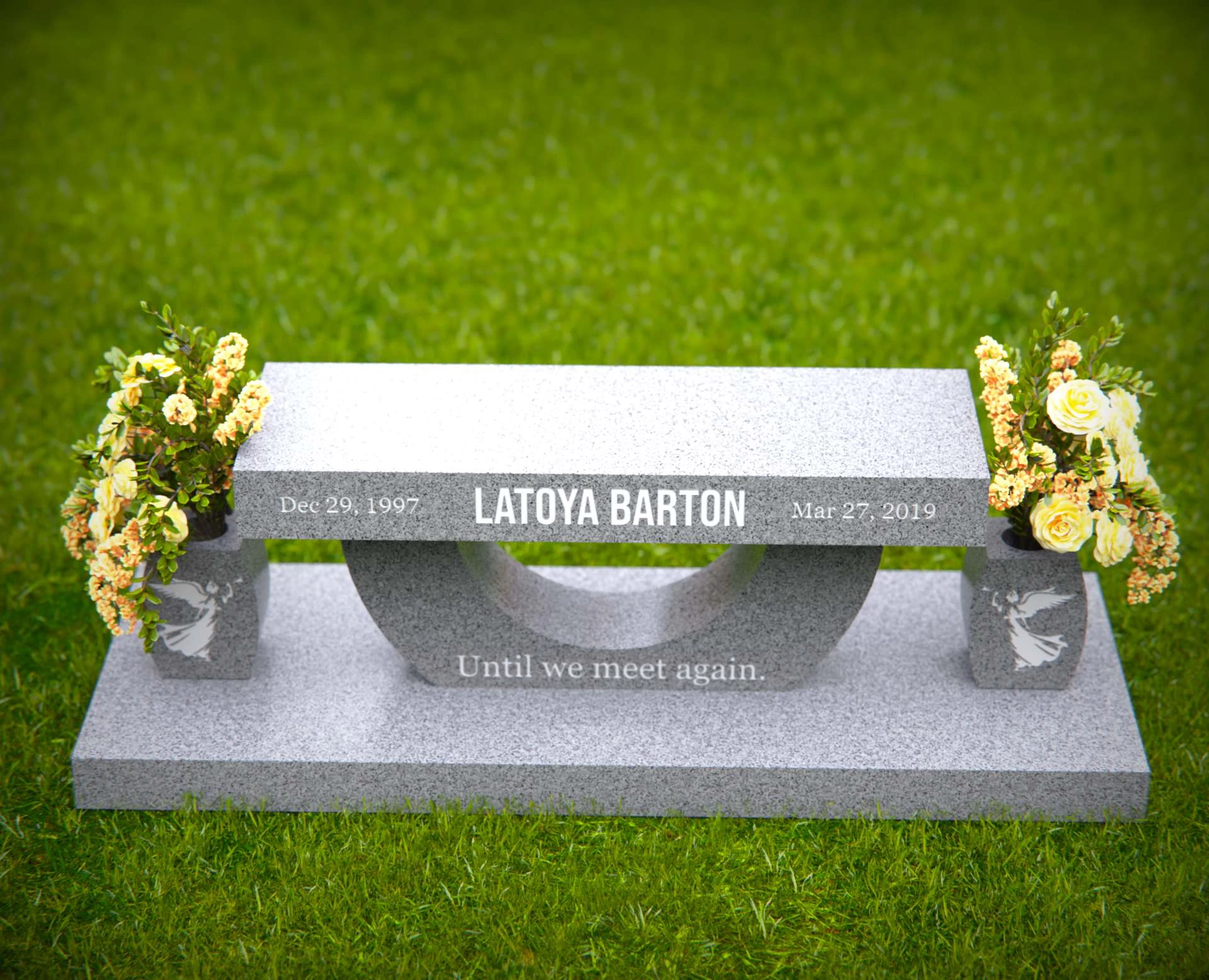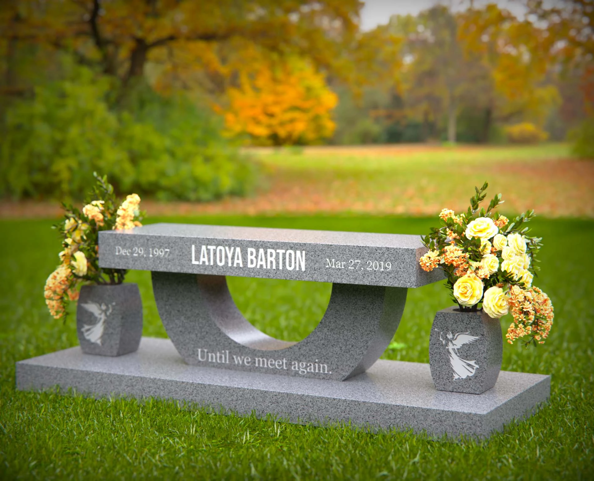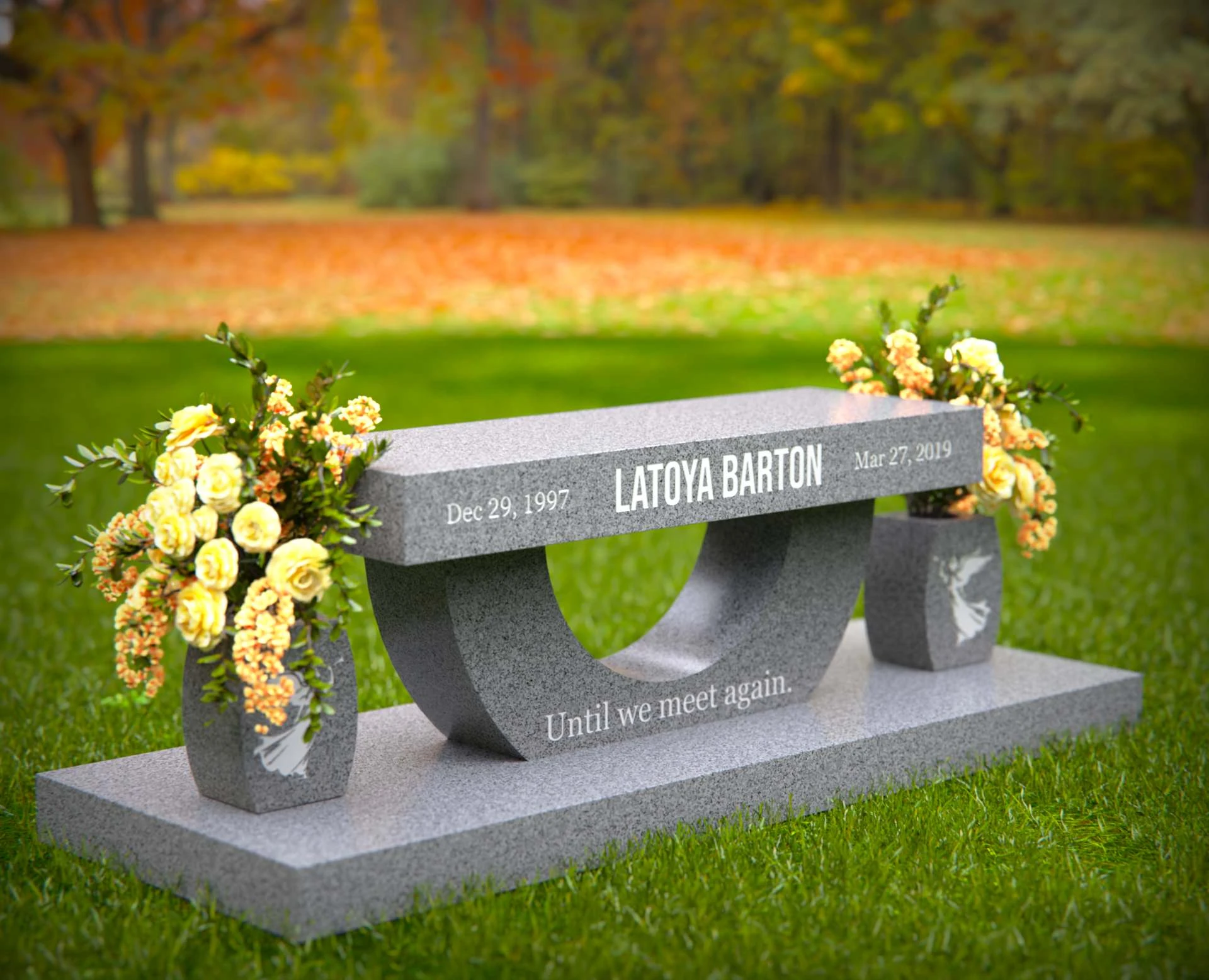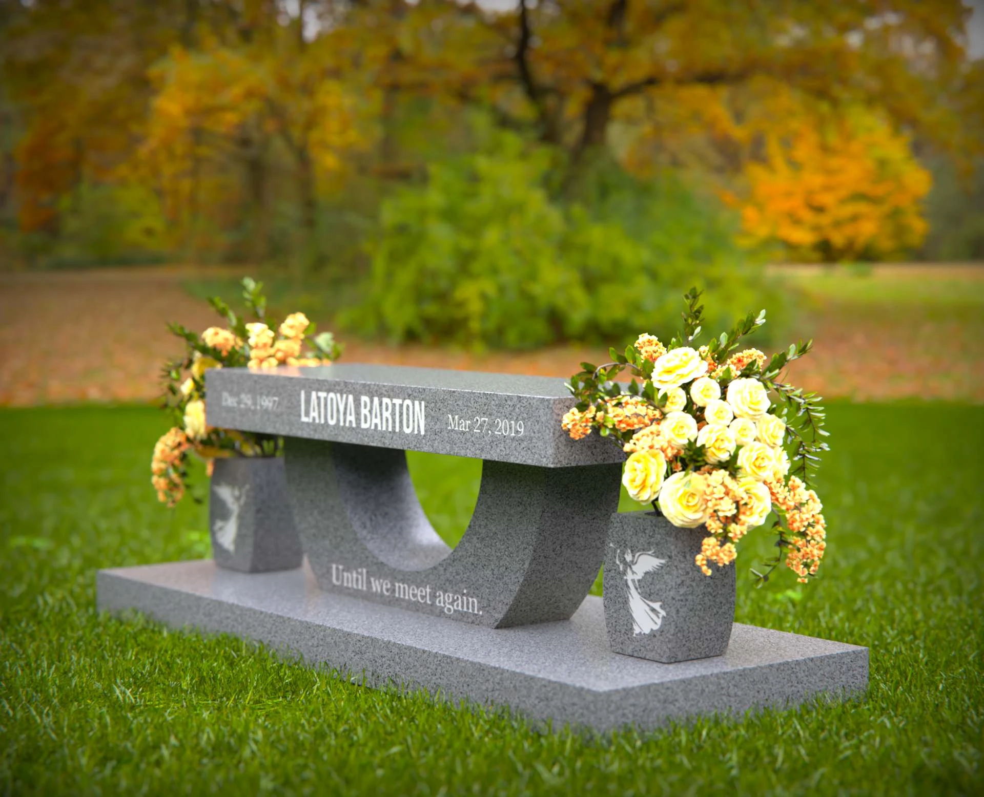 Dieser elegante Gedenkbank-Grabstein verbindet zeitloses Design mit herzlicher Personalisierung. Mit eingravierten Daten und Inschriften versehen, beinhaltet es zwei passende Vasen mit Engelmotiven, die einen anmutigen Raum bieten, um die Erinnerung an einen geliebten Menschen zu ehren. Ideal für diejenigen, die nach individuellen Grabmarkern, Grabsteinen in meiner Nähe oder zeitlosen Denkmälern suchen, die sowohl Schönheit als auch Gefühl bieten. Perfekt für Familien, die nach Grabsteinpreisen und würdevollen Grabsteinen suchen, die als dauerhafte Tribut dienen.