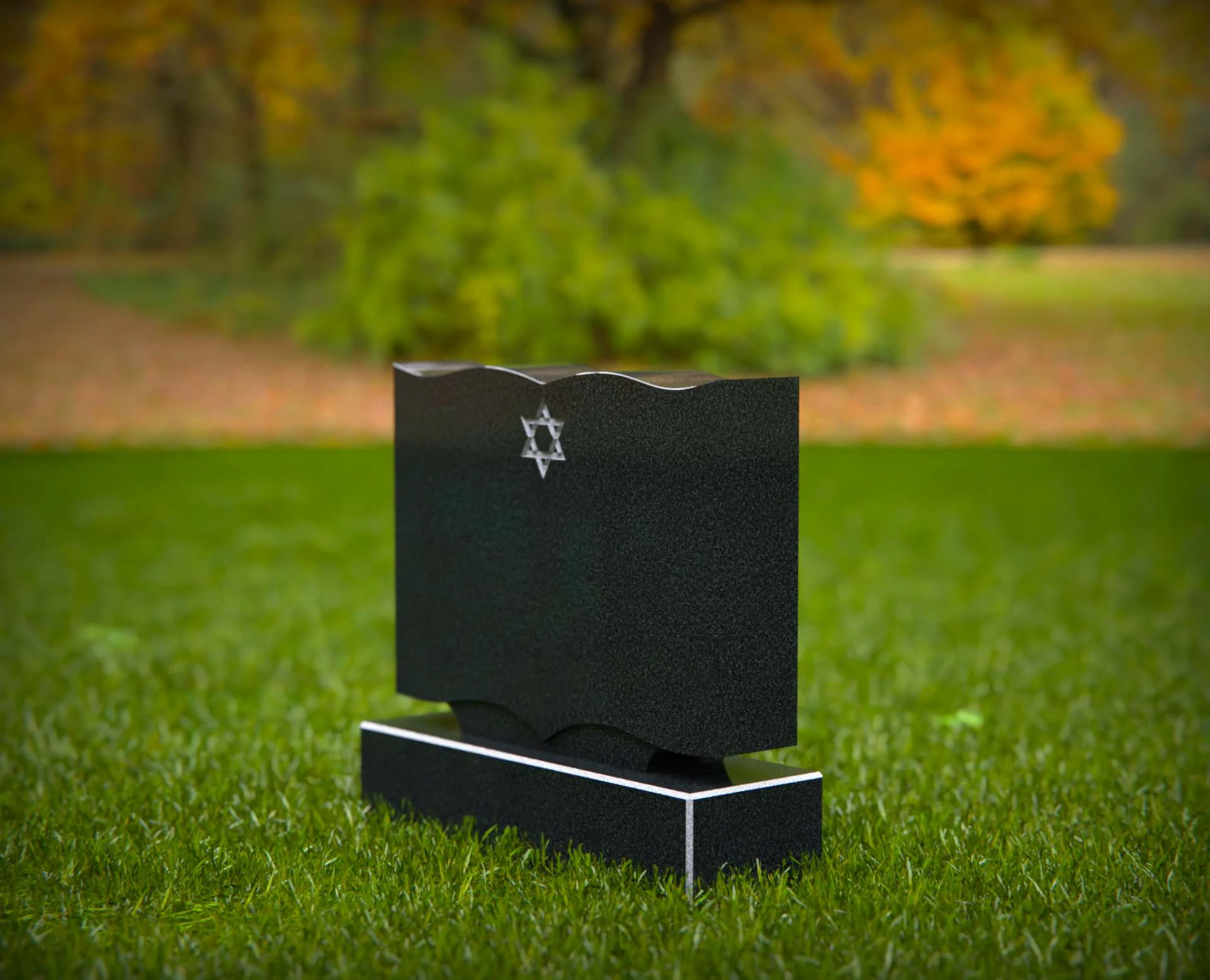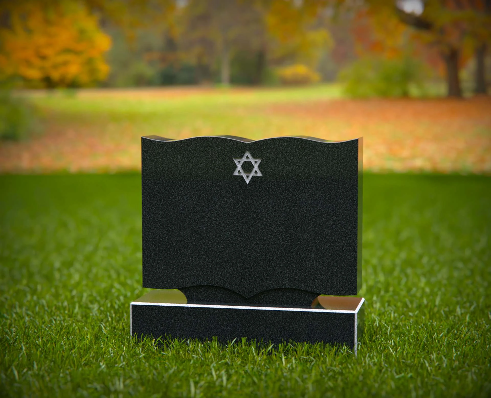 Este elegante monumento presenta una parte superior curvada con gracia con una Estrella de David grabada en la sección superior, significando fe y tradición. Diseñado con un refinado equilibrio de simplicidad y sofisticación, esta lápida de granito sirve como un duradero tributo a los recuerdos apreciados. Su duradera artesanía garantiza un legado eterno de amor y recuerdo.