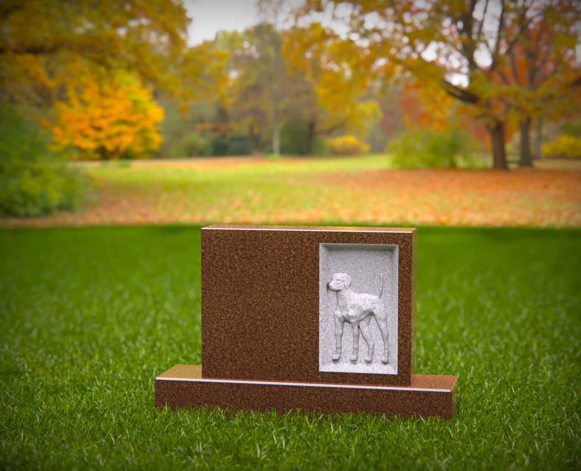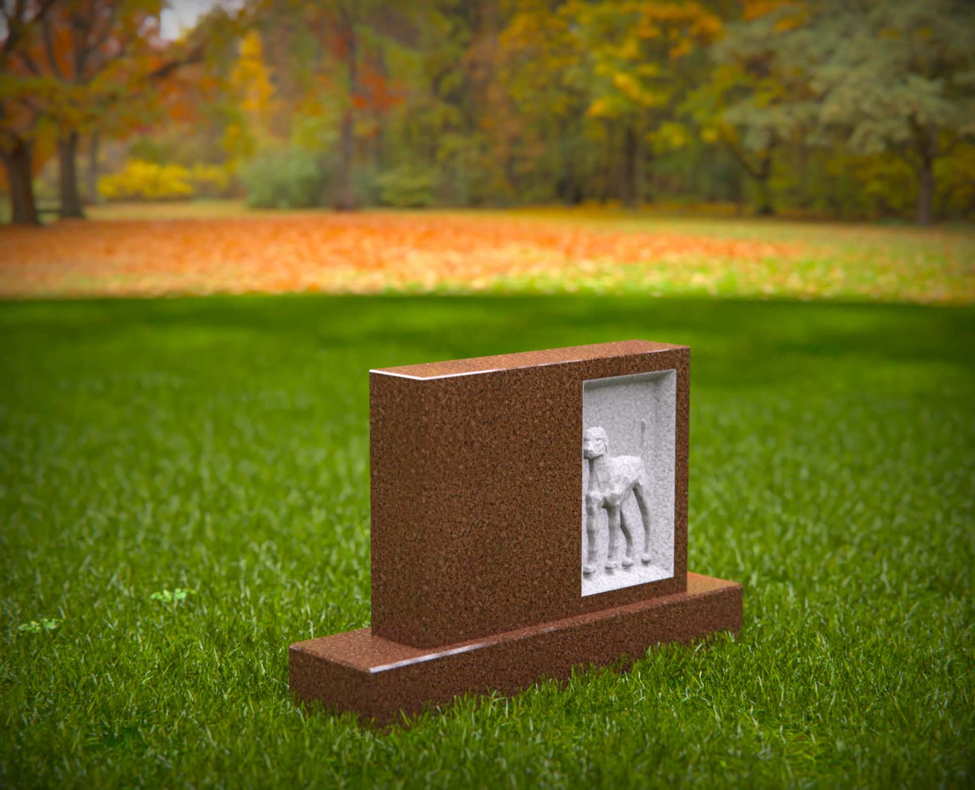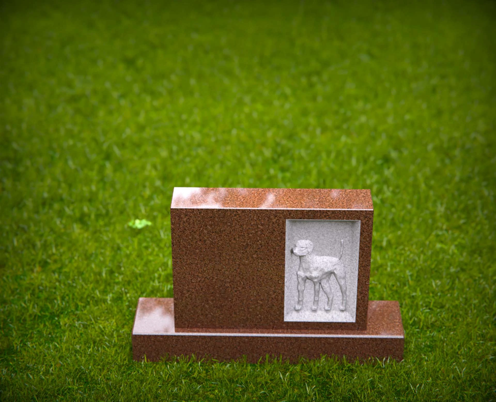 1461 - Lápida conmemorativa de granito marrón para perro con relieve grabado