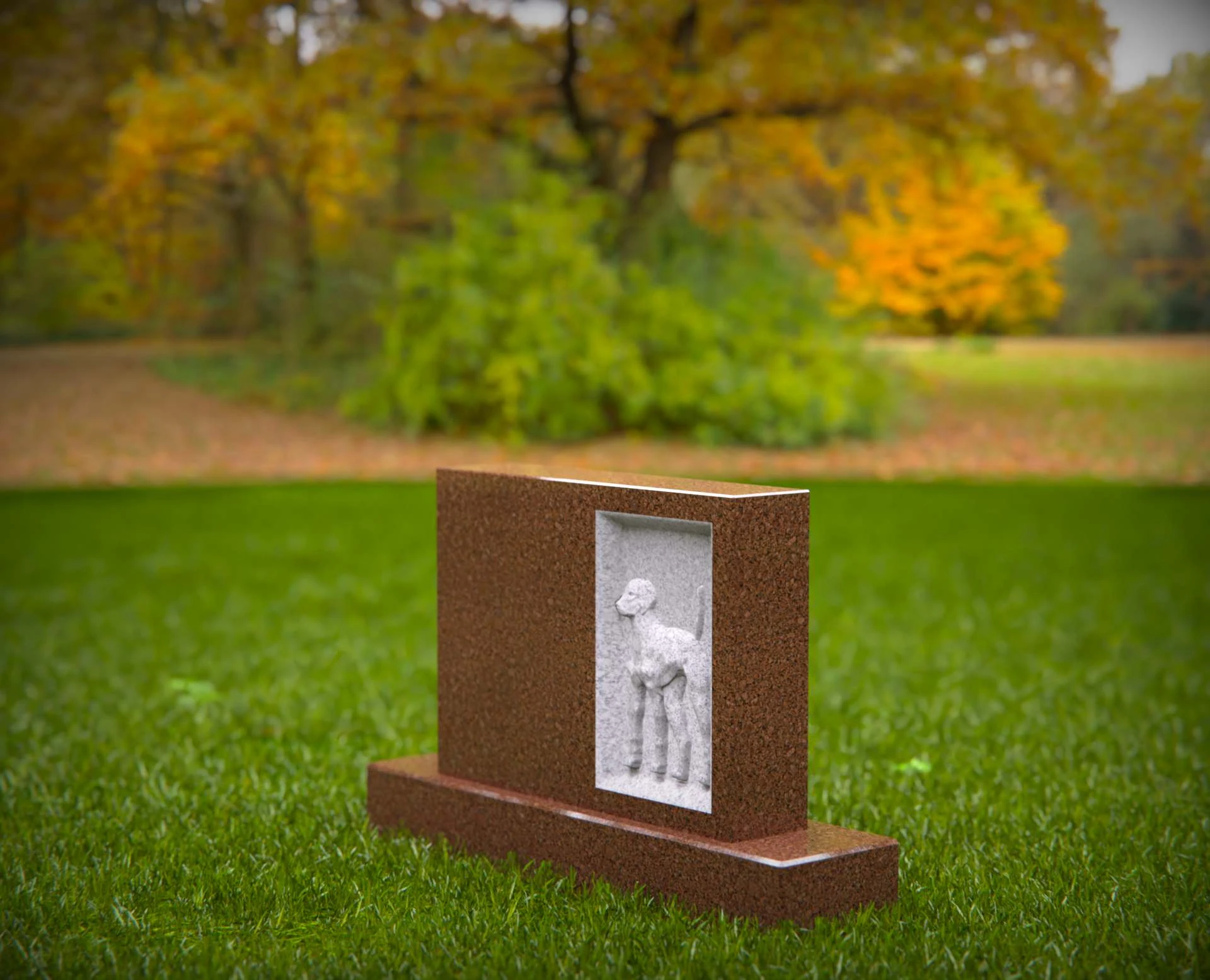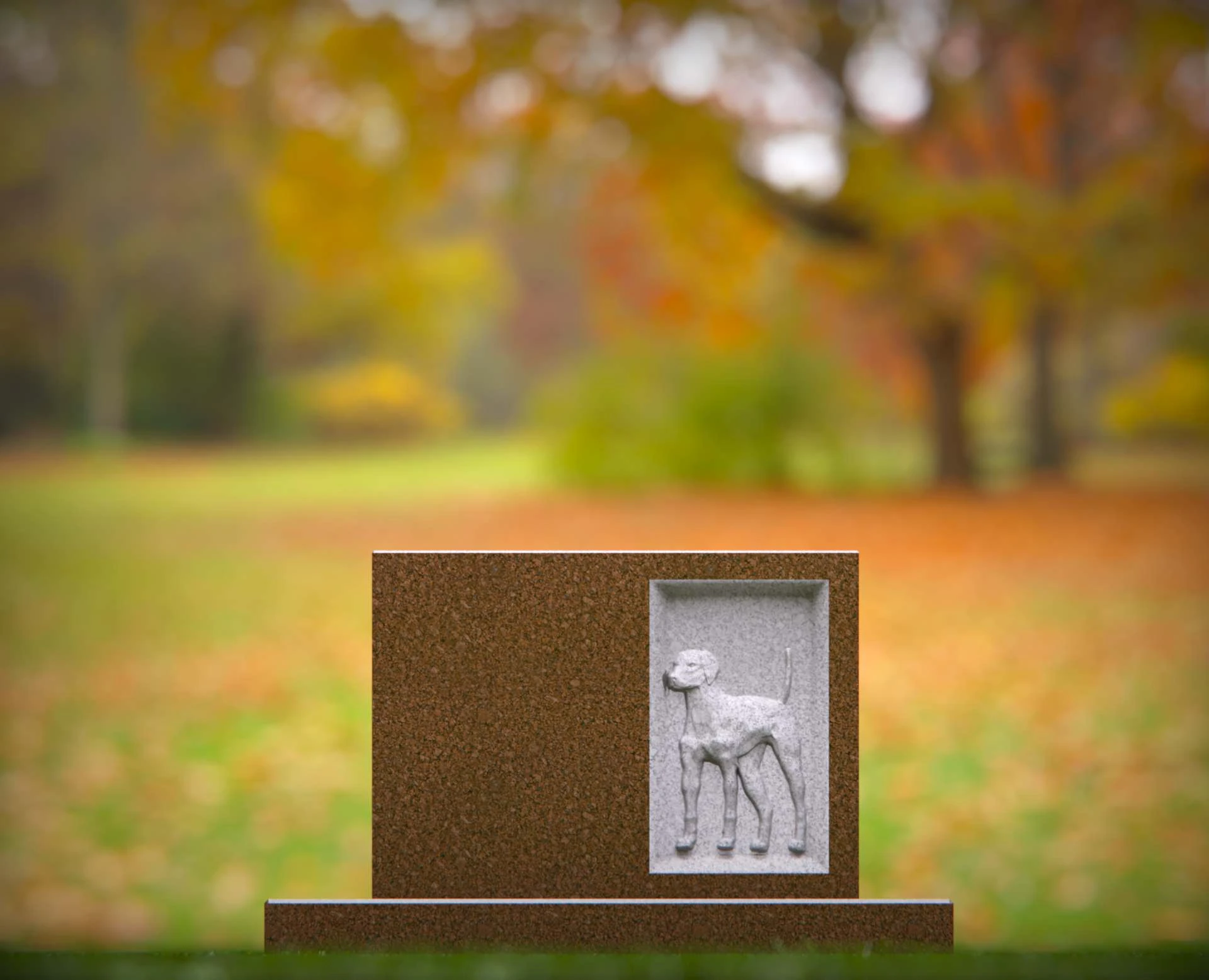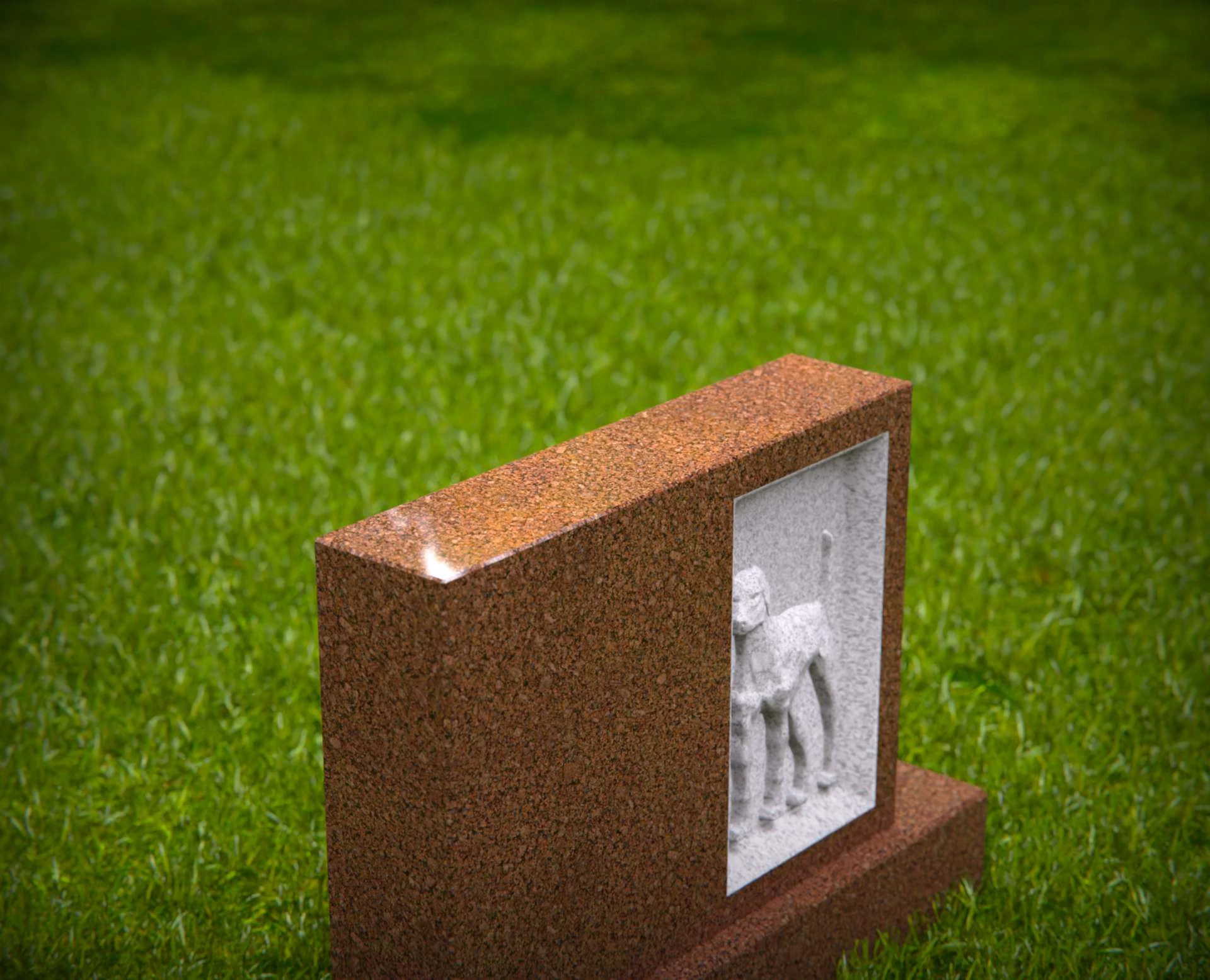 1461 - Lápida conmemorativa de granito marrón para perro con relieve grabado