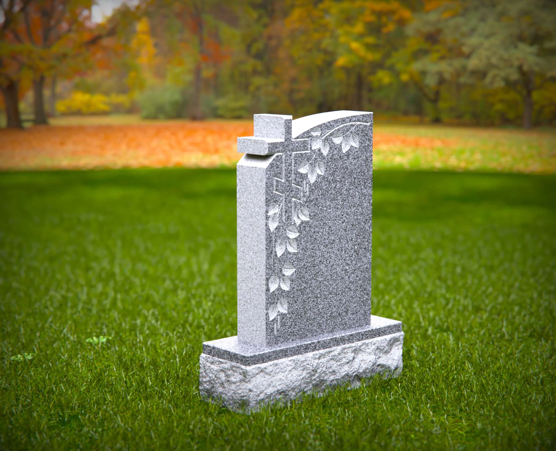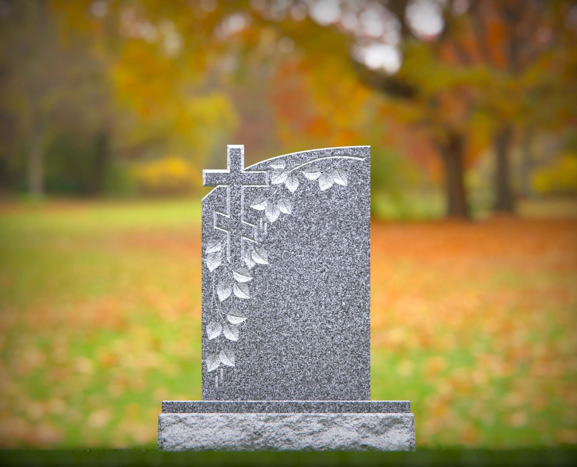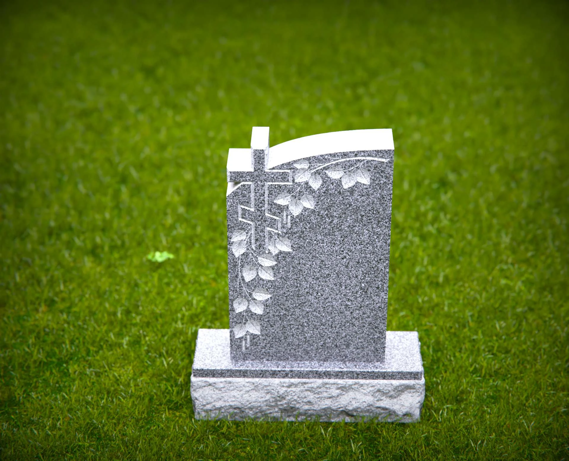 Esta lápida de granito finamente tallada presenta una elegante cruz adornada con hojas de vid delicadamente talladas, que simbolizan la fe, el recuerdo y la vida eterna. Su parte superior suavemente curvada y su superficie pulida proporcionan un espacio digno para inscripciones personalizadas, convirtiéndola en un tributo atemporal para un ser querido muy apreciado.