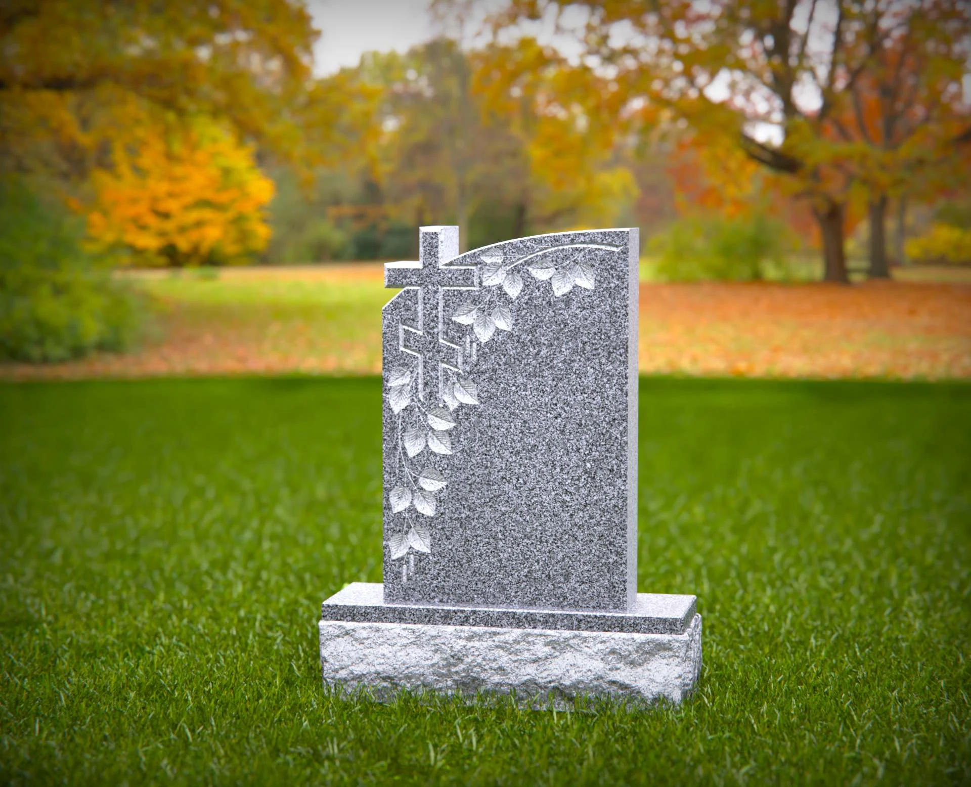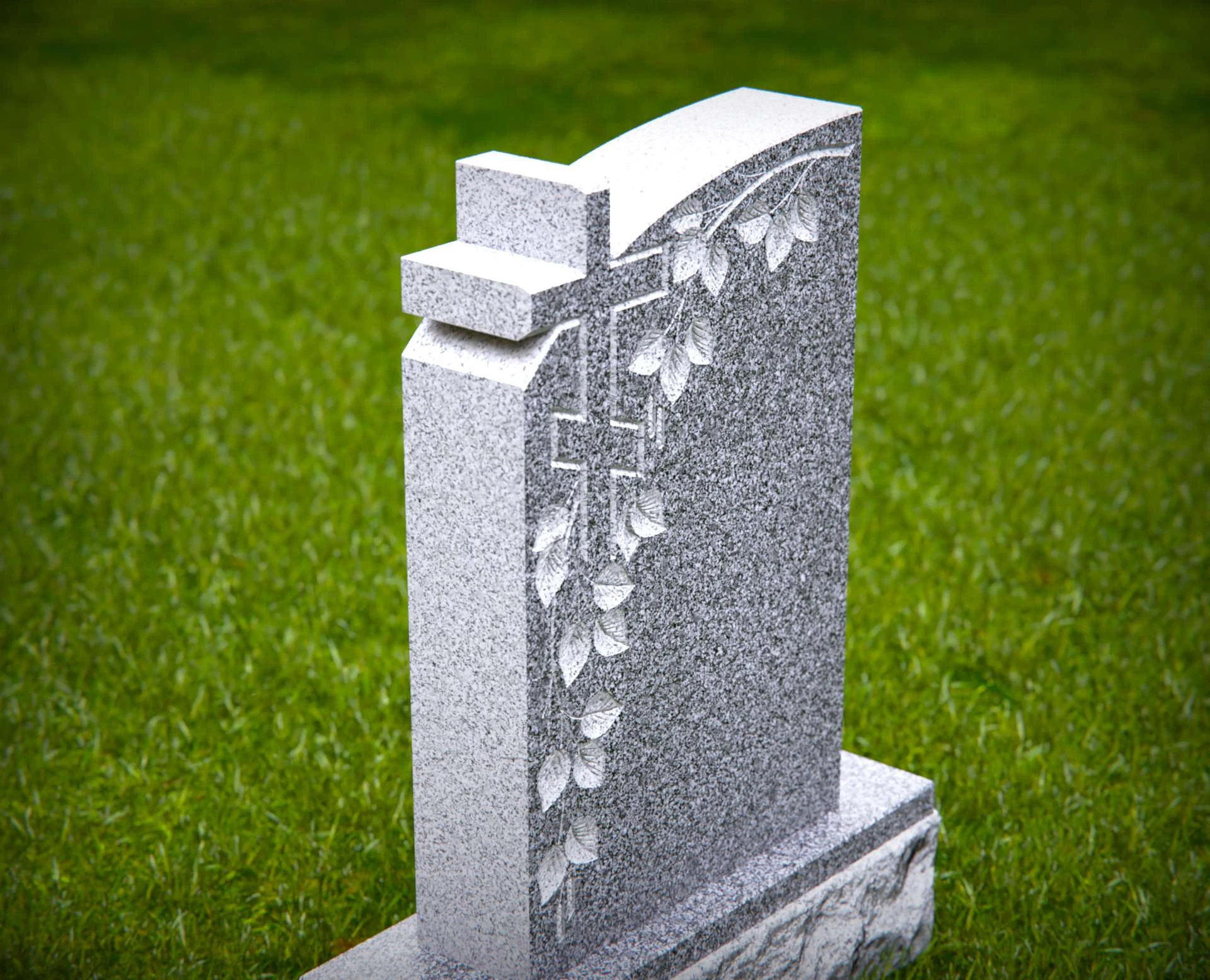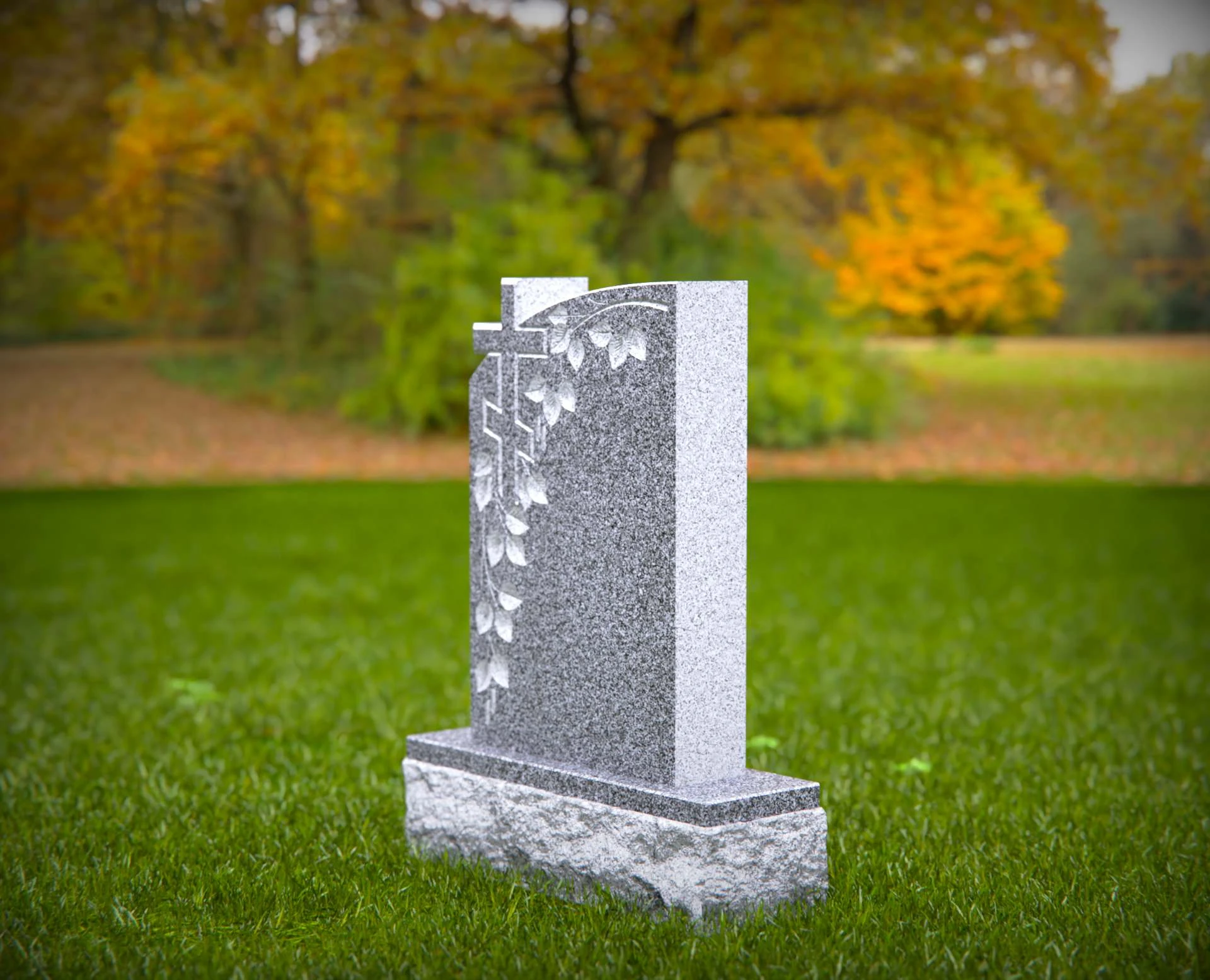 Esta lápida de granito finamente tallada presenta una elegante cruz adornada con hojas de vid delicadamente talladas, que simbolizan la fe, el recuerdo y la vida eterna. Su parte superior suavemente curvada y su superficie pulida proporcionan un espacio digno para inscripciones personalizadas, convirtiéndola en un tributo atemporal para un ser querido muy apreciado.