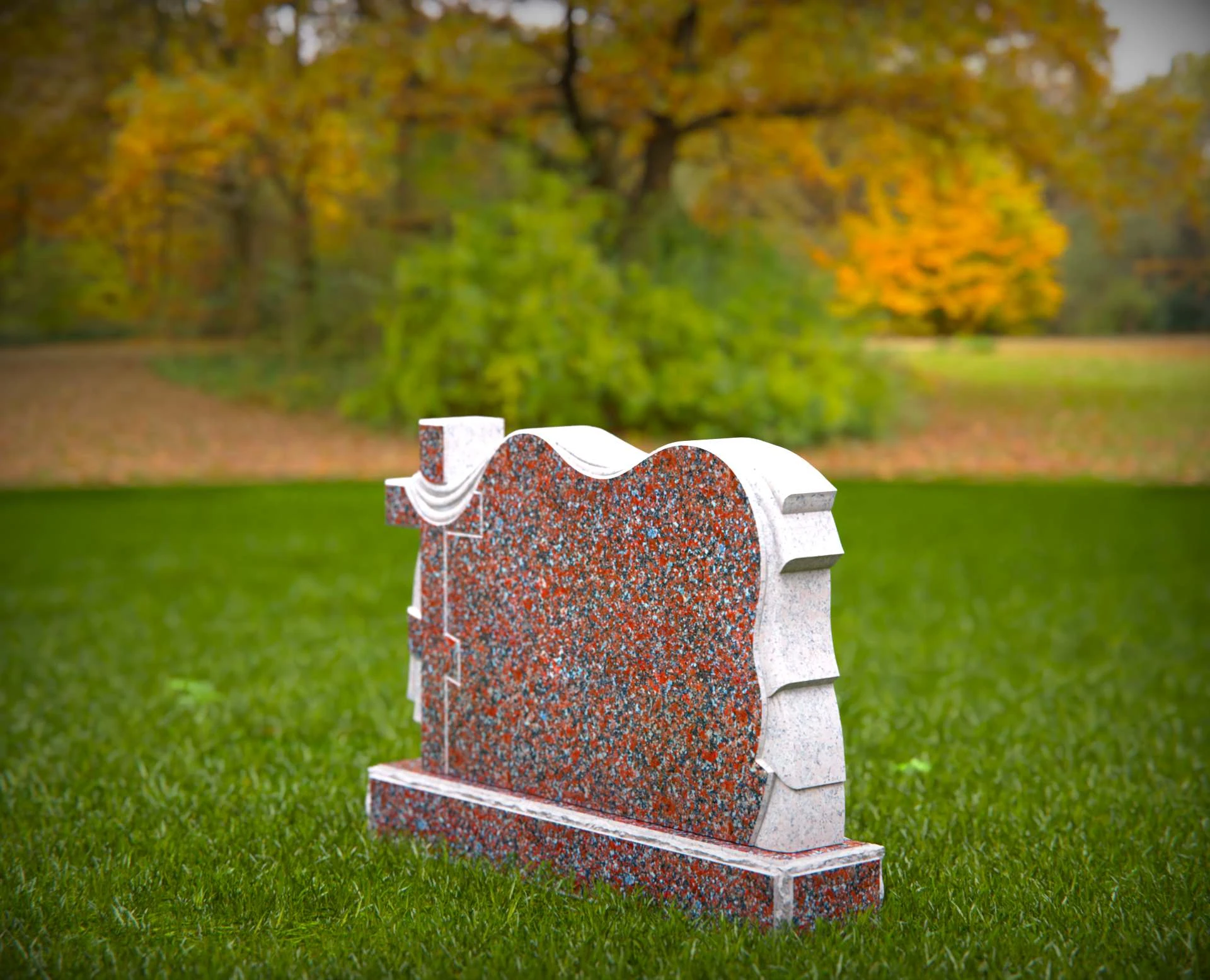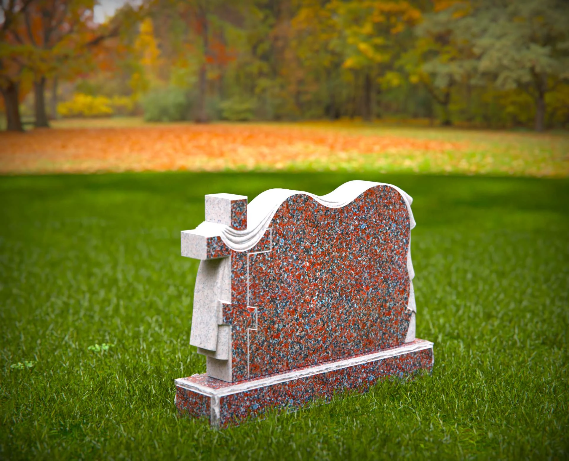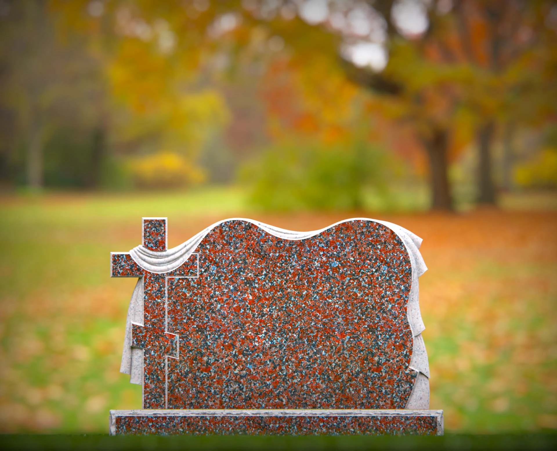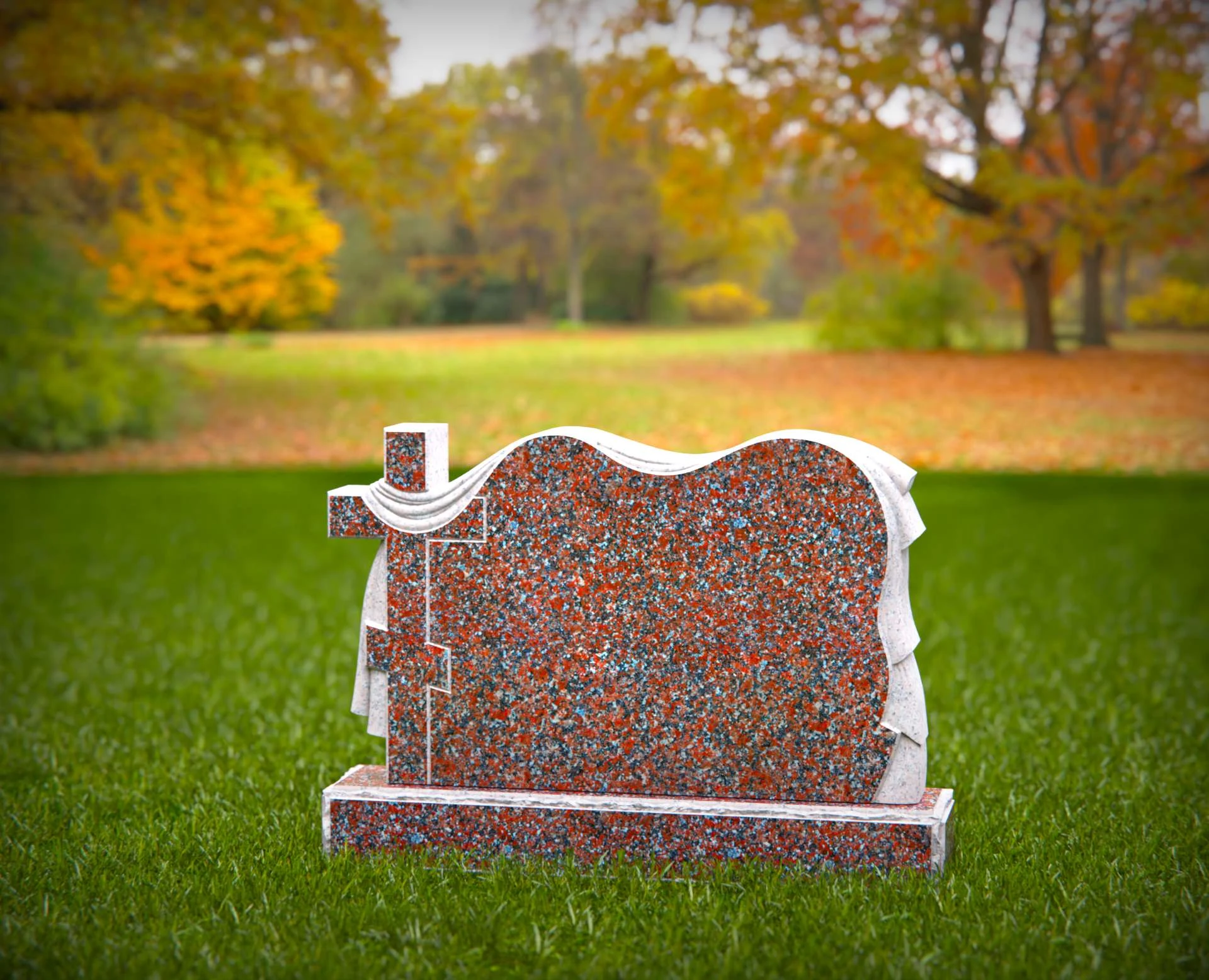 Esta hermosa lápida de granito cuenta con una parte superior elegantemente curvada, complementada por un diseño elegantemente drapeado en el lateral. La prominente cruz simboliza fe y devoción, ofreciendo un homenaje atemporal a un ser querido muy apreciado. Experta en pulido y diseñada para la durabilidad, este monumento es una forma significativa de honrar y recordar.