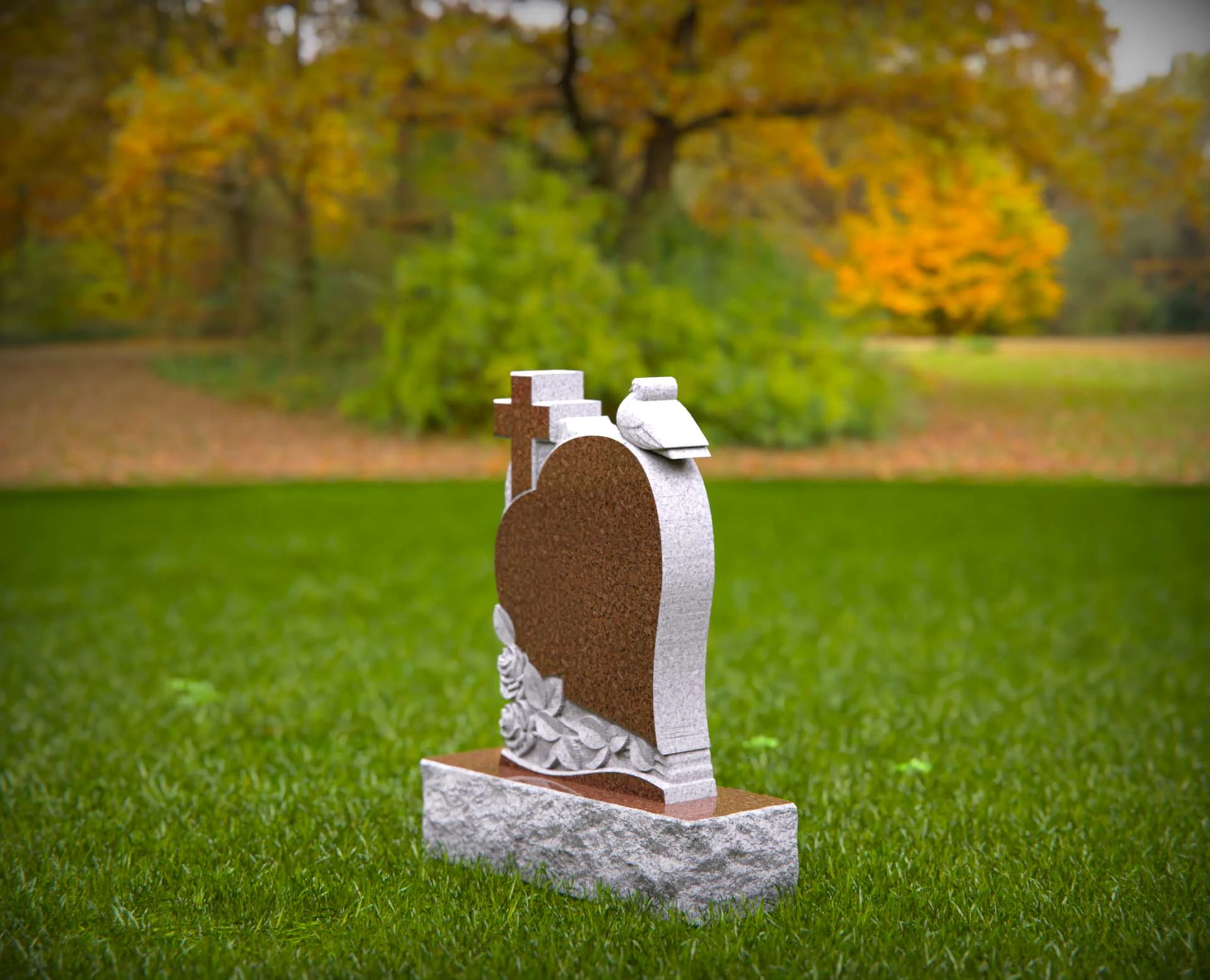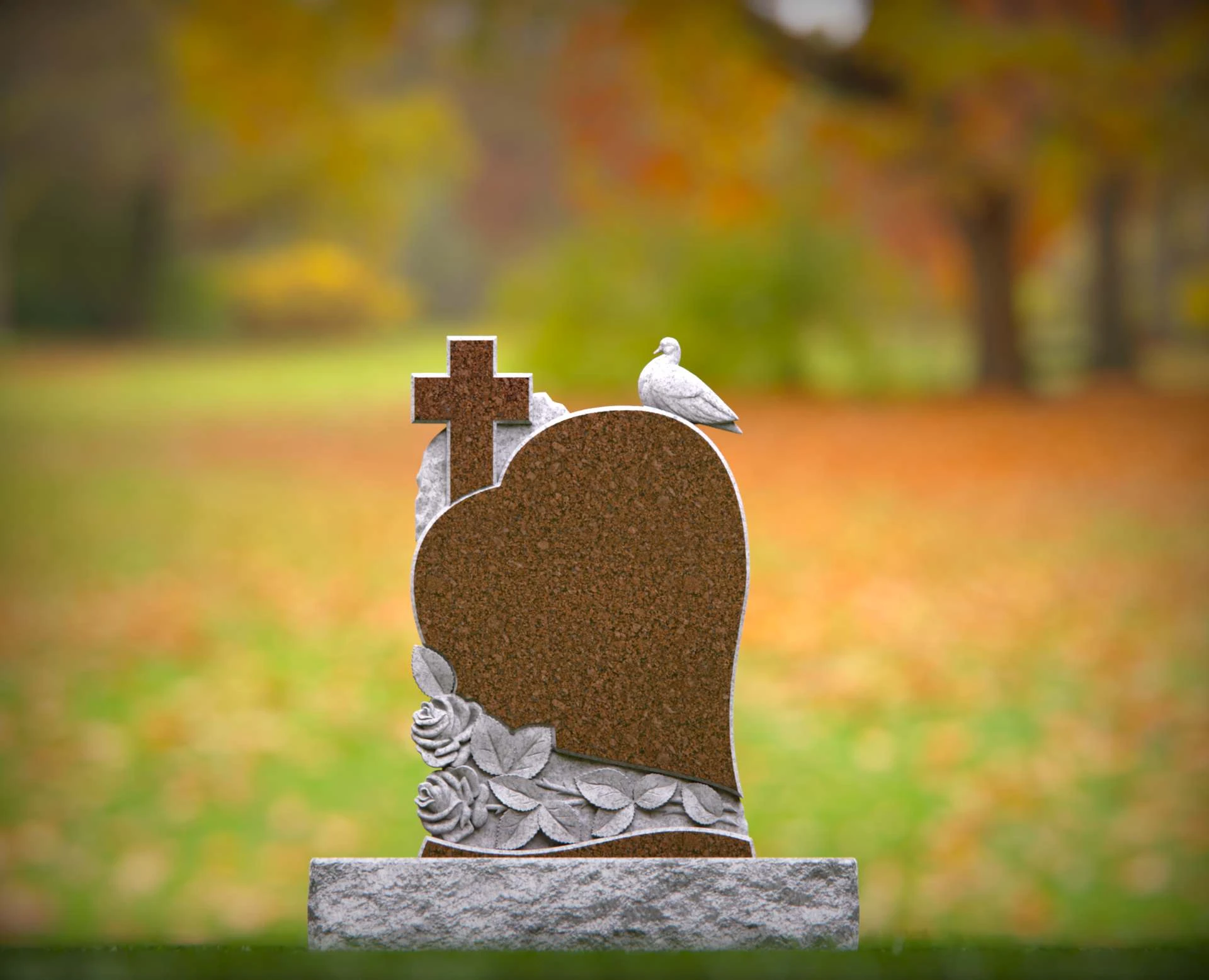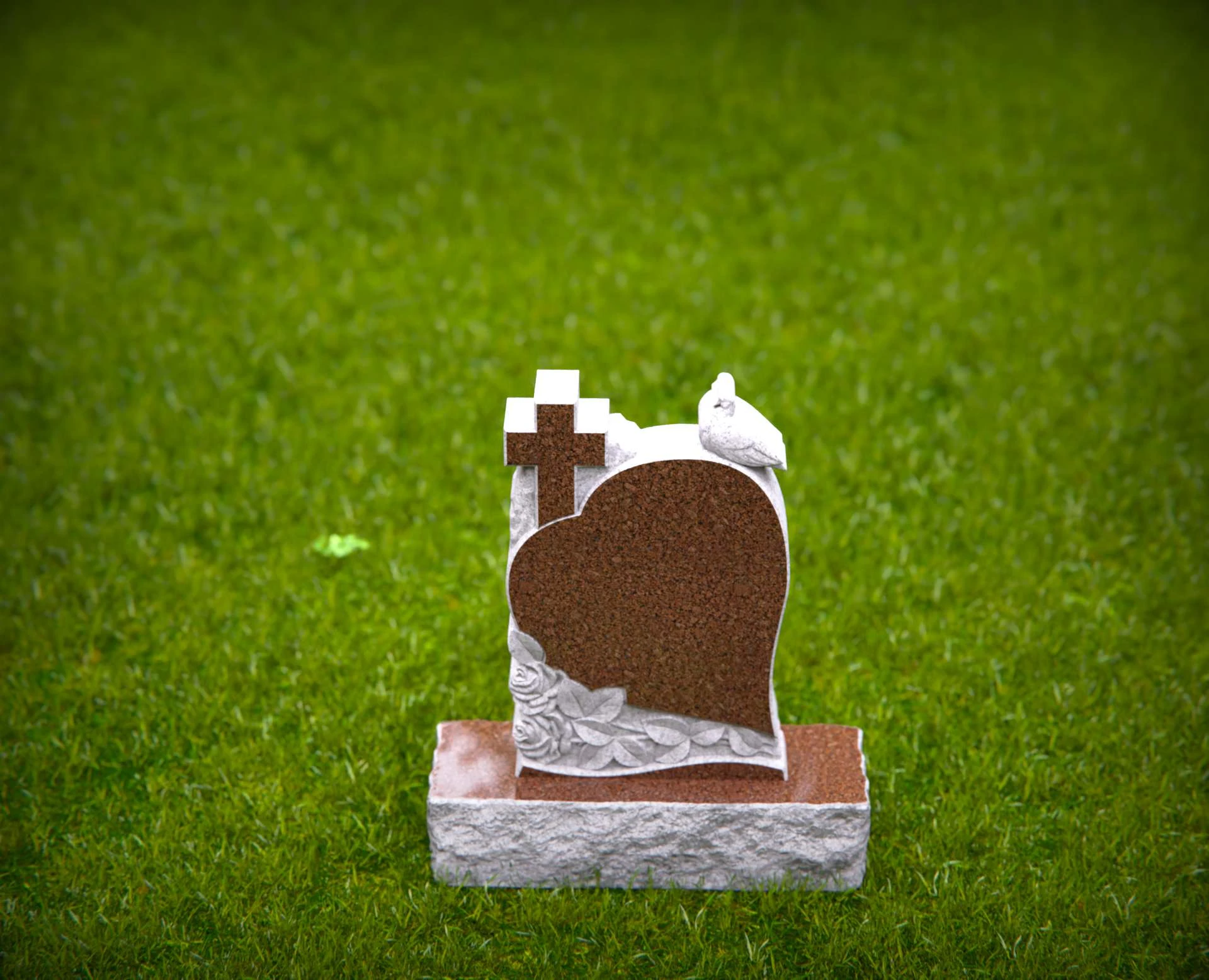 1551 - Lápida de granito en forma de corazón con cruz, paloma y rosas
