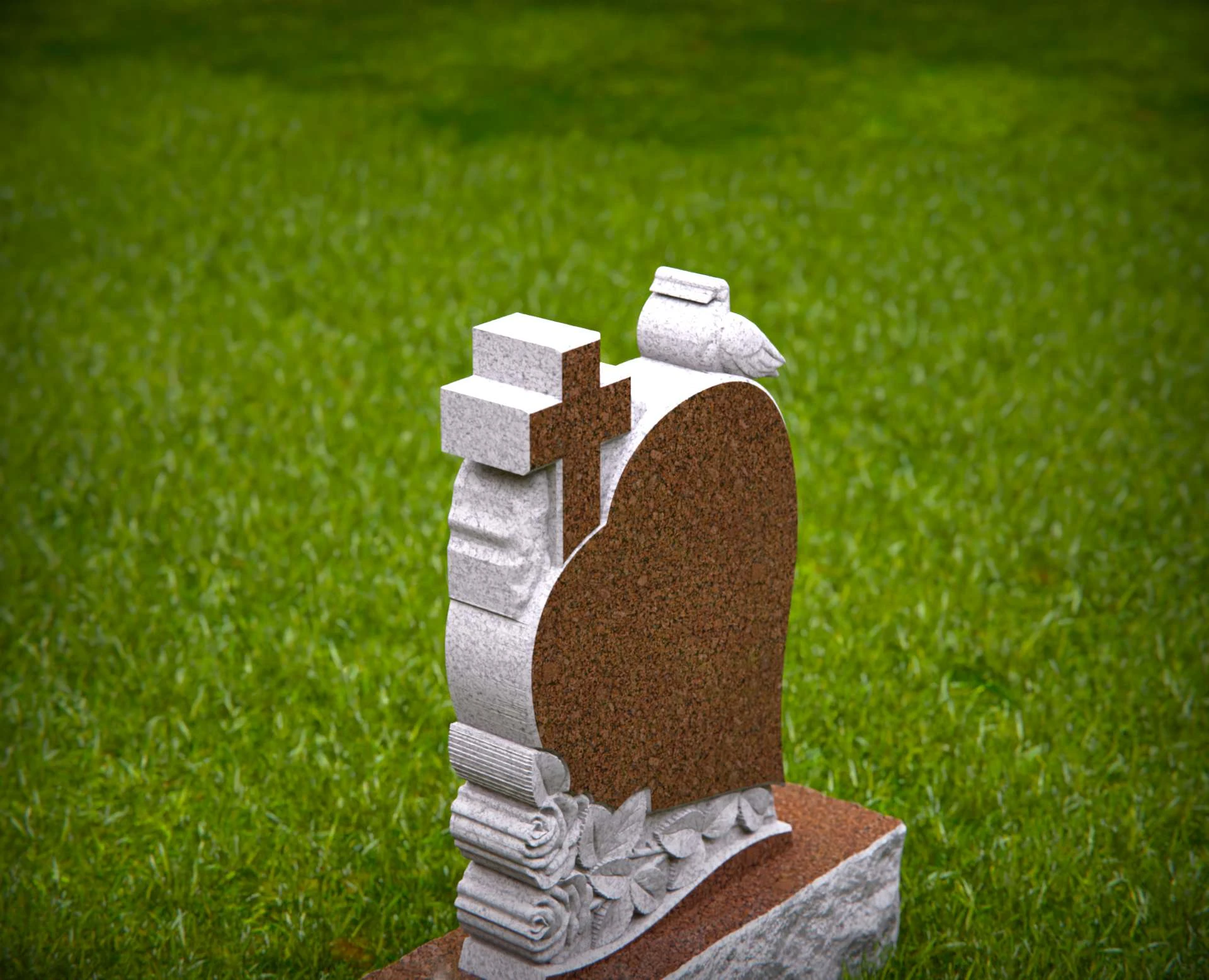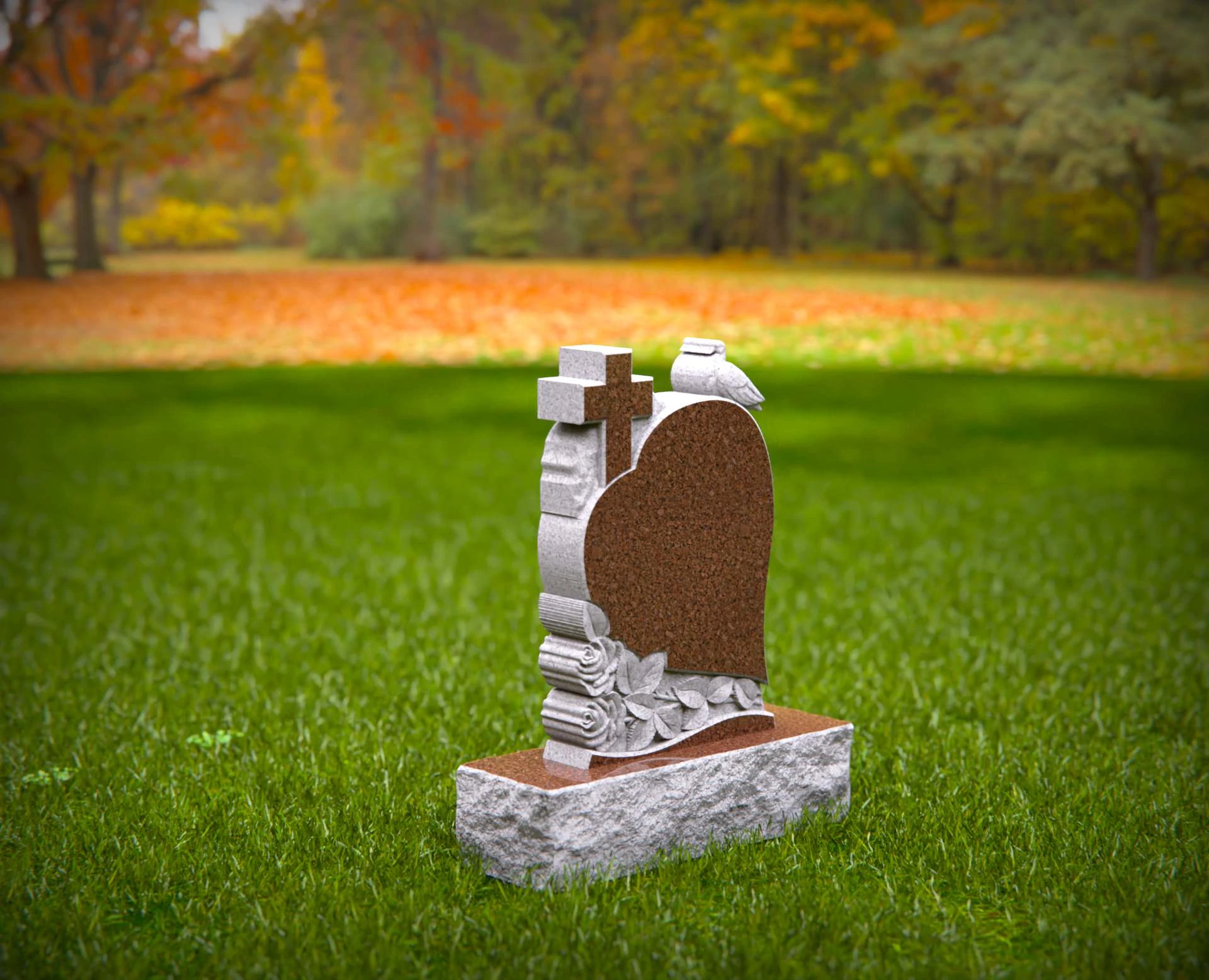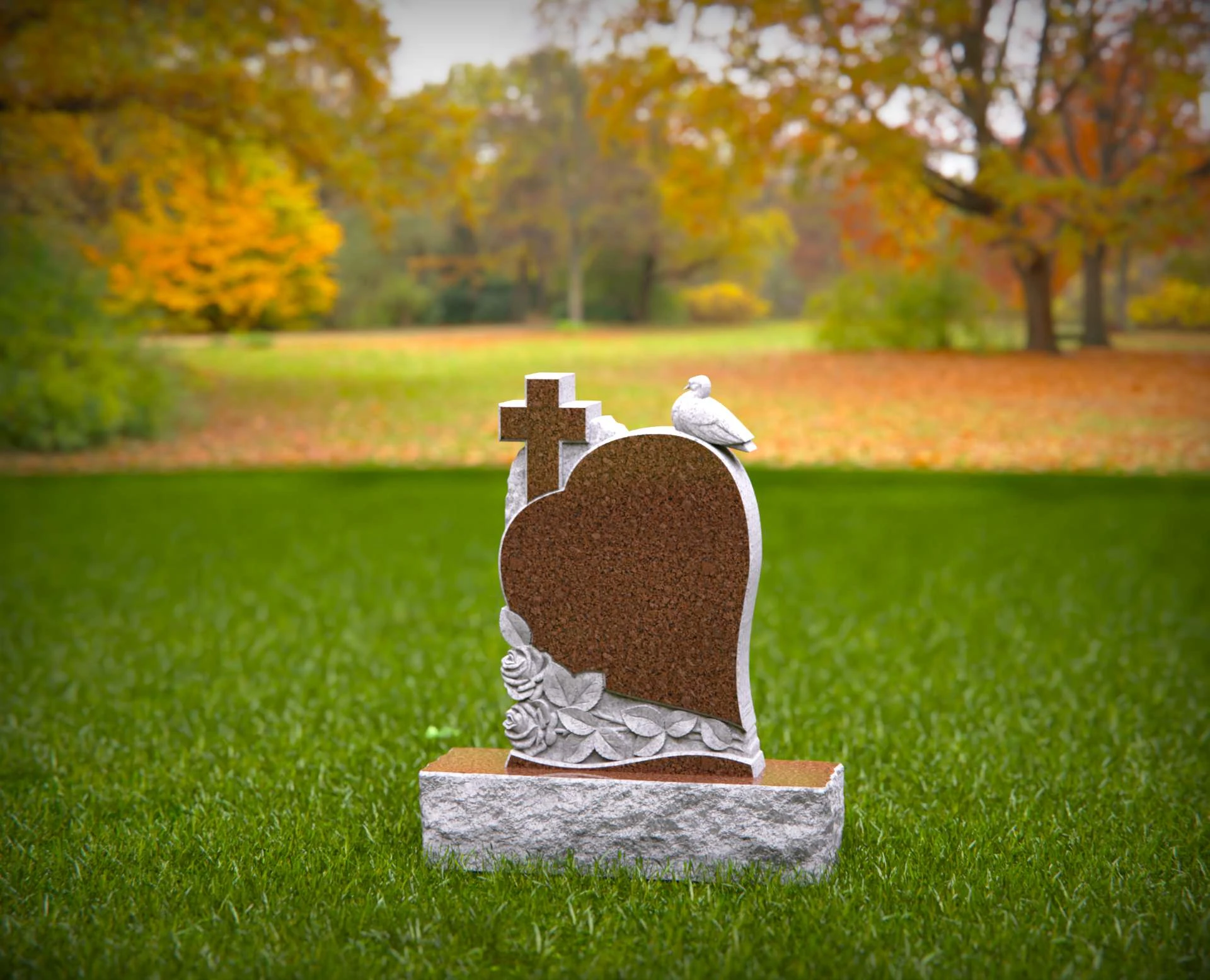 1551 - Lápida de granito en forma de corazón con cruz, paloma y rosas