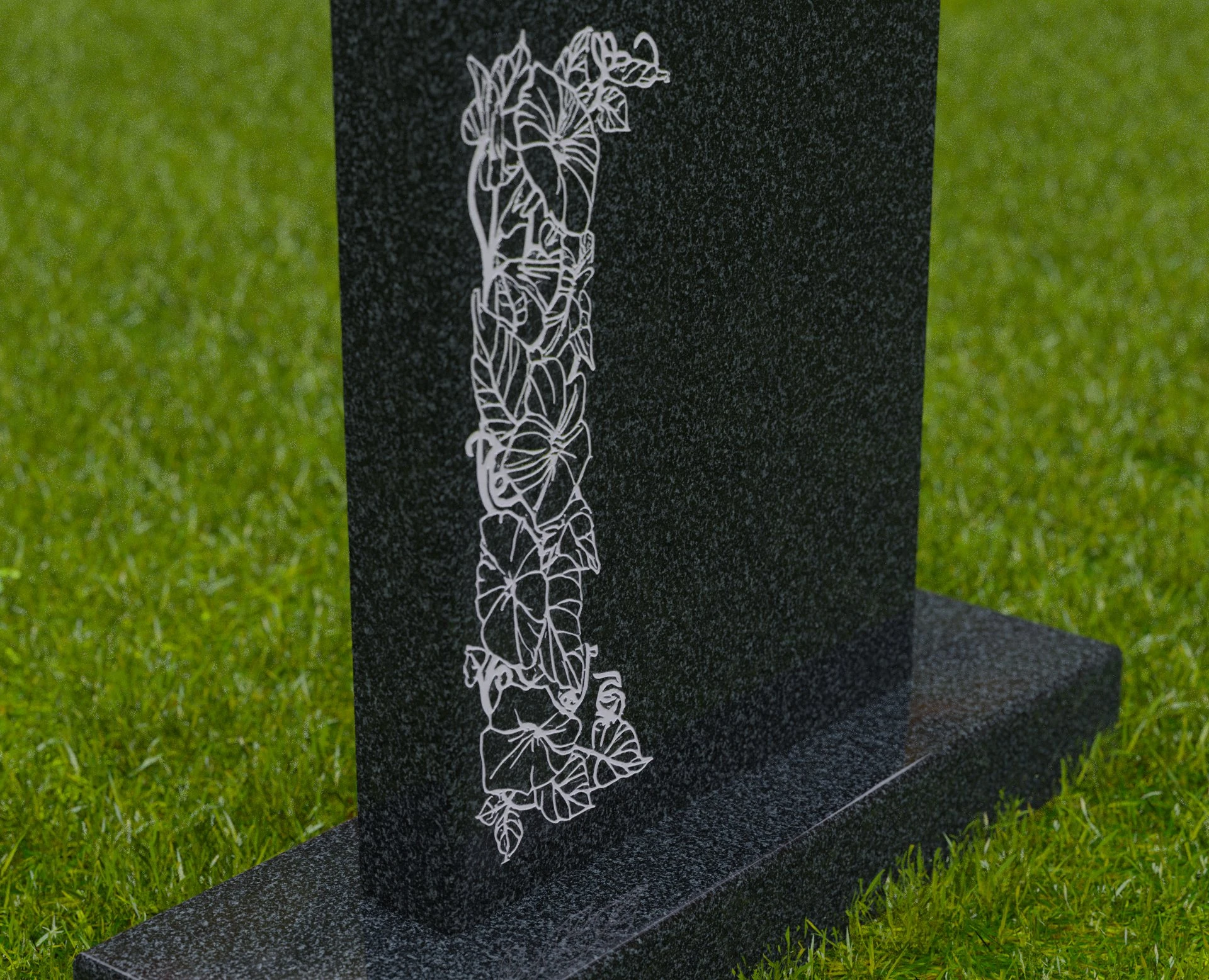 1679 - Lápida Conmemorativa Moderna Asimétrica con Grabado Floral - Un Tributo Único