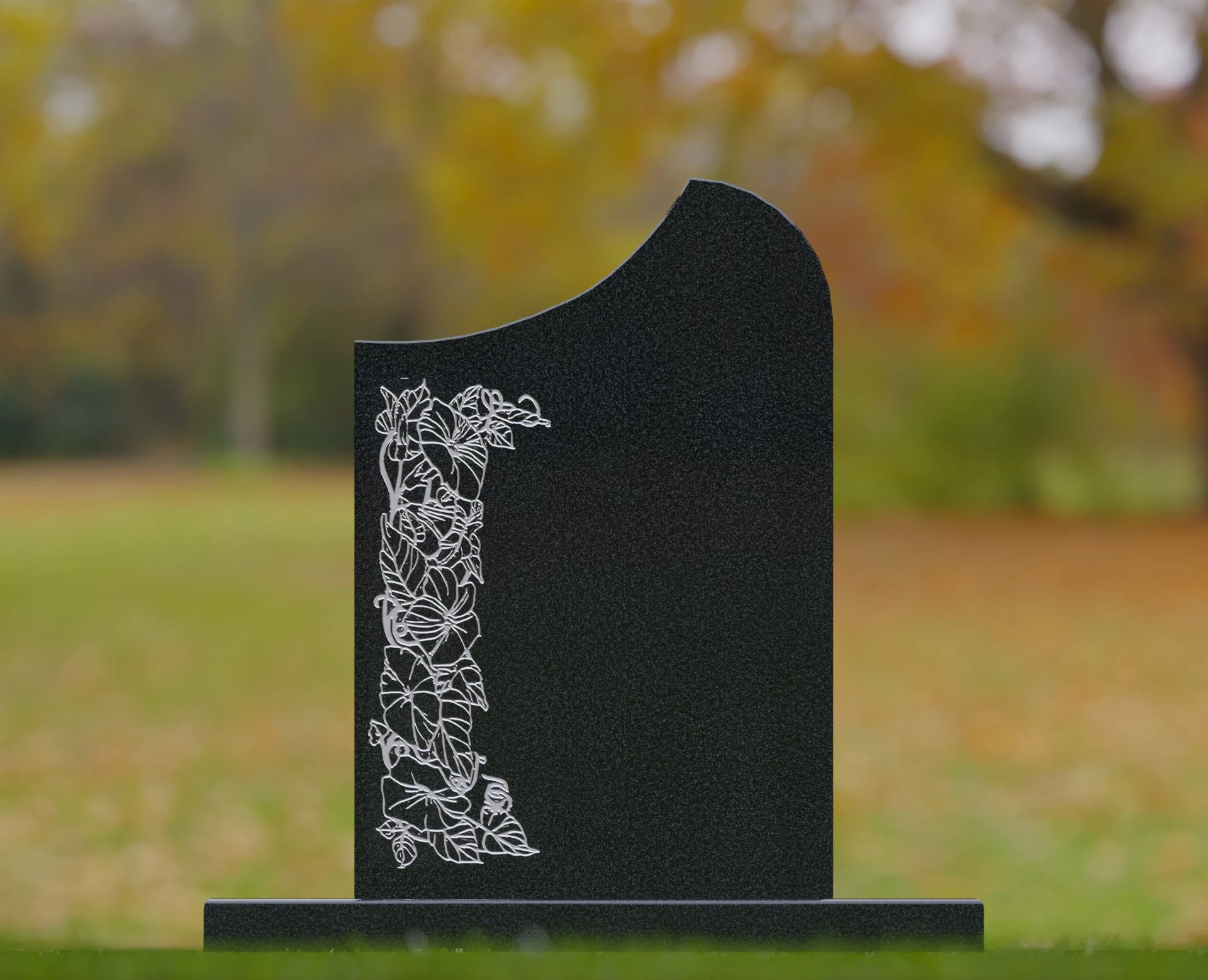 Esta lápida conmemorativa contemporánea y asimétrica presenta un elegante grabado floral, simbolizando la belleza, el recuerdo y el amor eterno. El diseño curvo único agrega un toque moderno a un tributo eterno, lo que la convierte en una opción distintiva para honrar a un ser querido. Fabricado con piedra de alta calidad, ofrece durabilidad y resistencia a los elementos. Ideal para inscripciones personalizadas, este refinado monumento proporciona una forma significativa y artística de preservar recuerdos preciados.