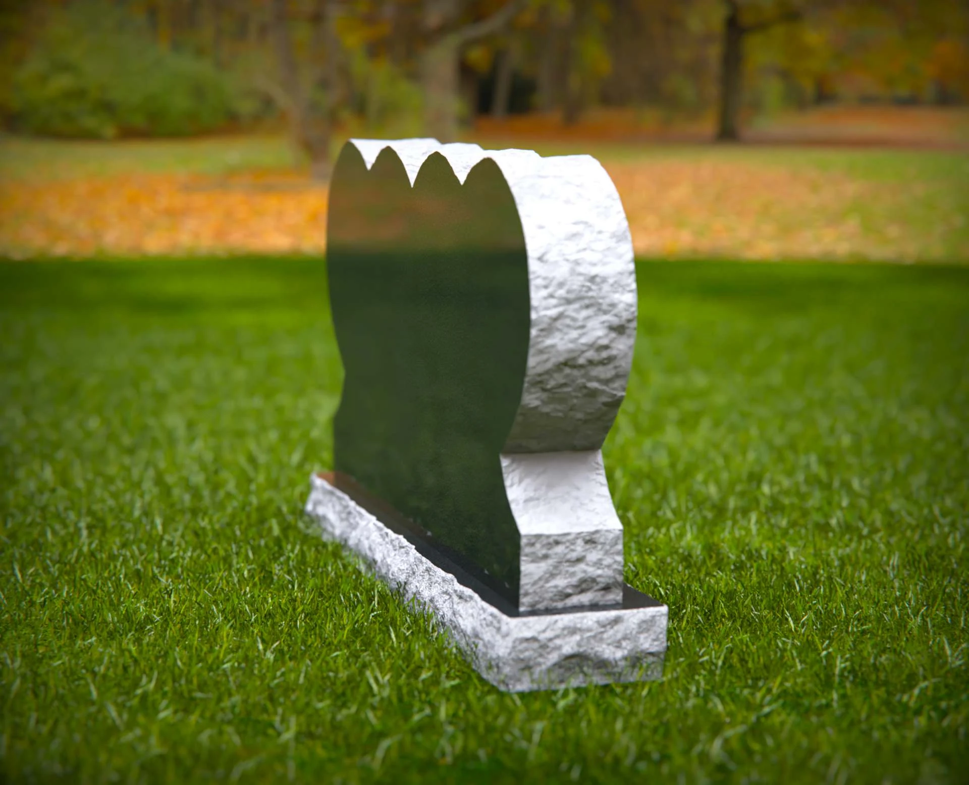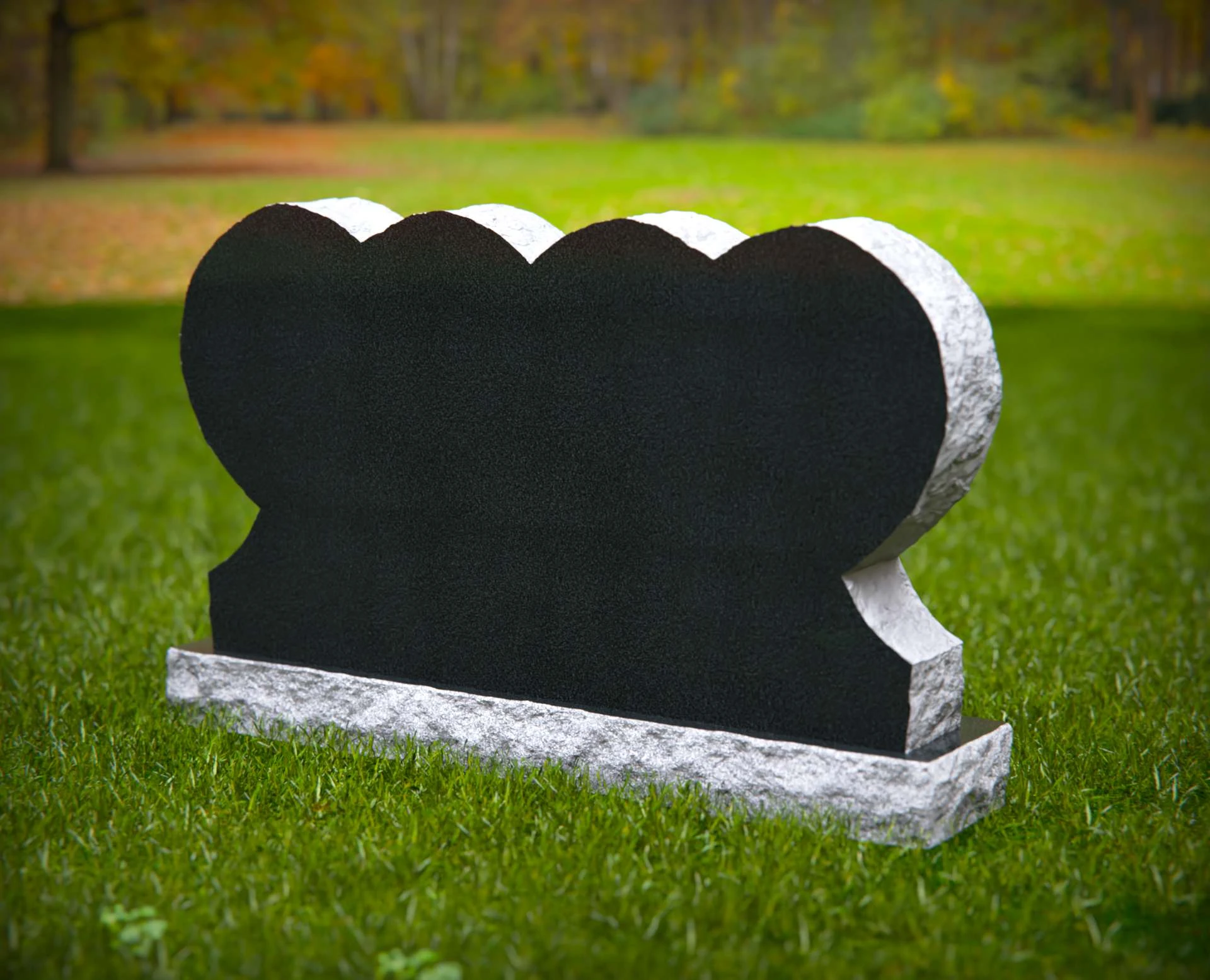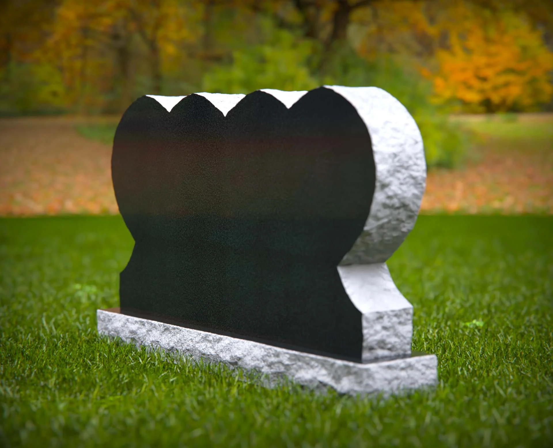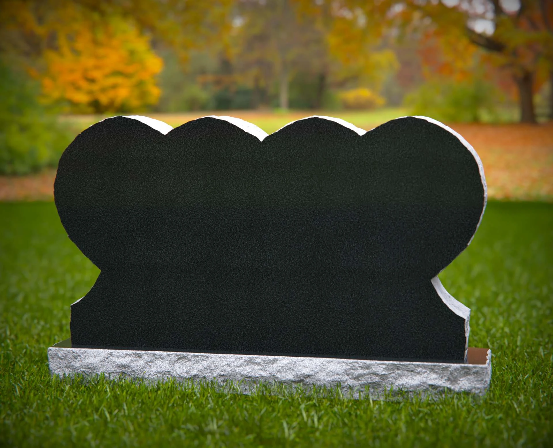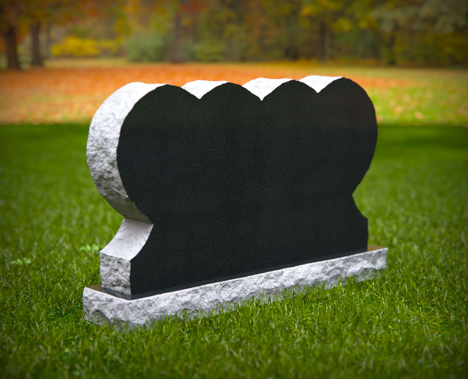 Este monumento presenta un diseño único de triple corazón, que simboliza el profundo amor familiar, la unidad y el recuerdo perdurable. Su forma esculpida descansa sobre una robusta base de piedra, situada contra un tranquilo fondo natural lleno de suaves tonos otoñales. Ideal para contenido centrado en monumentos conmemorativos familiares, diseños simbólicos de lápidas, homenajes emotivos y monumentos de cementerio personalizados.