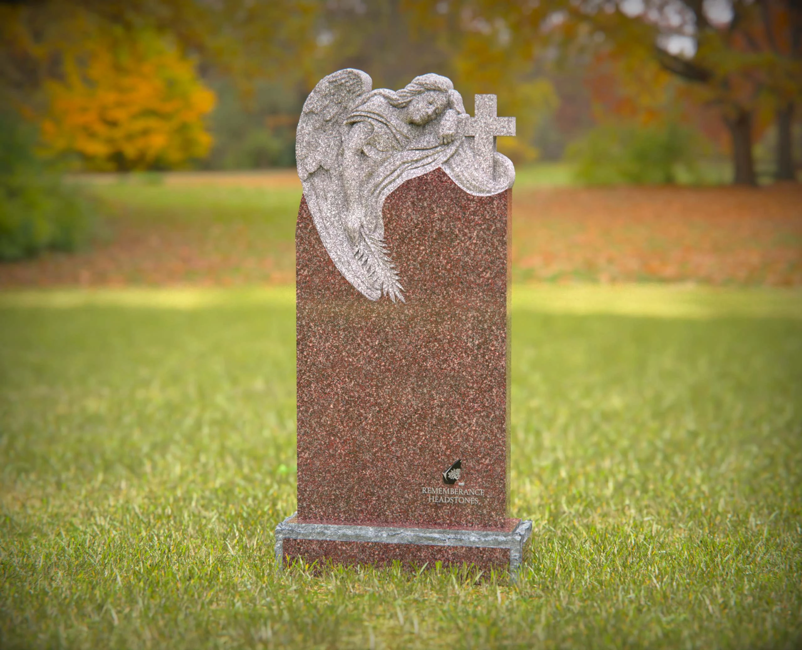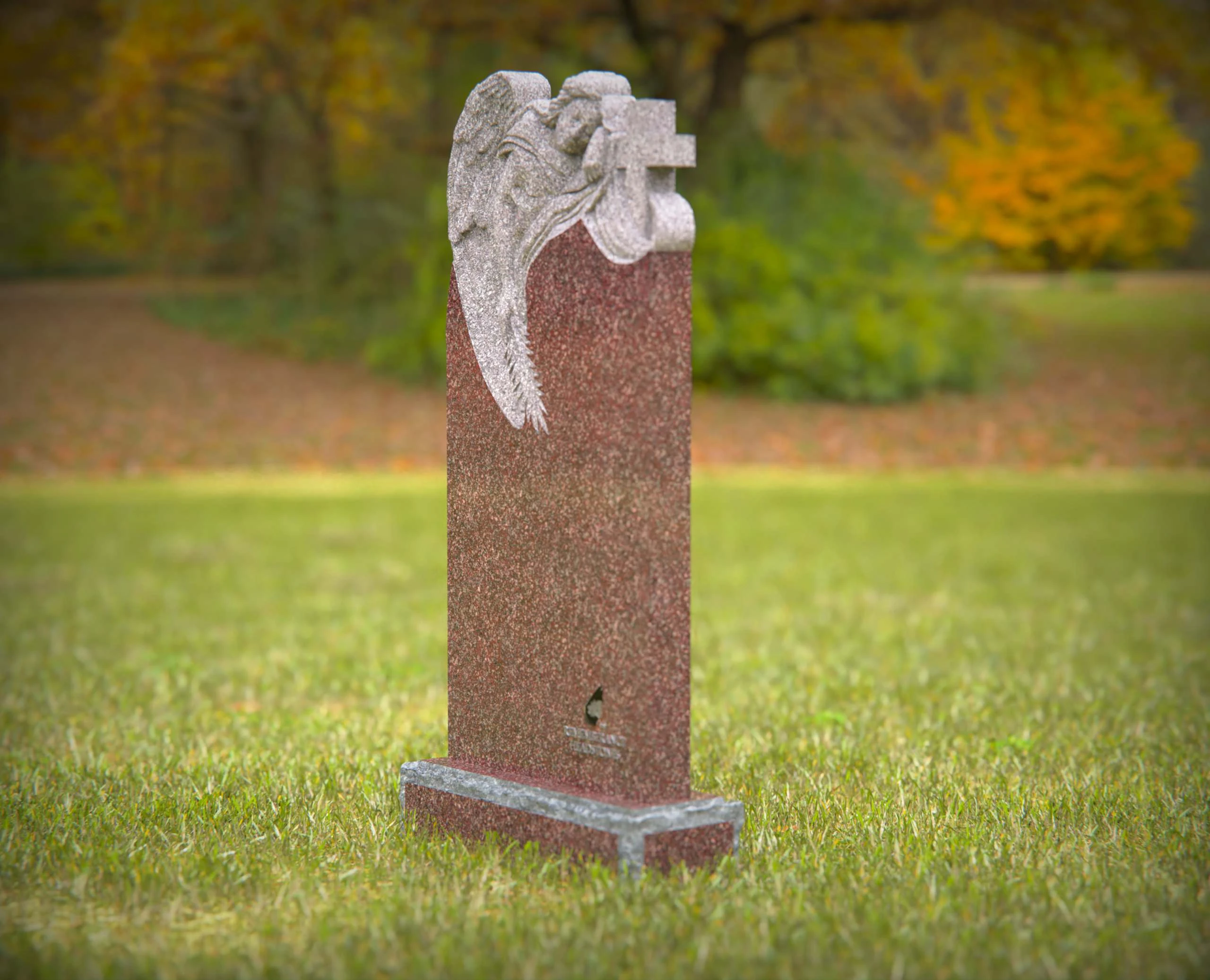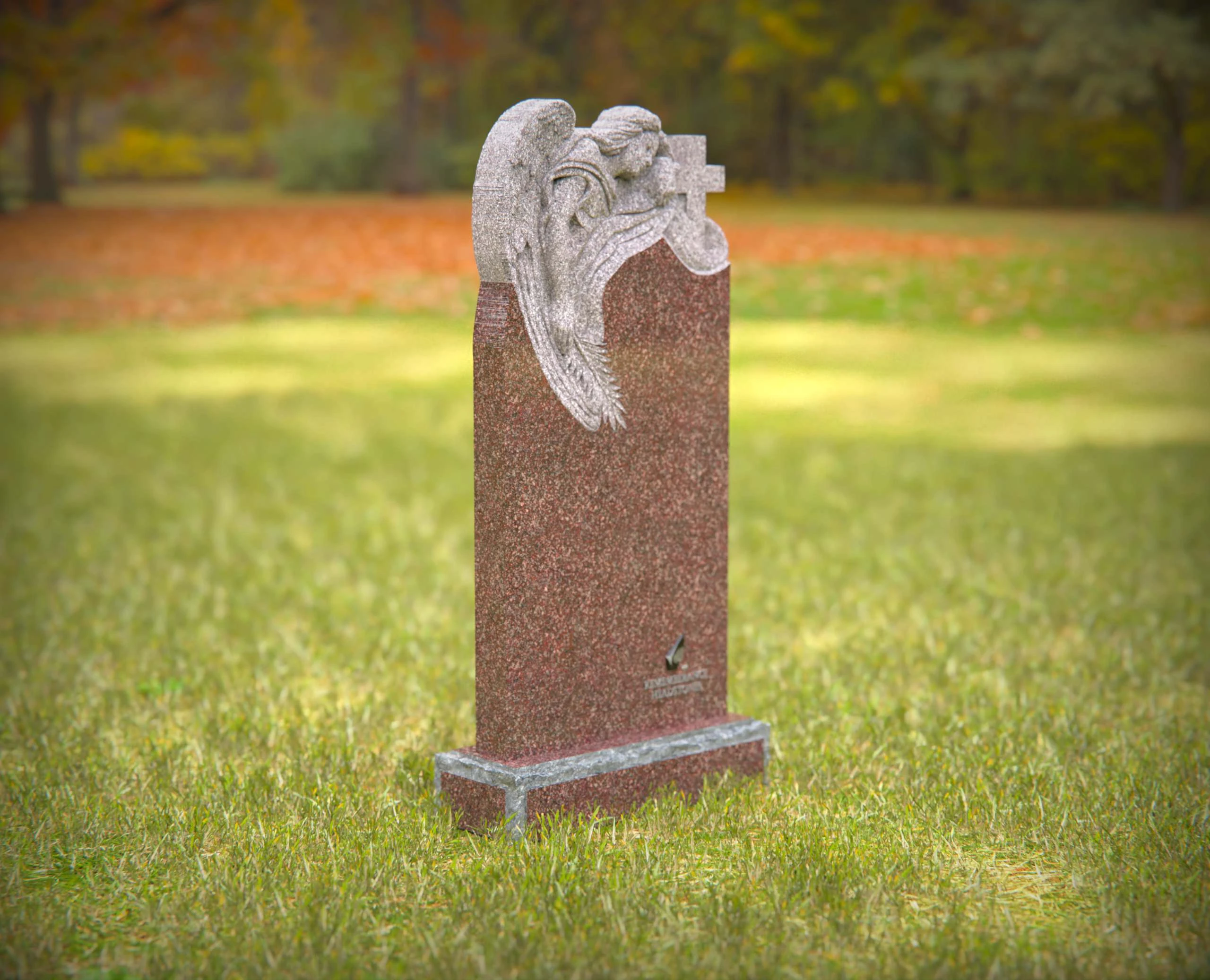 1238 - Angelic Design Granite Headstone with Cross for Memorials
