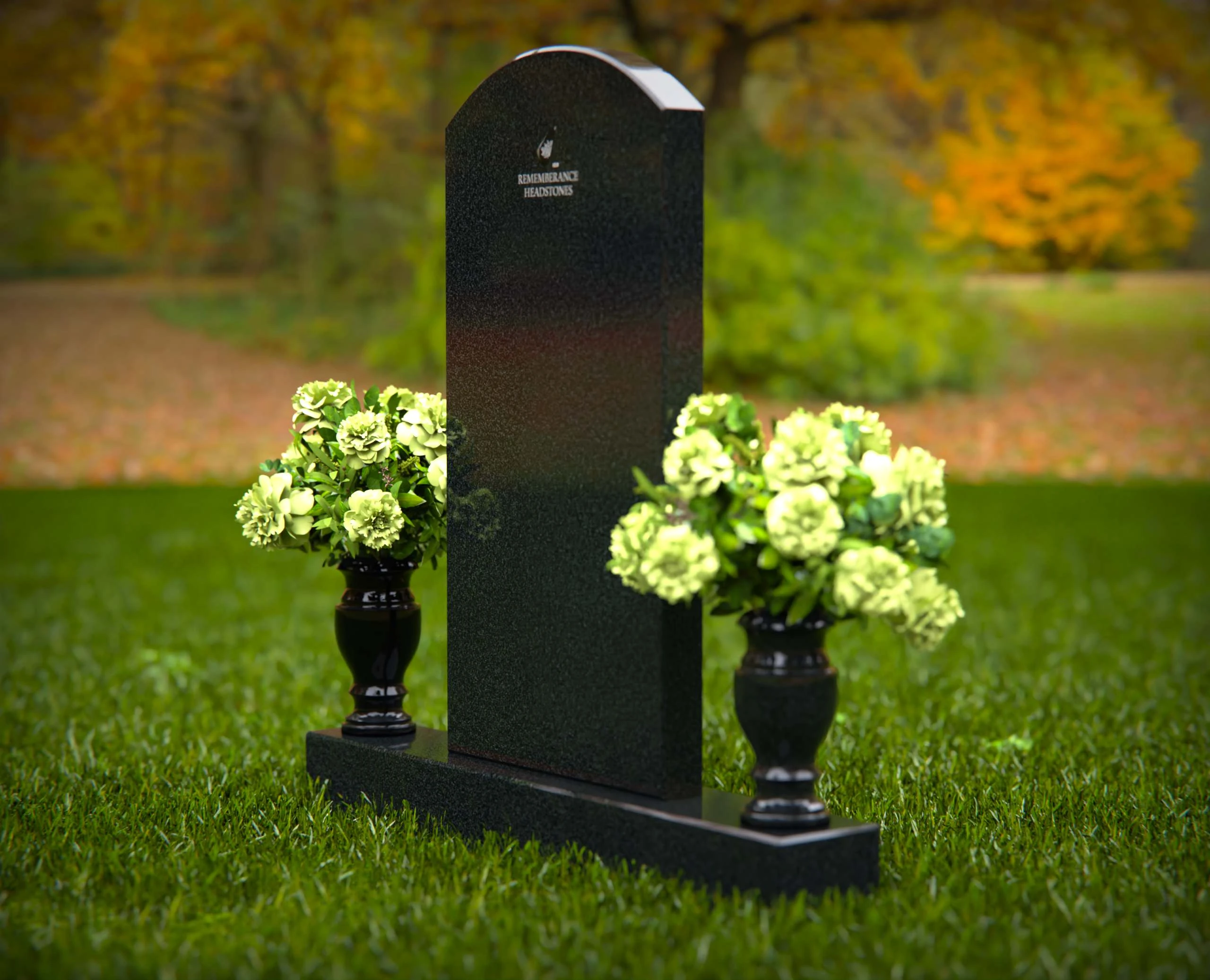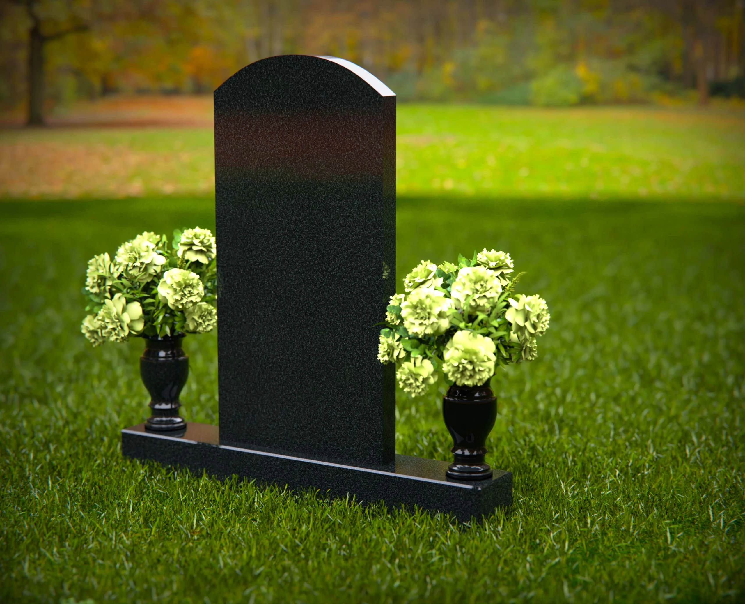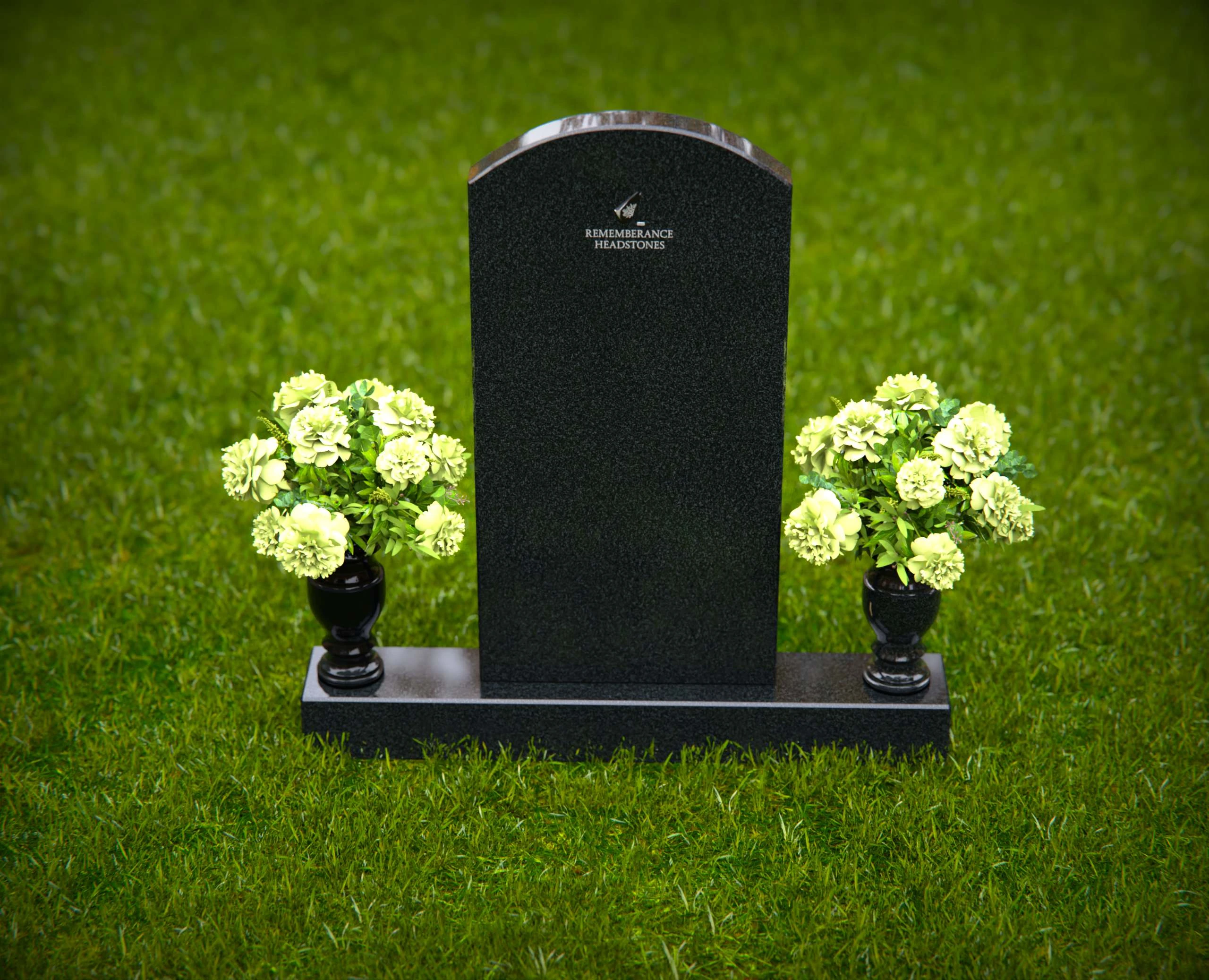 This elegant granite headstone is designed to honor your loved ones with dignity and grace. Crafted from high-quality, durable granite, it features a smooth, polished finish that exudes sophistication and strength. The headstone is complemented by two matching vases on either side, filled with vibrant floral arrangements to enhance its beauty and create a serene atmosphere. Its classic design ensures a timeless tribute that will stand the test of time, providing a lasting memorial for generations. Perfect for any cemetery or memorial garden, this headstone offers a balance of beauty, durability, and heartfelt remembrance. Customize with your personal inscriptions to make it truly unique.