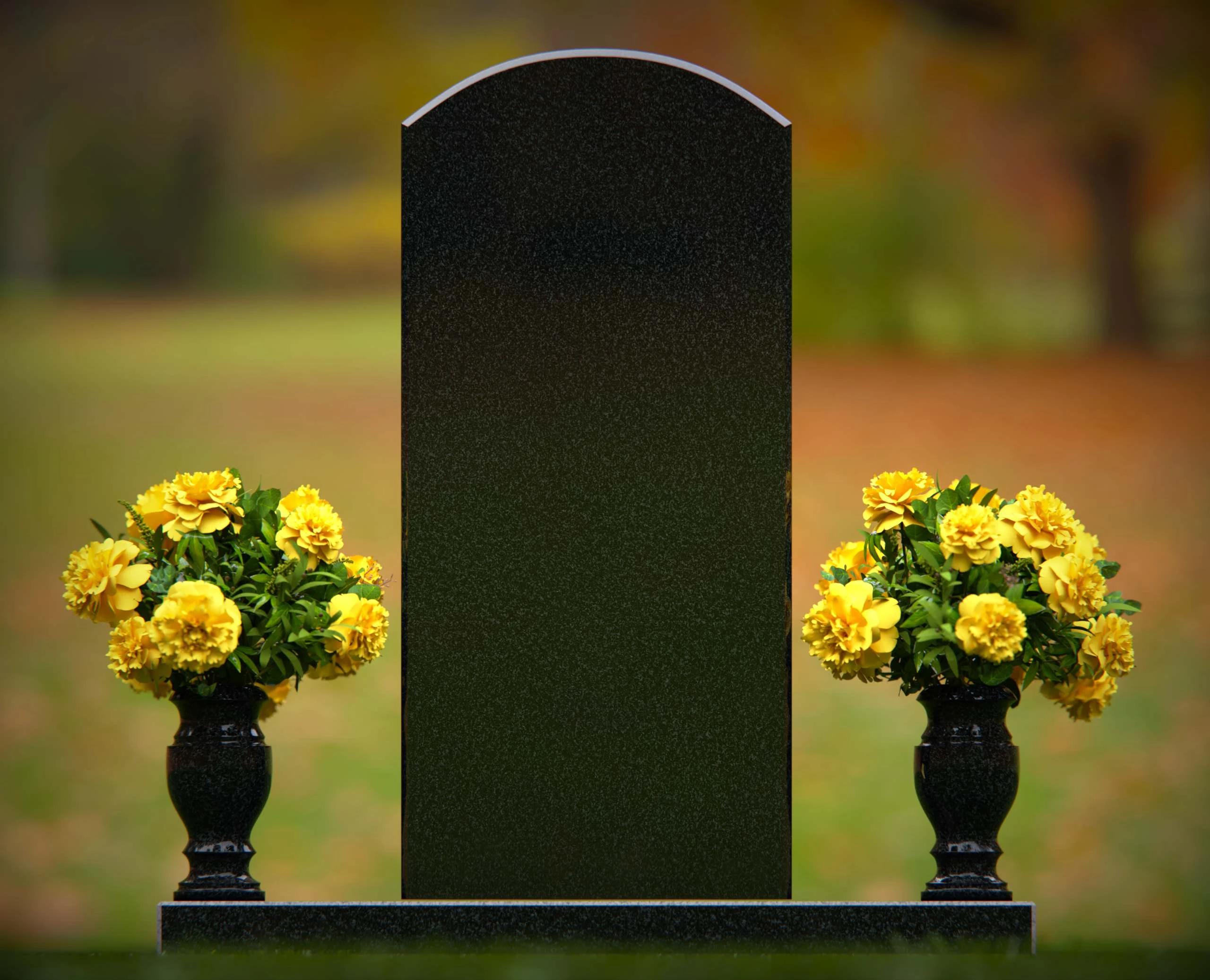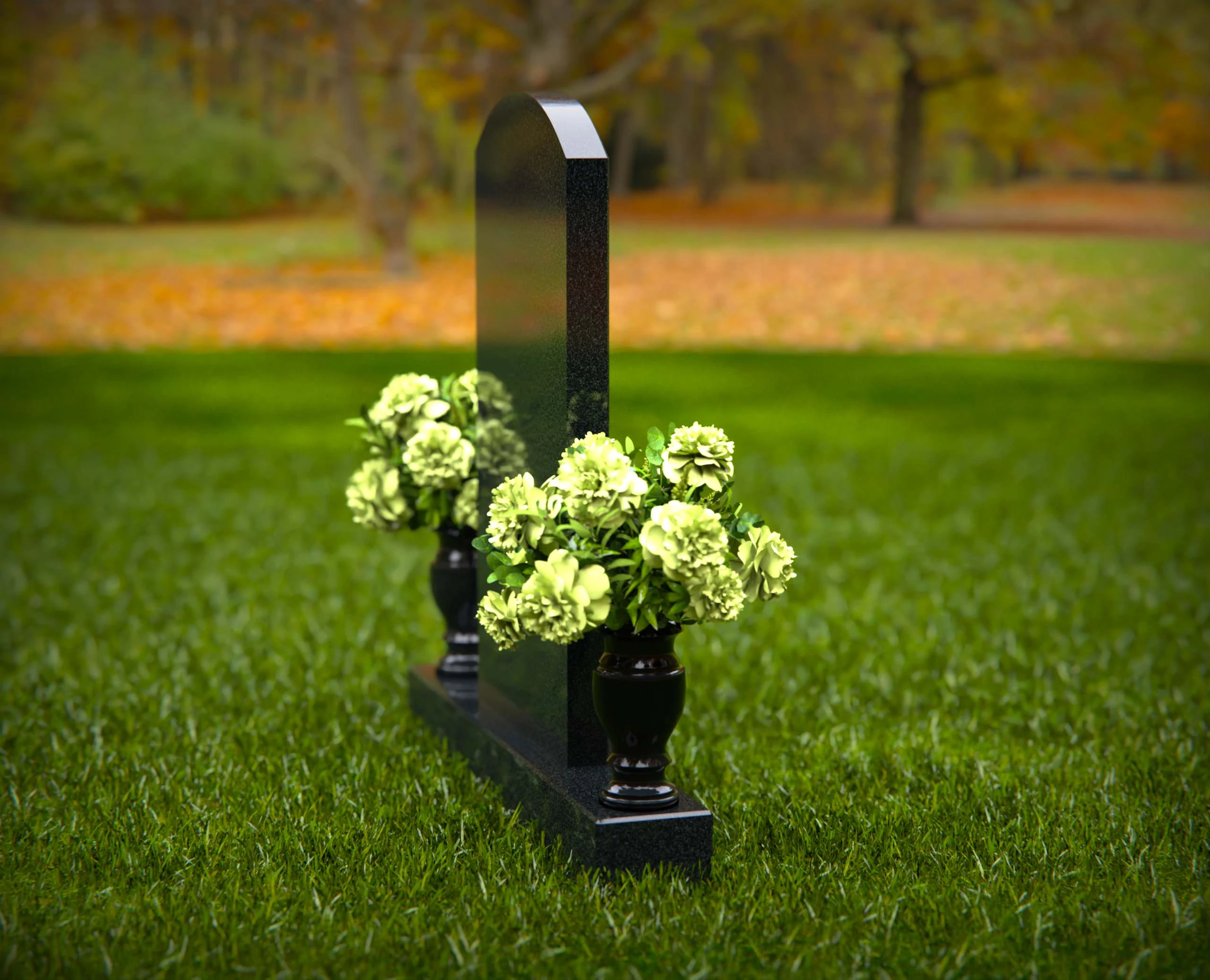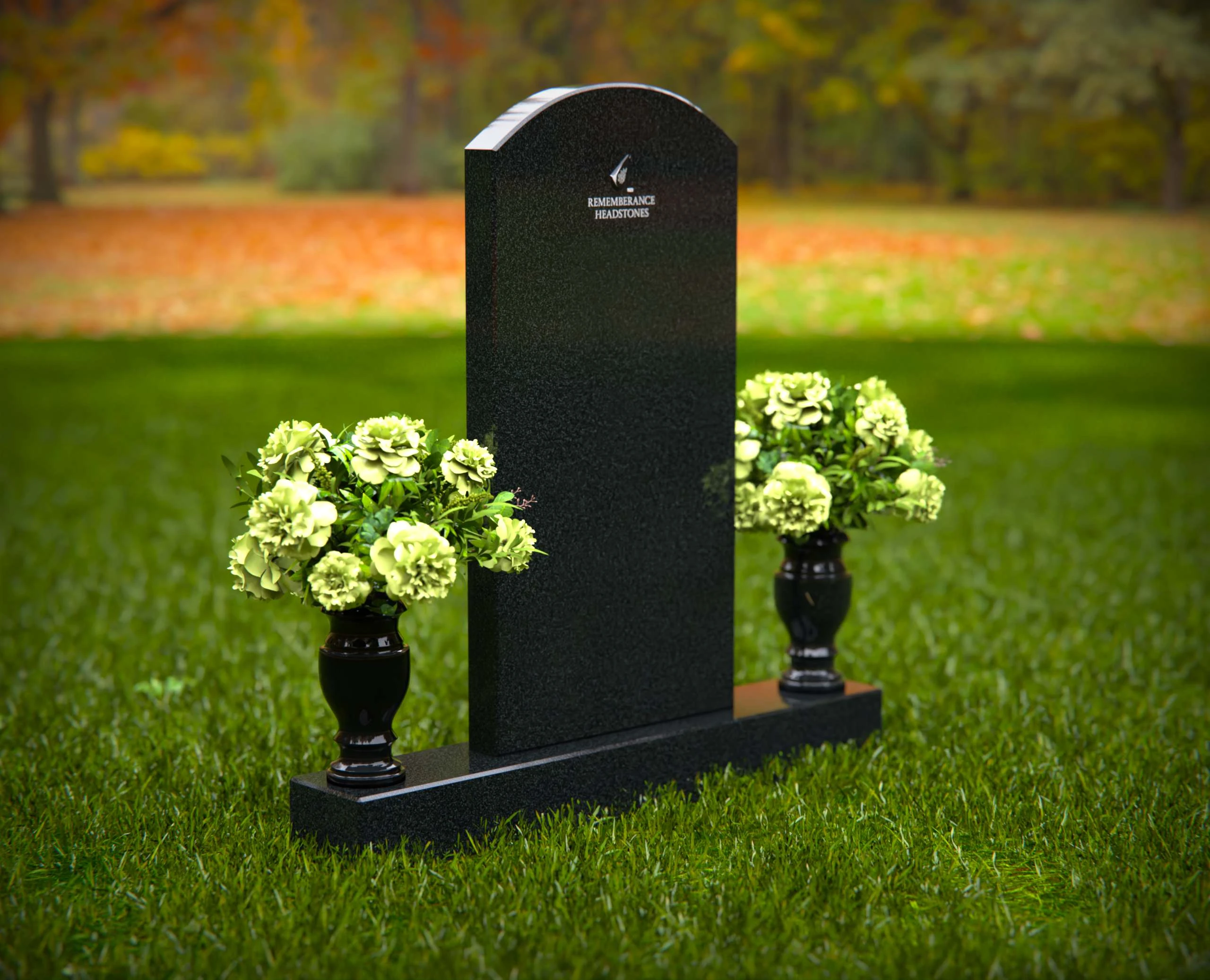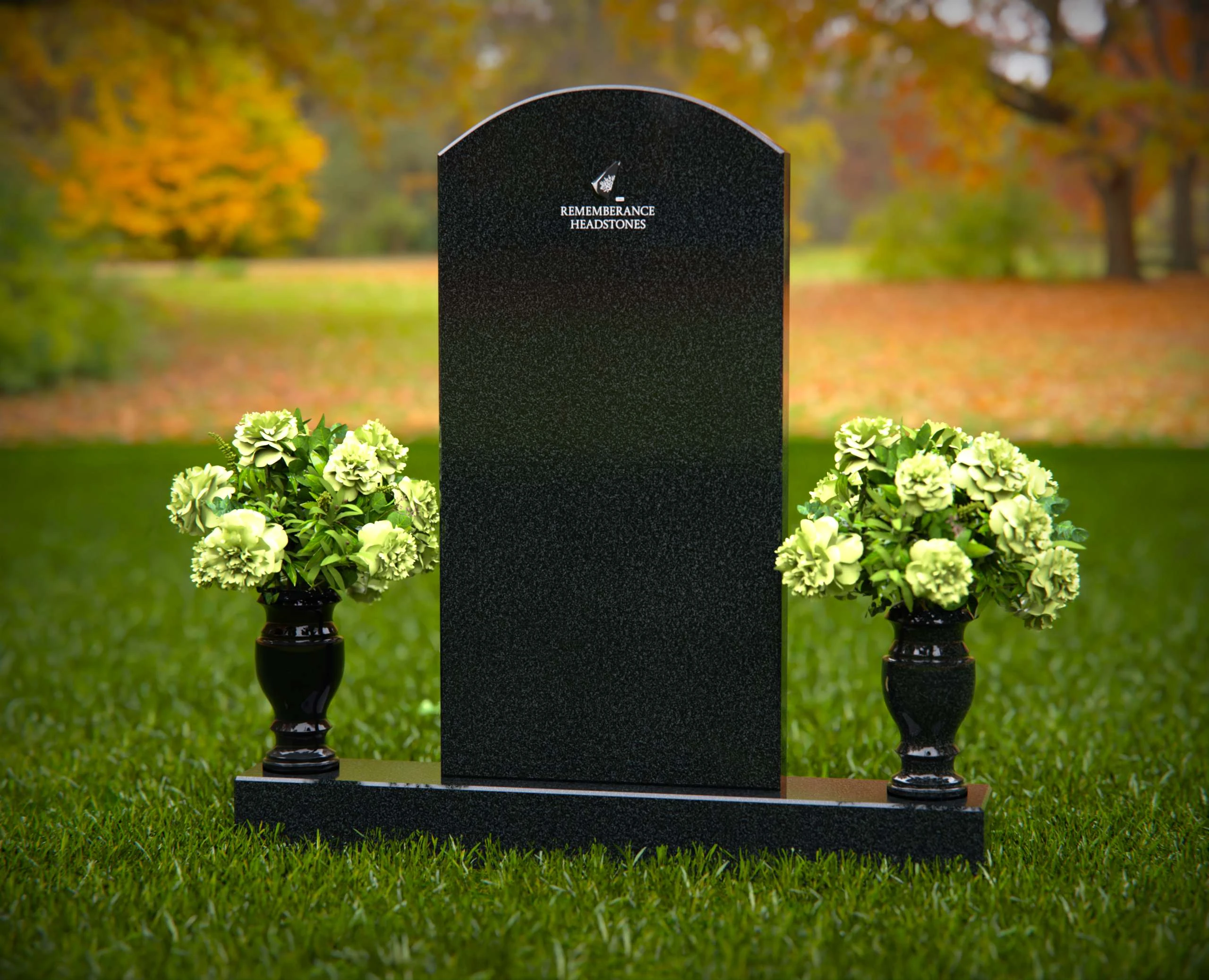 This elegant granite headstone is designed to honor your loved ones with dignity and grace. Crafted from high-quality, durable granite, it features a smooth, polished finish that exudes sophistication and strength. The headstone is complemented by two matching vases on either side, filled with vibrant floral arrangements to enhance its beauty and create a serene atmosphere. Its classic design ensures a timeless tribute that will stand the test of time, providing a lasting memorial for generations. Perfect for any cemetery or memorial garden, this headstone offers a balance of beauty, durability, and heartfelt remembrance. Customize with your personal inscriptions to make it truly unique.