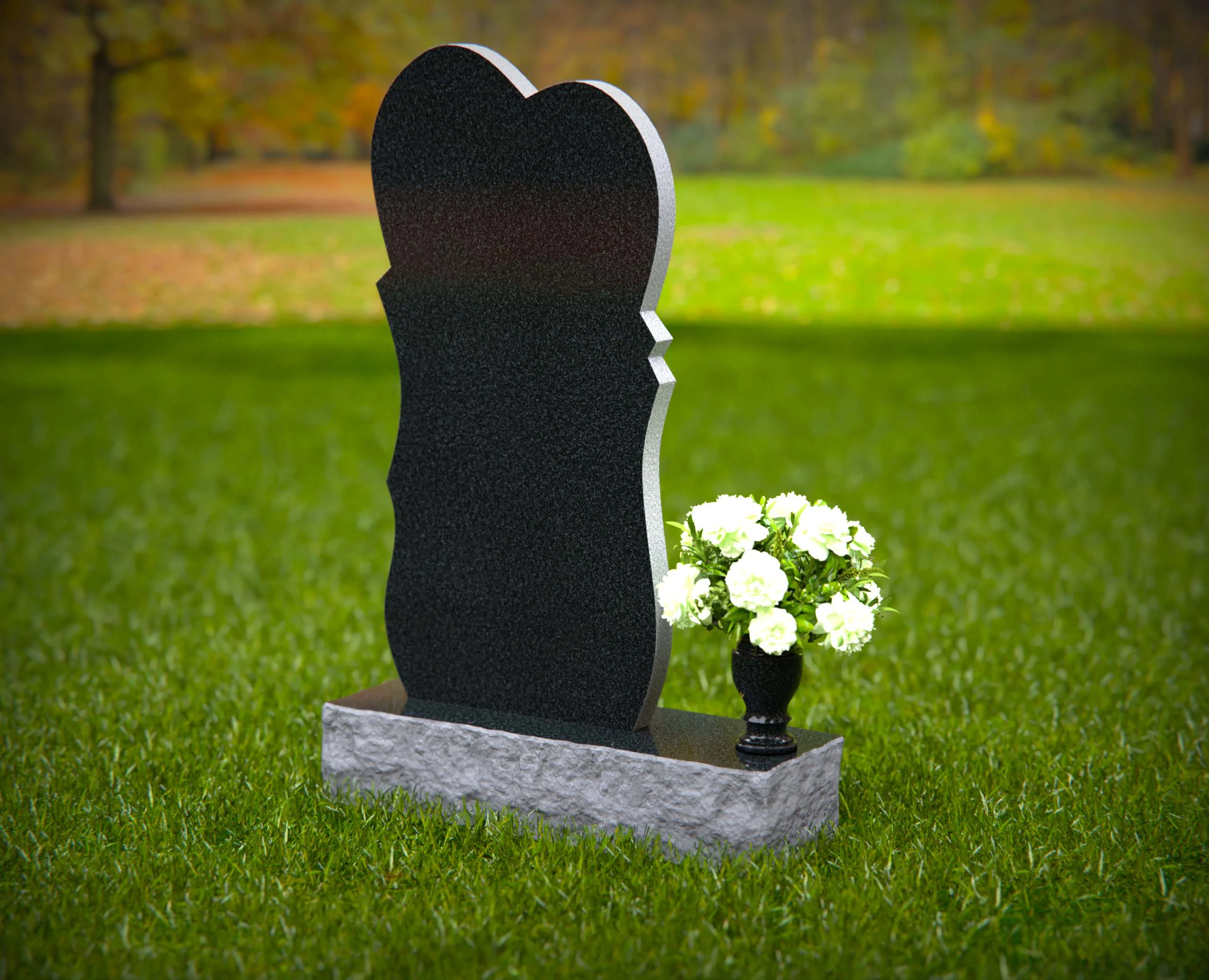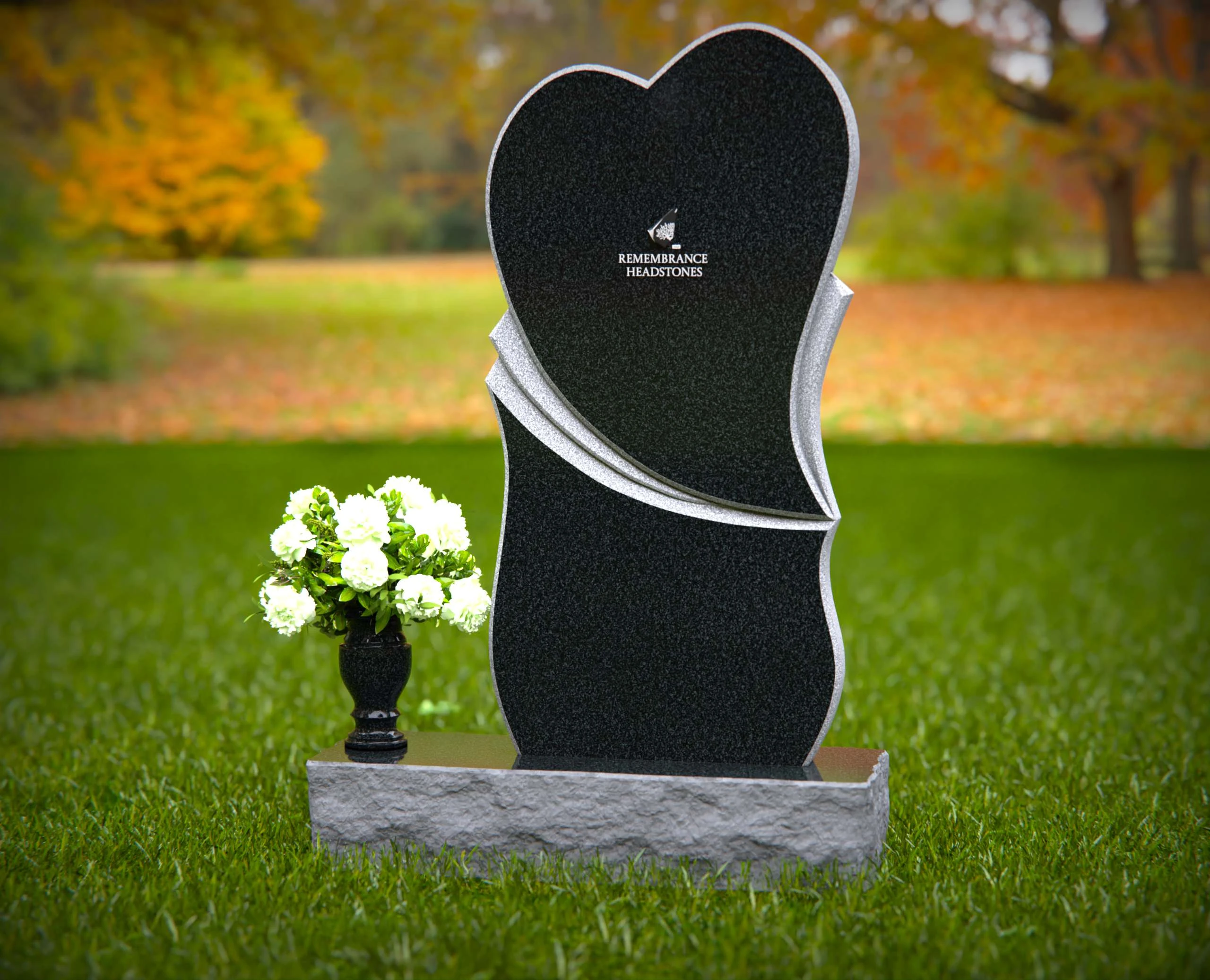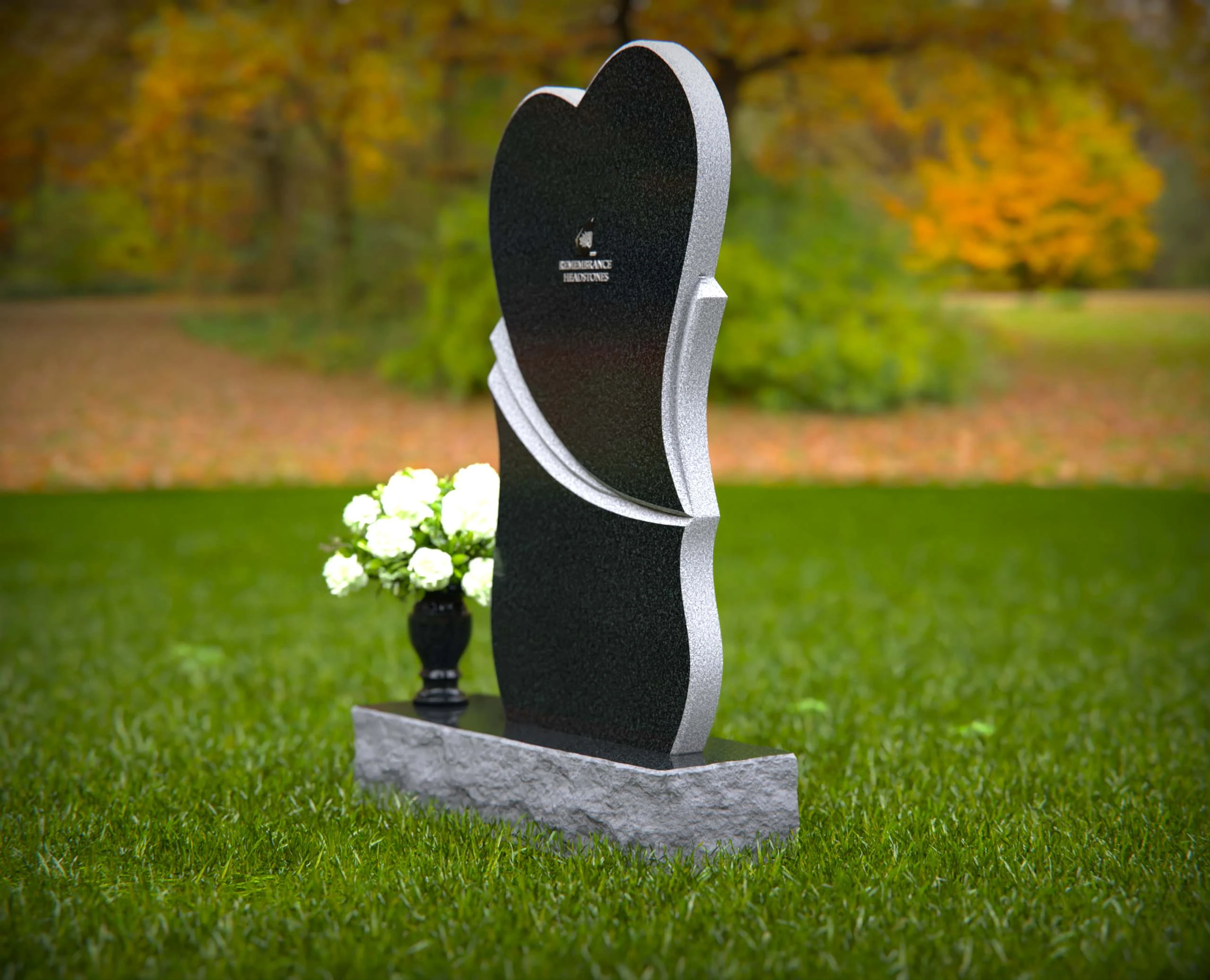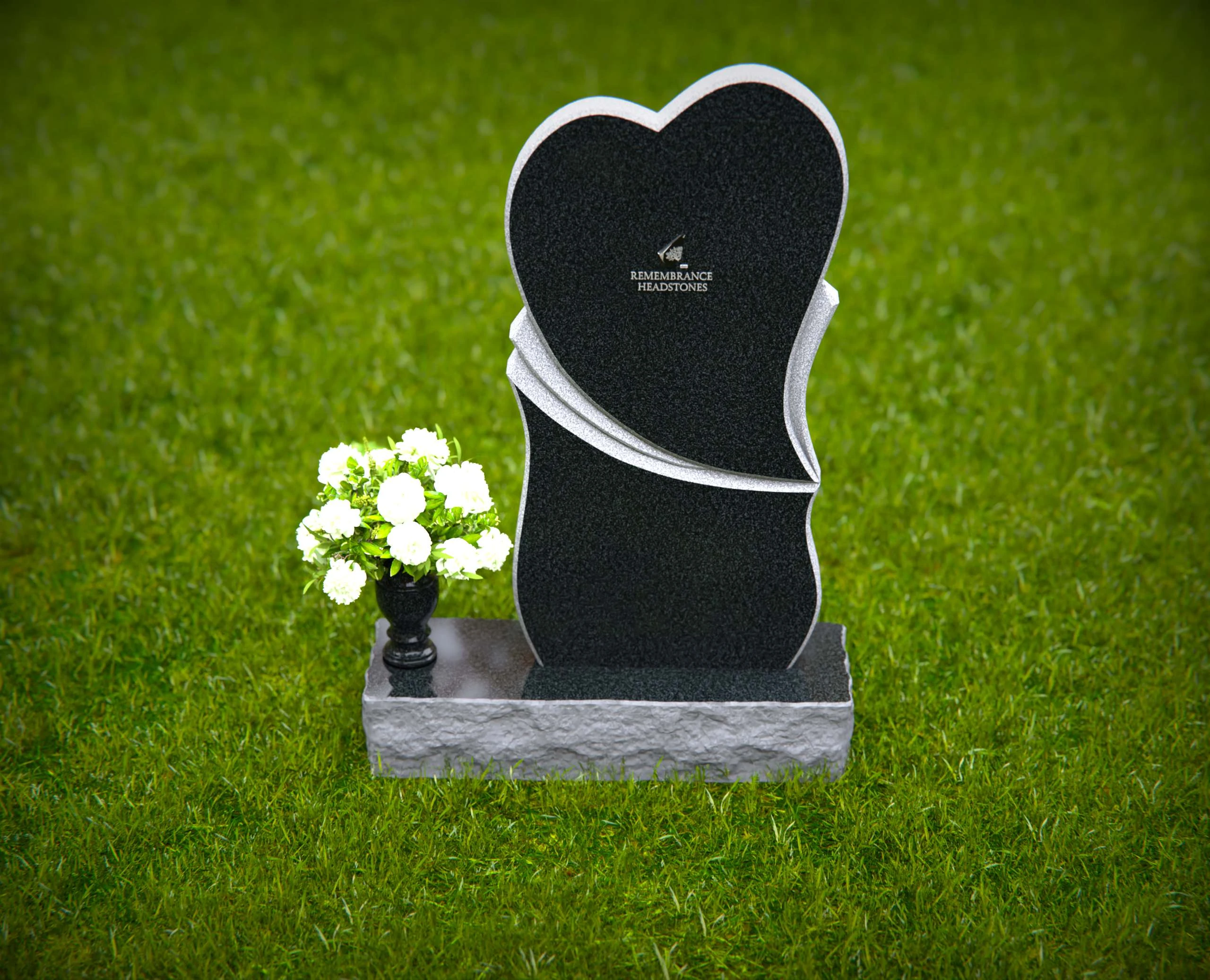 This unique heart-shaped granite headstone features a gracefully layered accent, symbolizing love and remembrance. Crafted from premium granite, this monument is designed to withstand the test of time while offering a beautiful and meaningful tribute to a loved one. Its contemporary shape and polished finish add an artistic and heartfelt touch to any memorial setting.