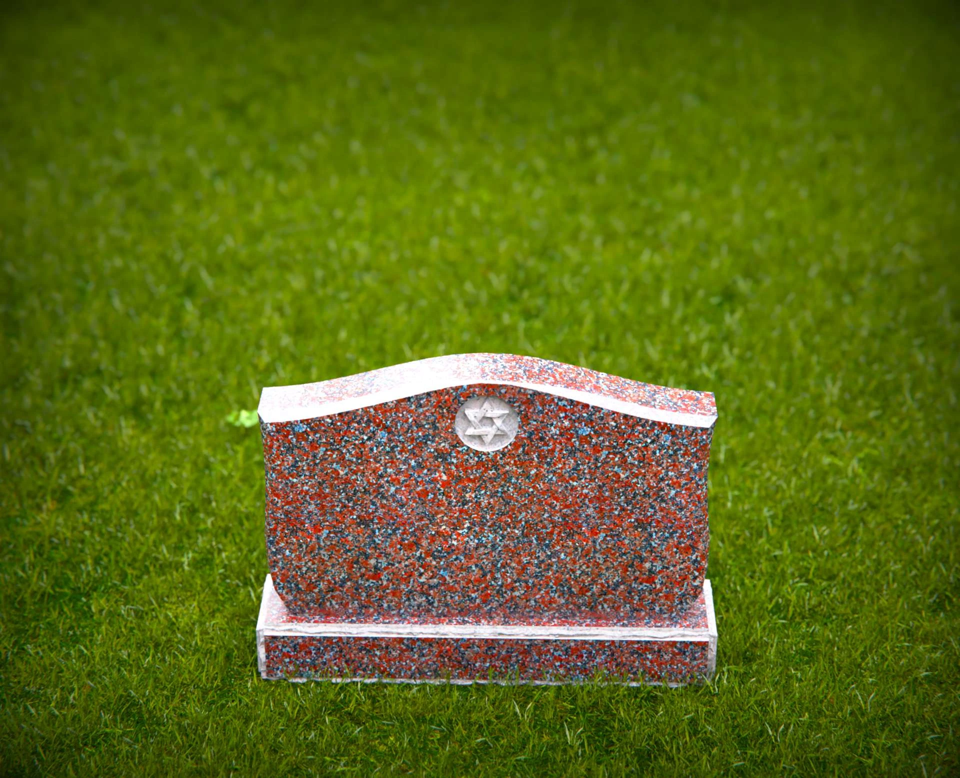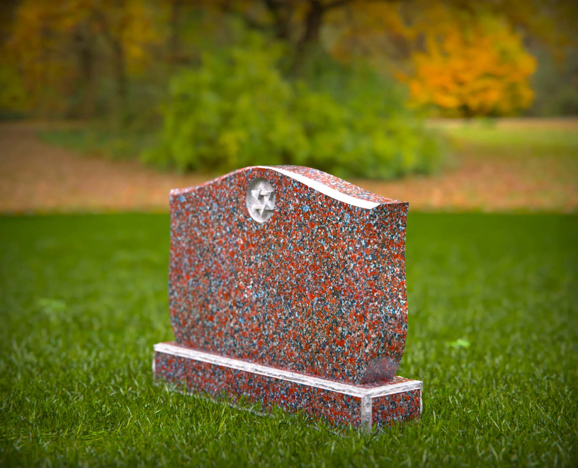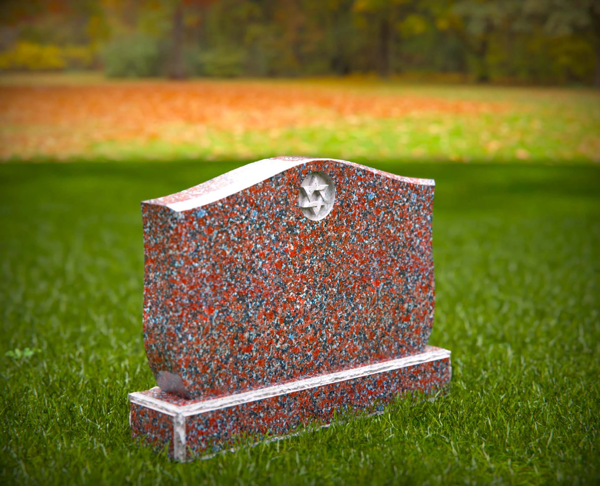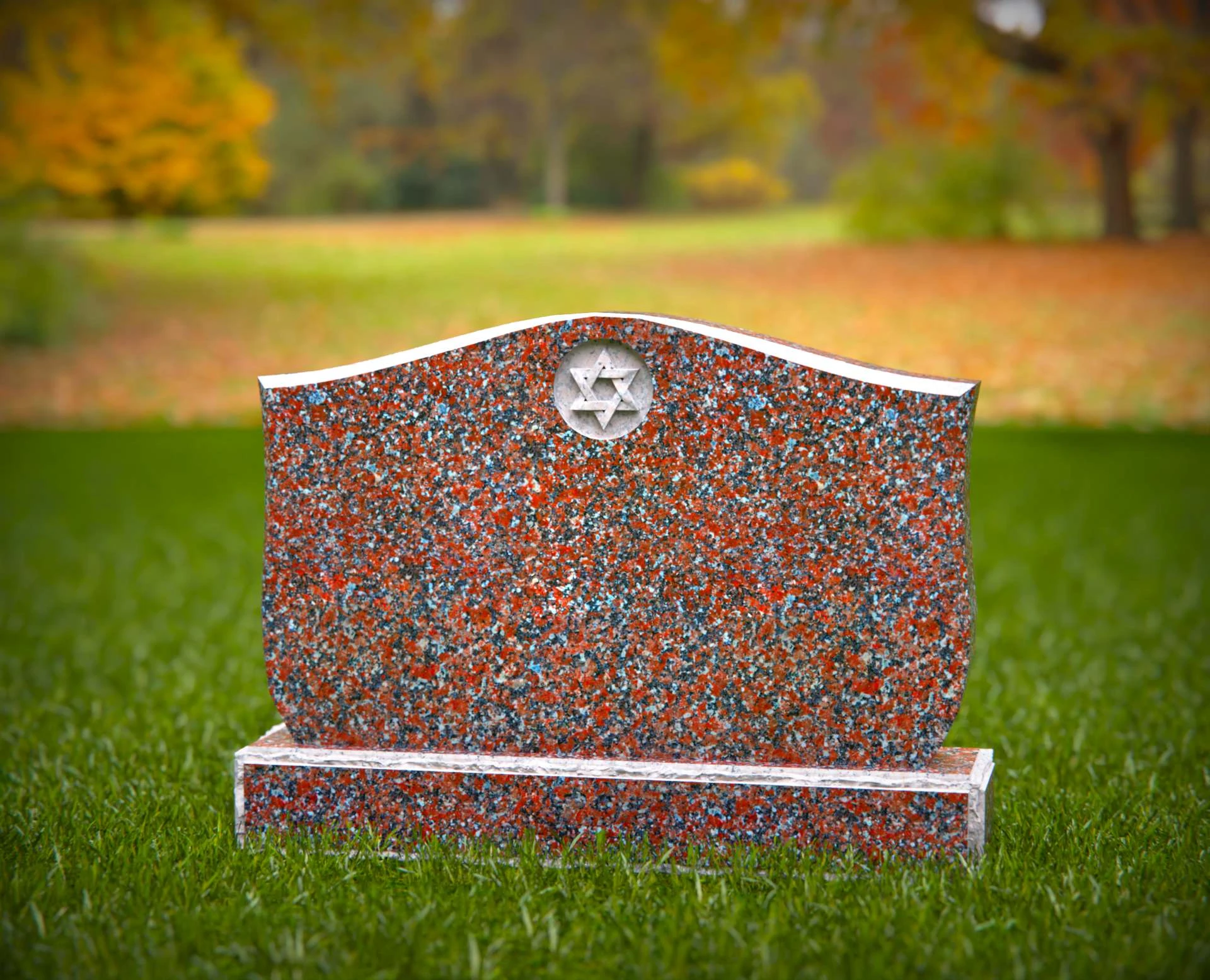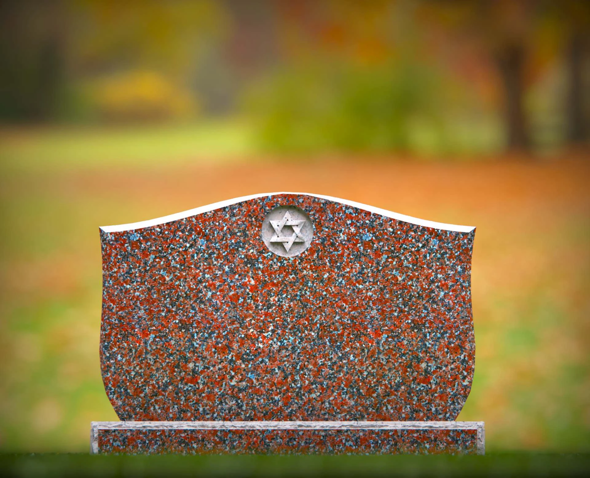This elegantly curved granite headstone features a prominently engraved Star of David within a circular frame, symbolizing faith and heritage. The smooth, polished surface provides ample space for personalized inscriptions, while the sturdy granite ensures lasting durability. A refined and meaningful tribute to honor a loved one's memory.