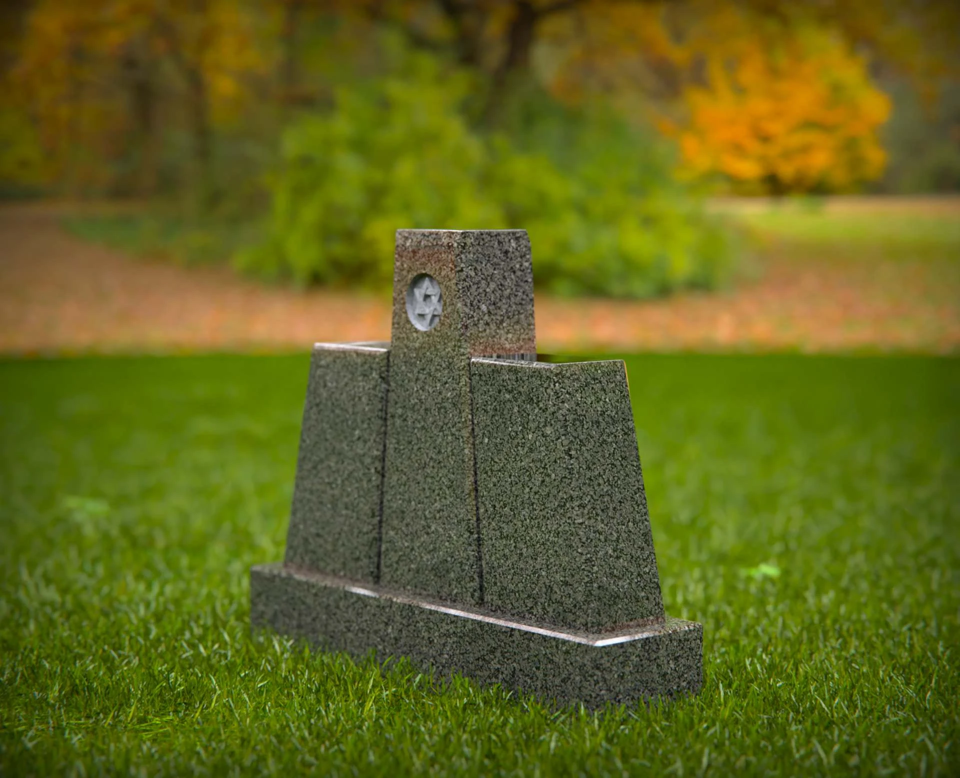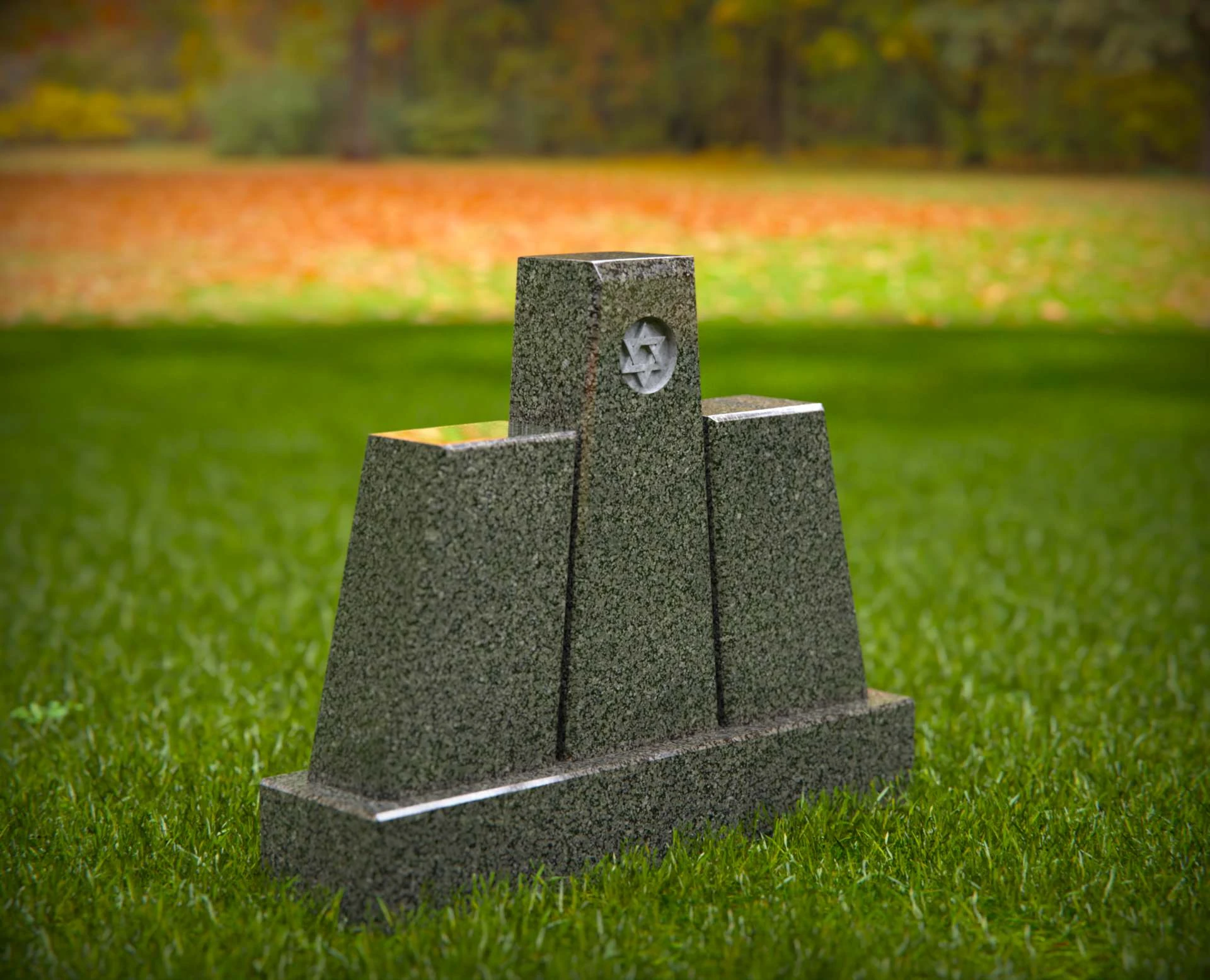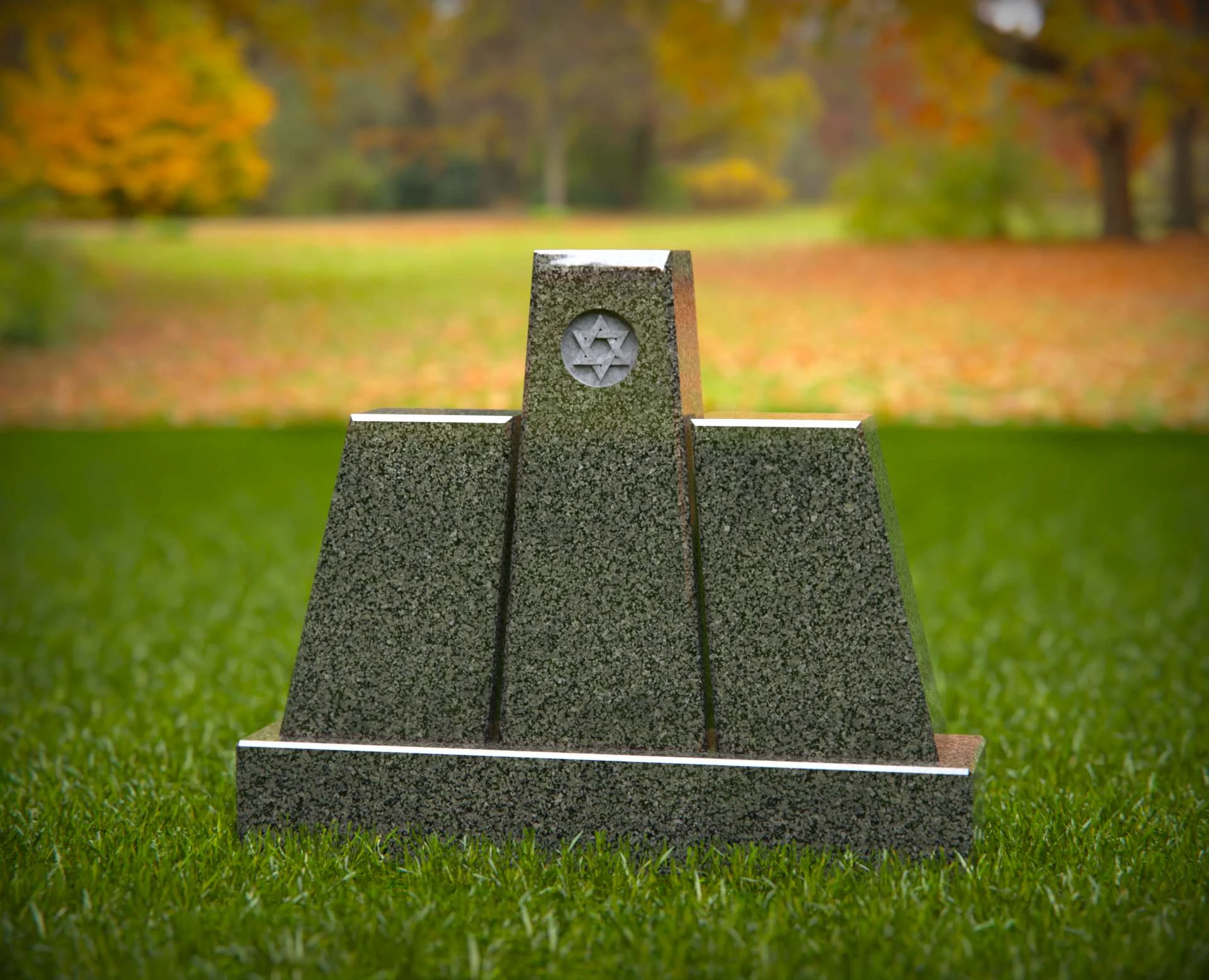 This distinctive three-panel granite monument represents strength, unity, and remembrance. The central peak, adorned with a finely carved Star of David, symbolizes faith and heritage. The unique geometric structure conveys balance and stability, making it a meaningful and lasting tribute to a cherished life.