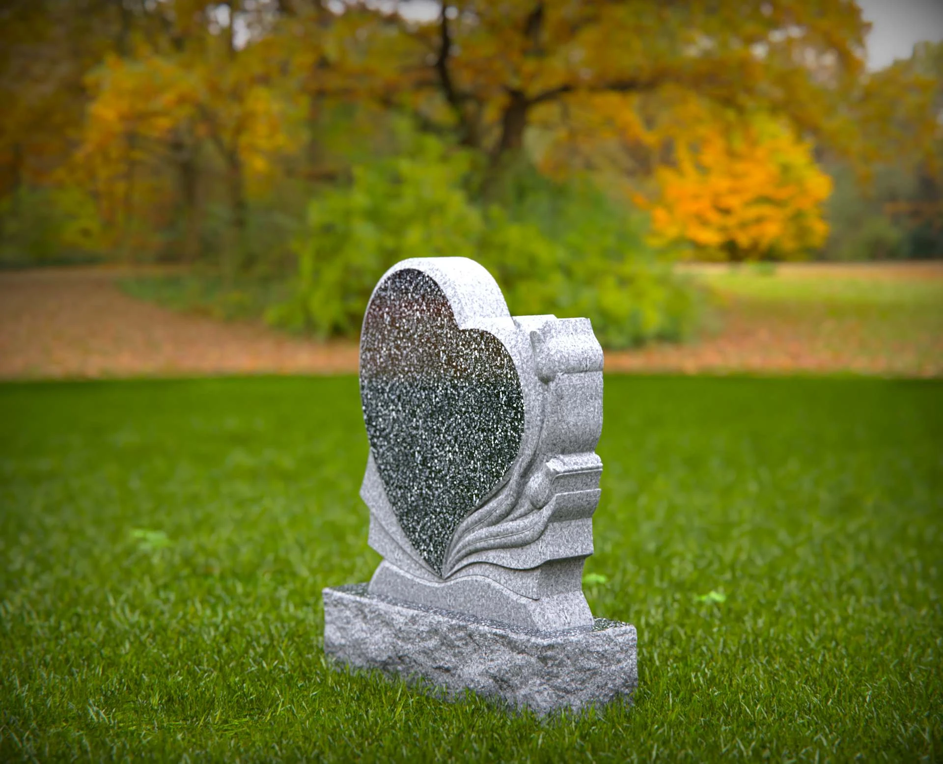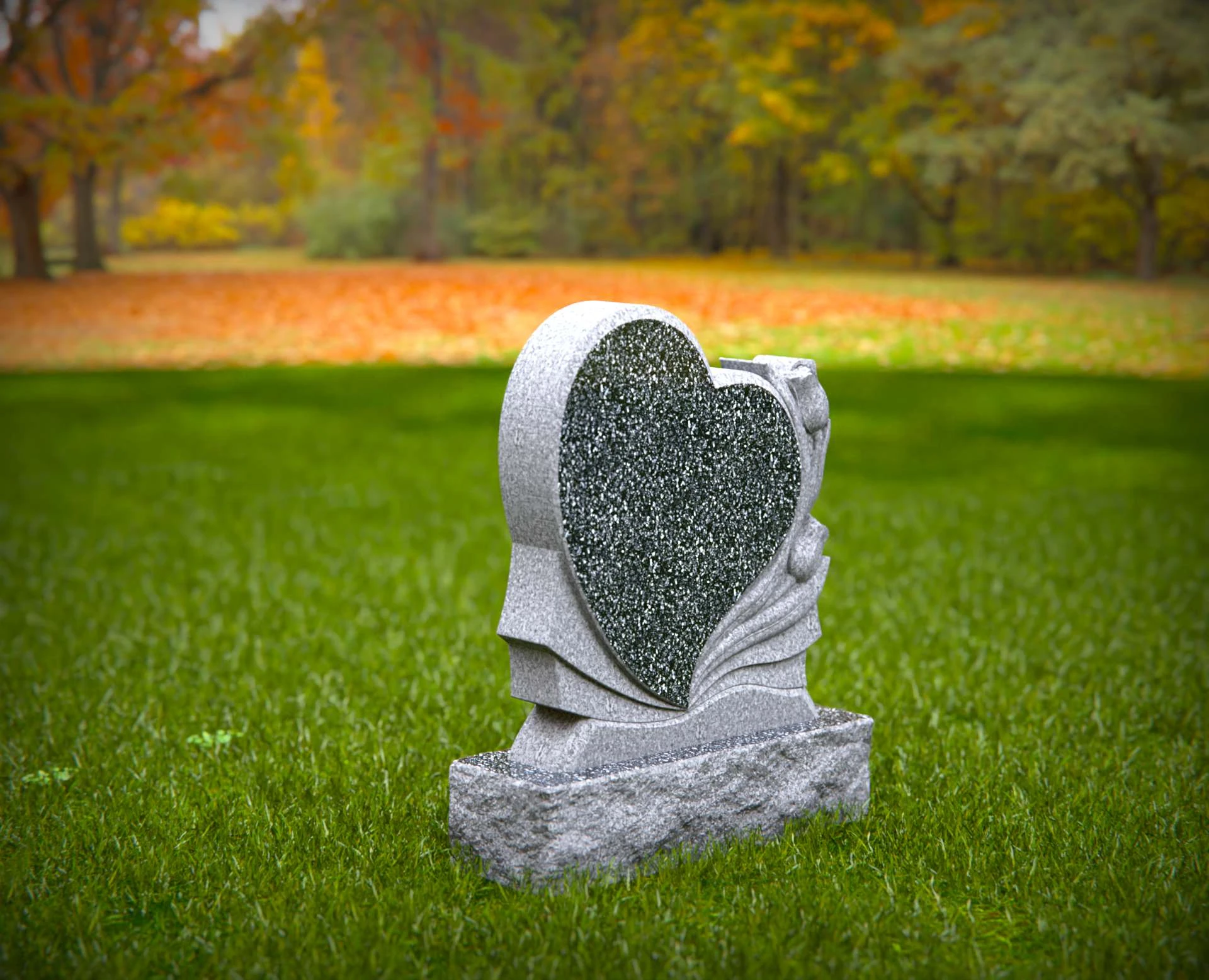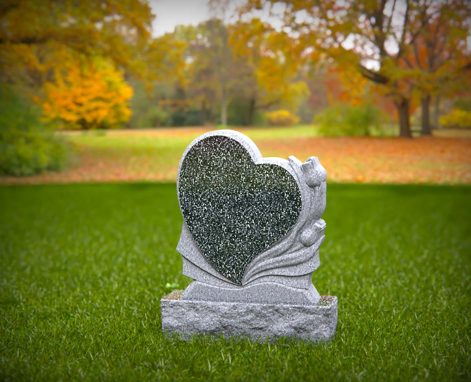 This beautifully crafted heart-shaped headstone is made from high-quality granite, offering a timeless tribute to a loved one. The polished surface provides an elegant space for engraving names, dates, or a heartfelt message. Adorned with delicate sculpted roses and flowing lines at the base, this design symbolizes love, remembrance, and eternal devotion. The combination of smooth and textured finishes adds depth and grace, making it a heartfelt memorial piece.