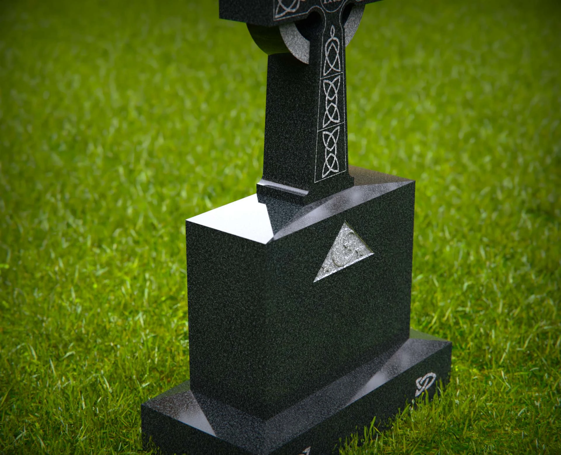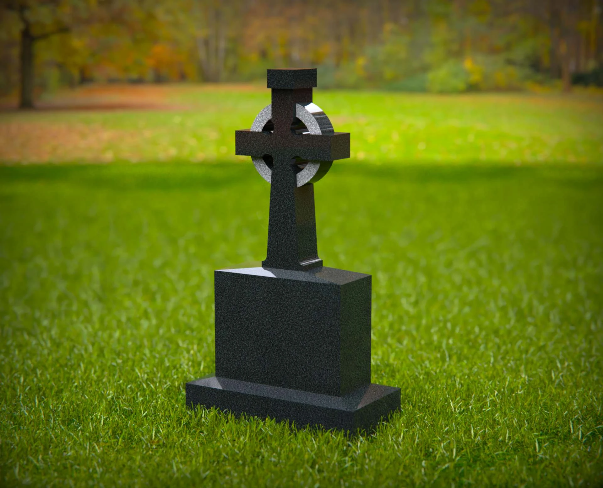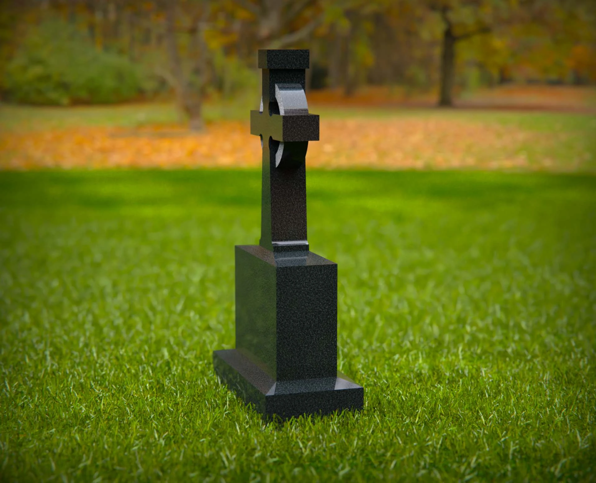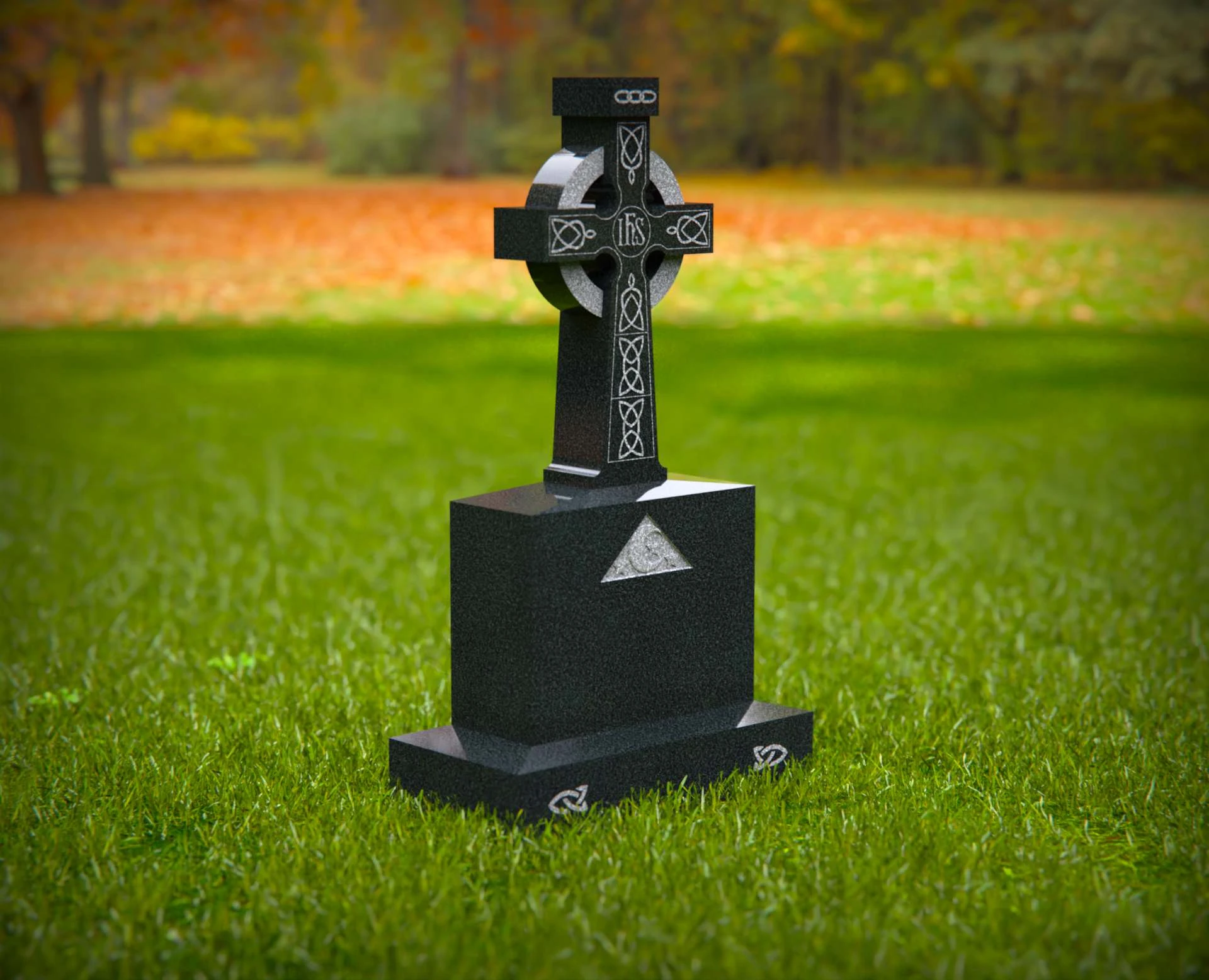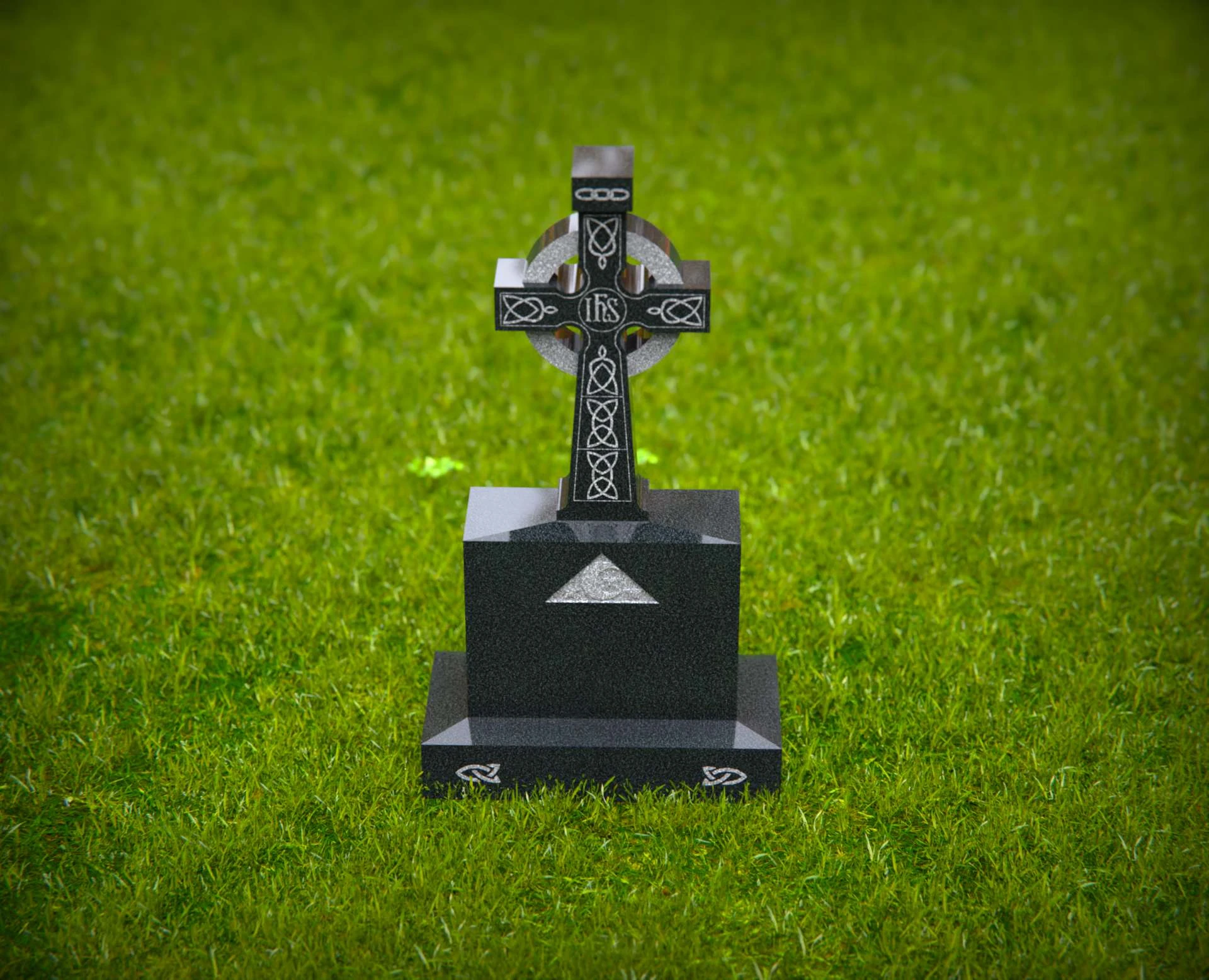 1573 - Celtic Cross Black Granite Headstone with Intricate Engravings