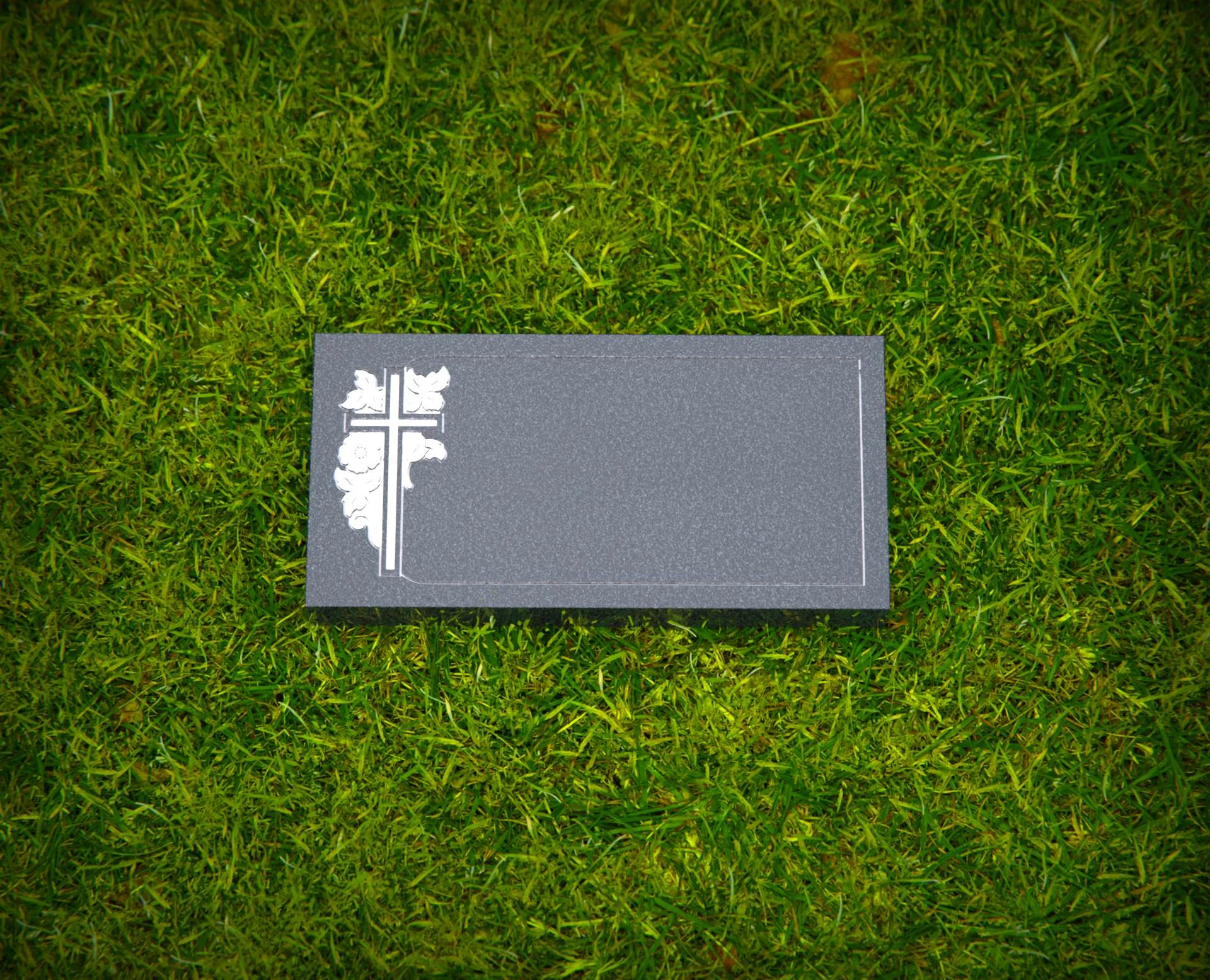1636 - Granite Flat Grave Marker with Cross and Floral Engraving