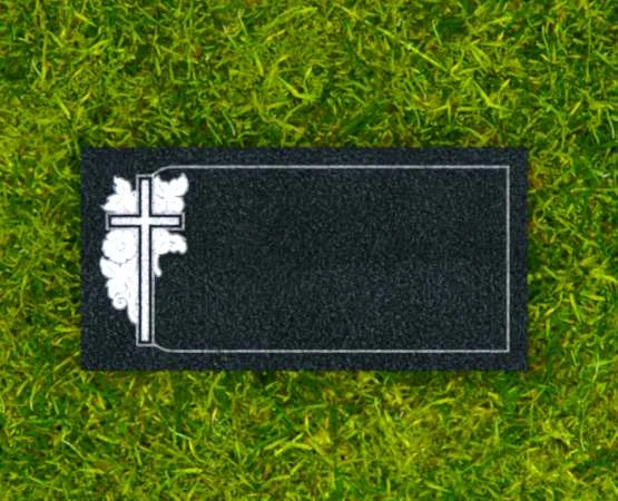 Create a lasting tribute with this elegant black granite flat grave marker. Featuring a beautifully engraved cross with floral detailing, this durable and weather-resistant headstone is designed for remembrance and peace. Ideal for cemetery use, it offers a polished surface for custom inscriptions to honor your loved one. Order now for a timeless memorial.