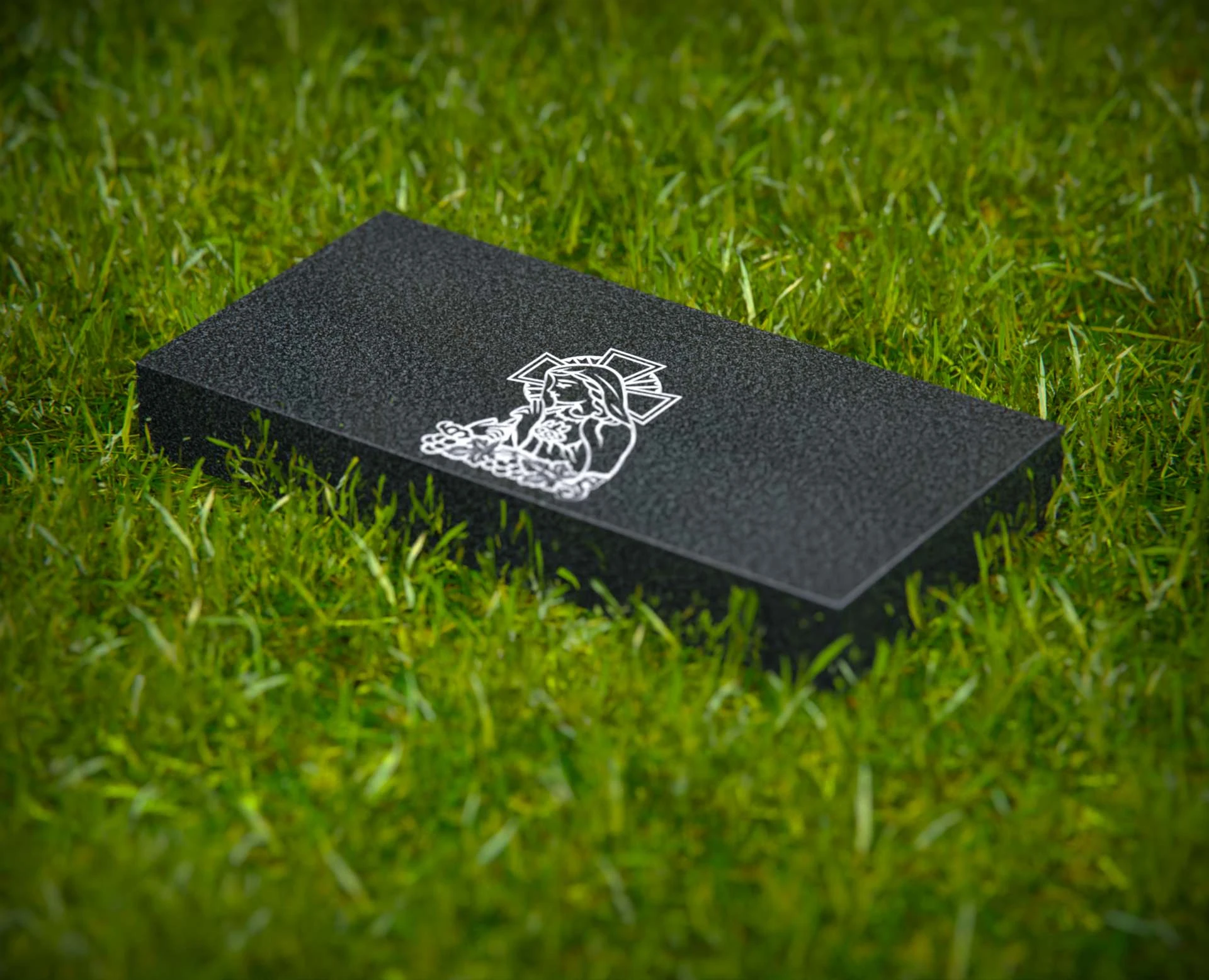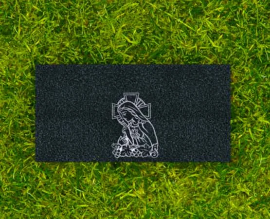 This black granite flat grave marker features an elegant engraving of Jesus Christ with a cross, symbolizing eternal peace and faith. Crafted from premium granite, it offers durability and a timeless memorial for your loved one. Custom engravings available for personalization. Order today to honor their legacy with grace and devotion.