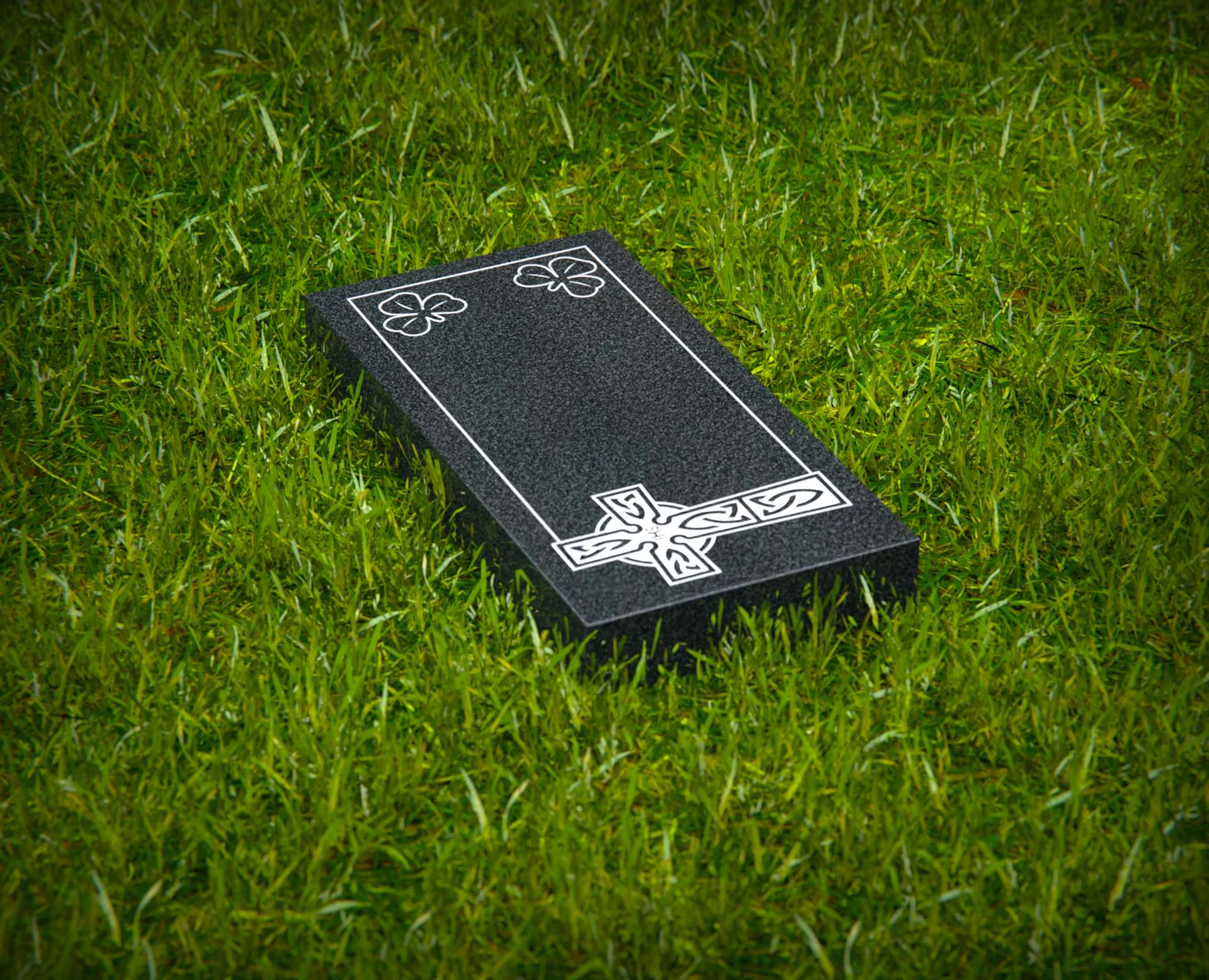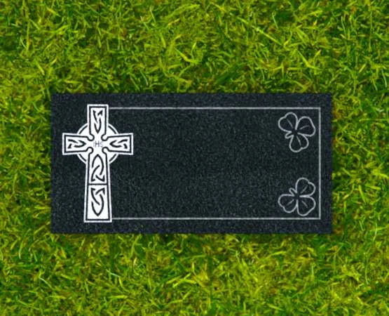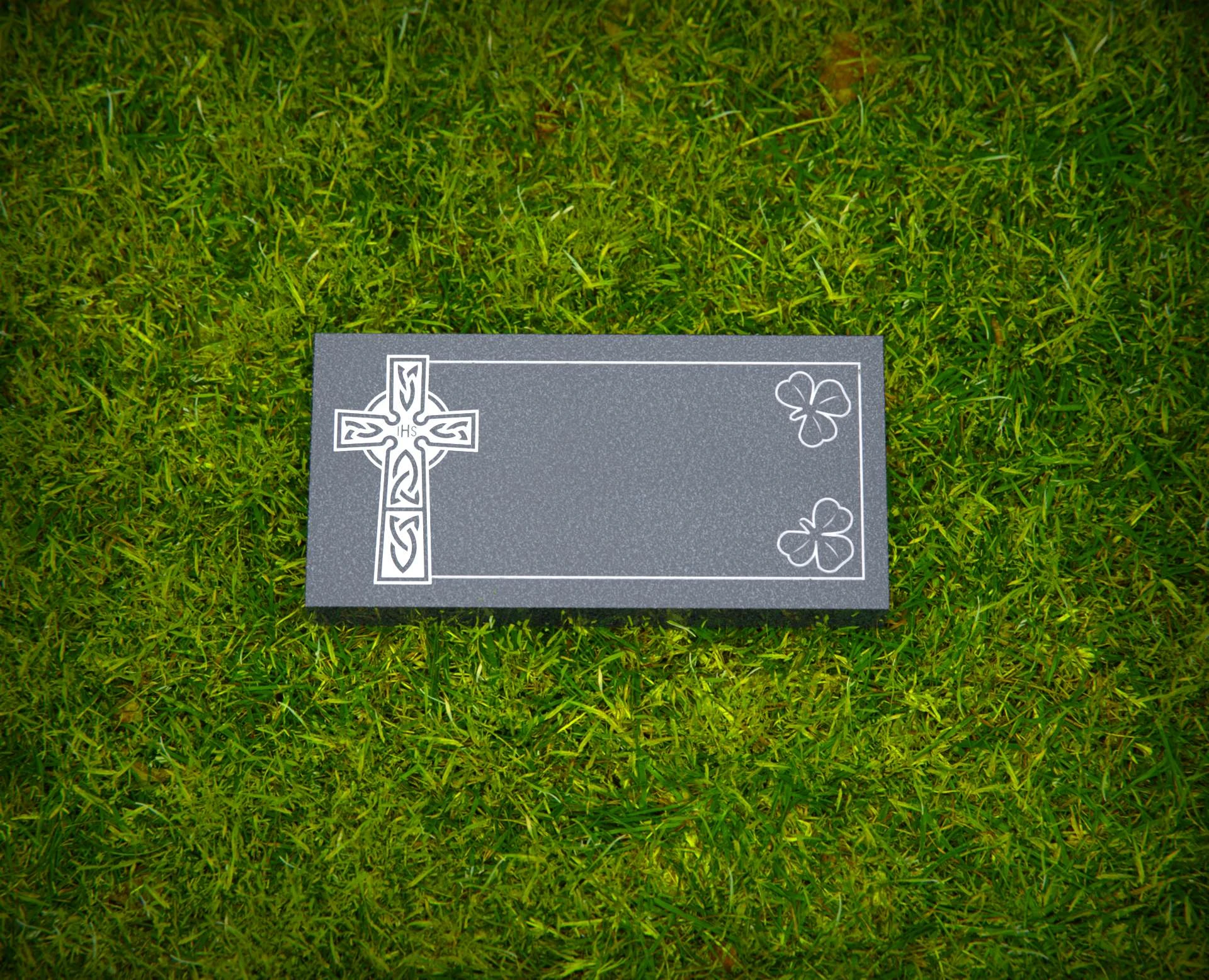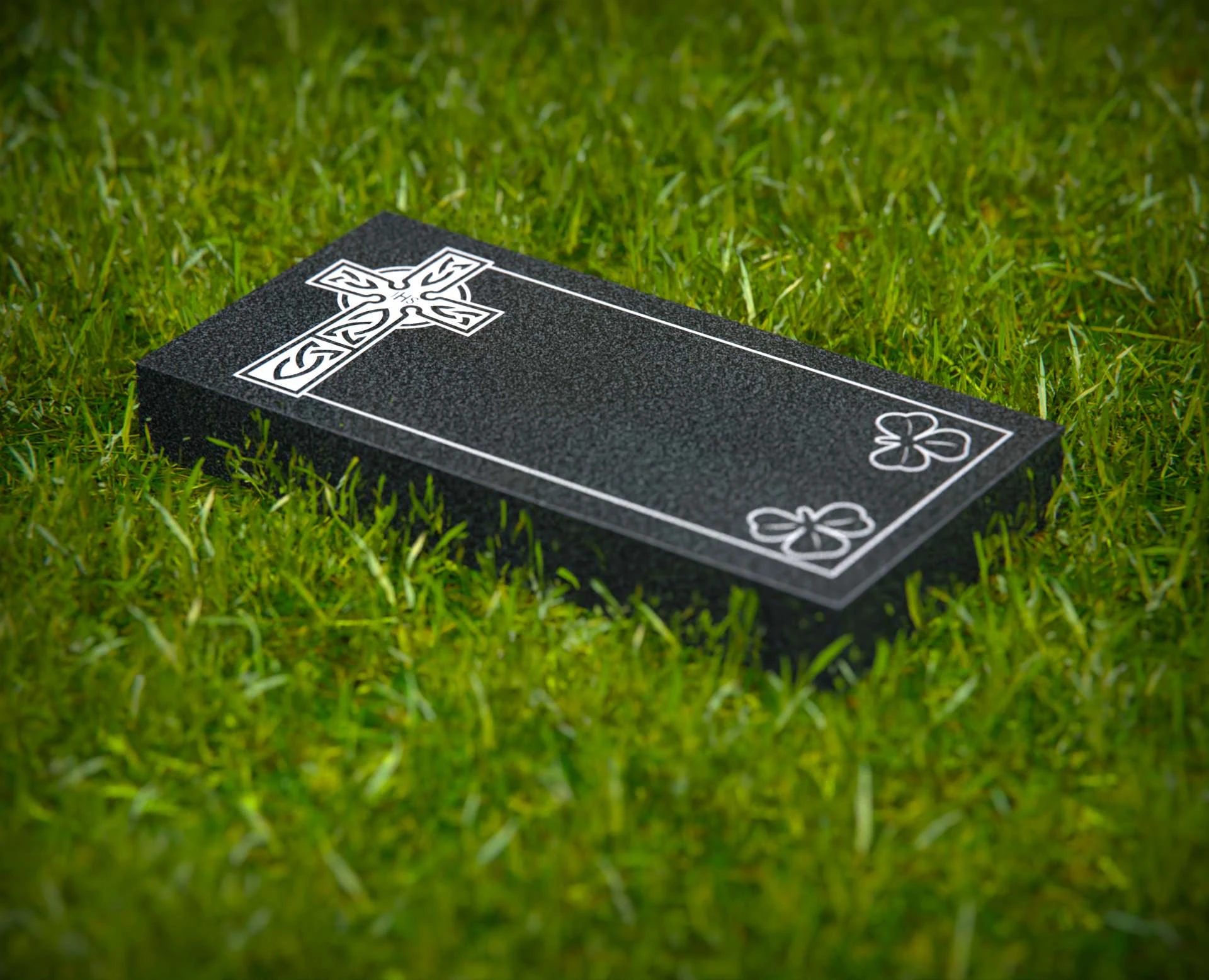 1642 - Celtic Cross Flat Granite Grave Marker with Shamrock Engraving