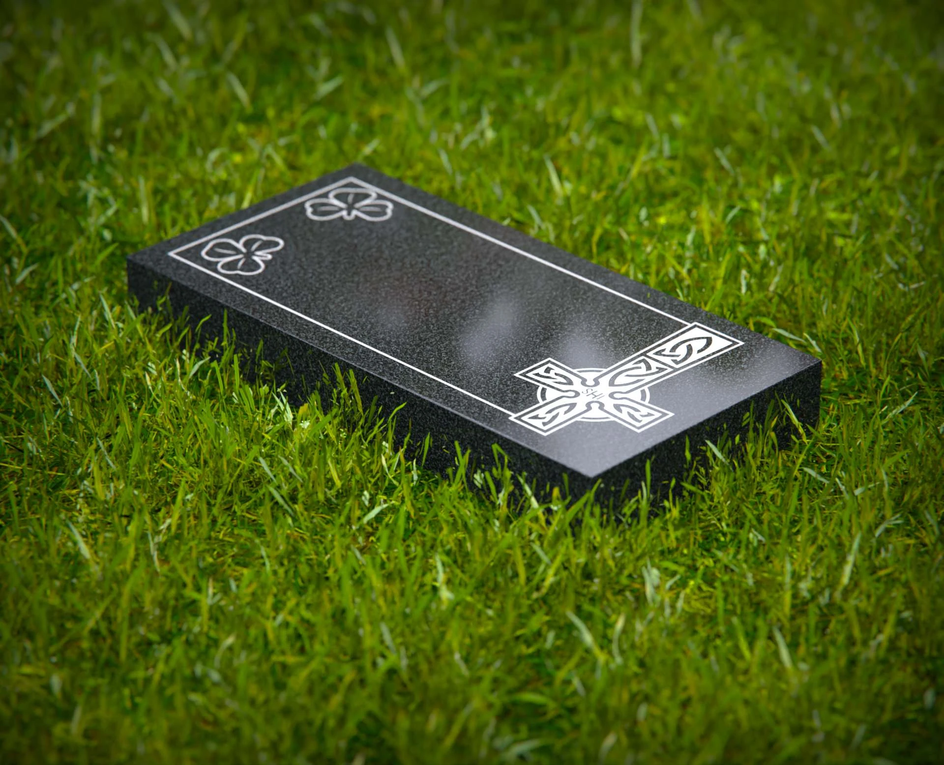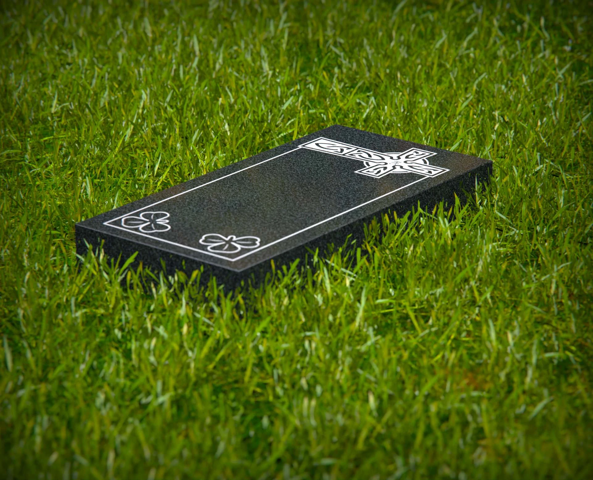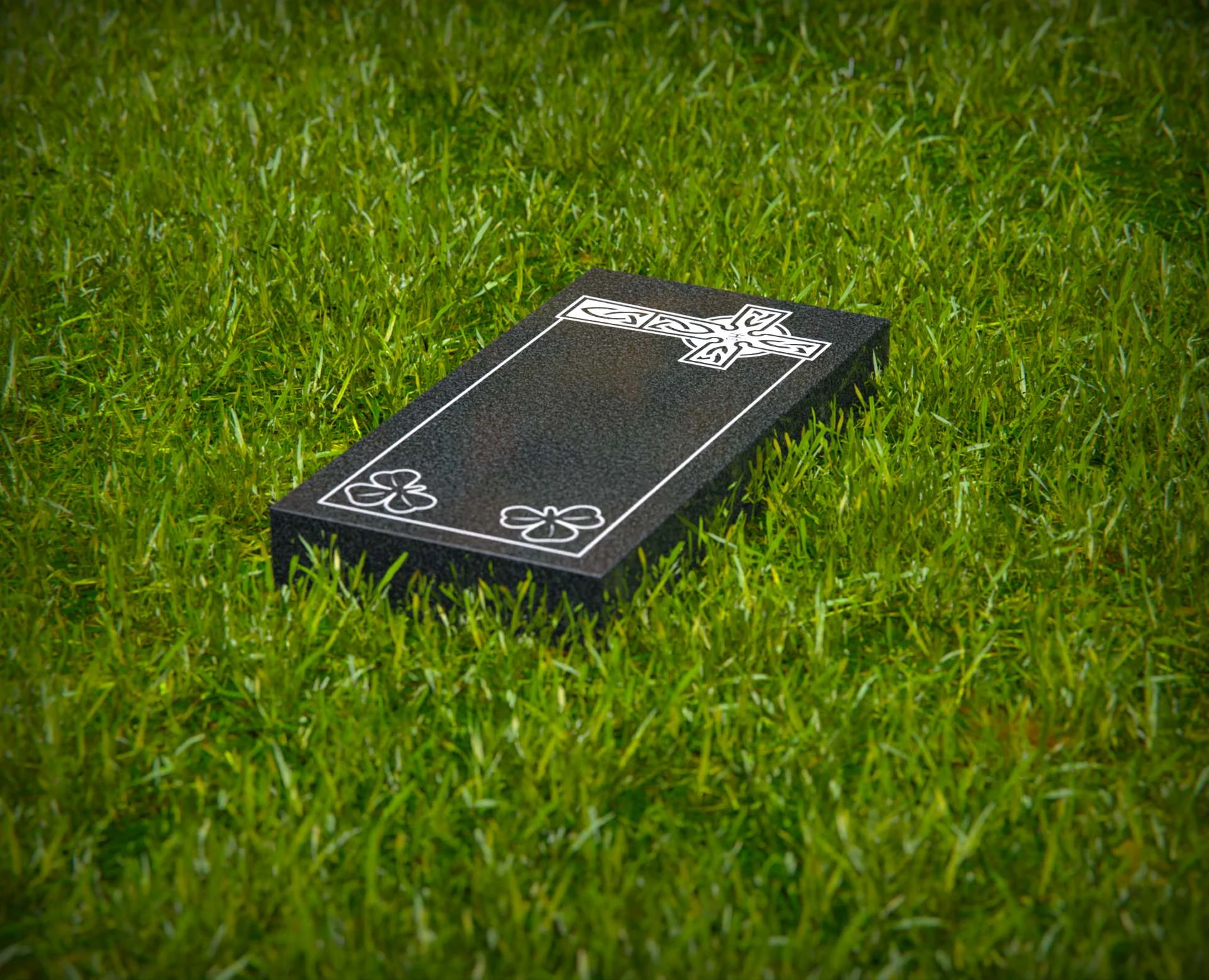1642 - Celtic Cross Flat Granite Grave Marker with Shamrock Engraving